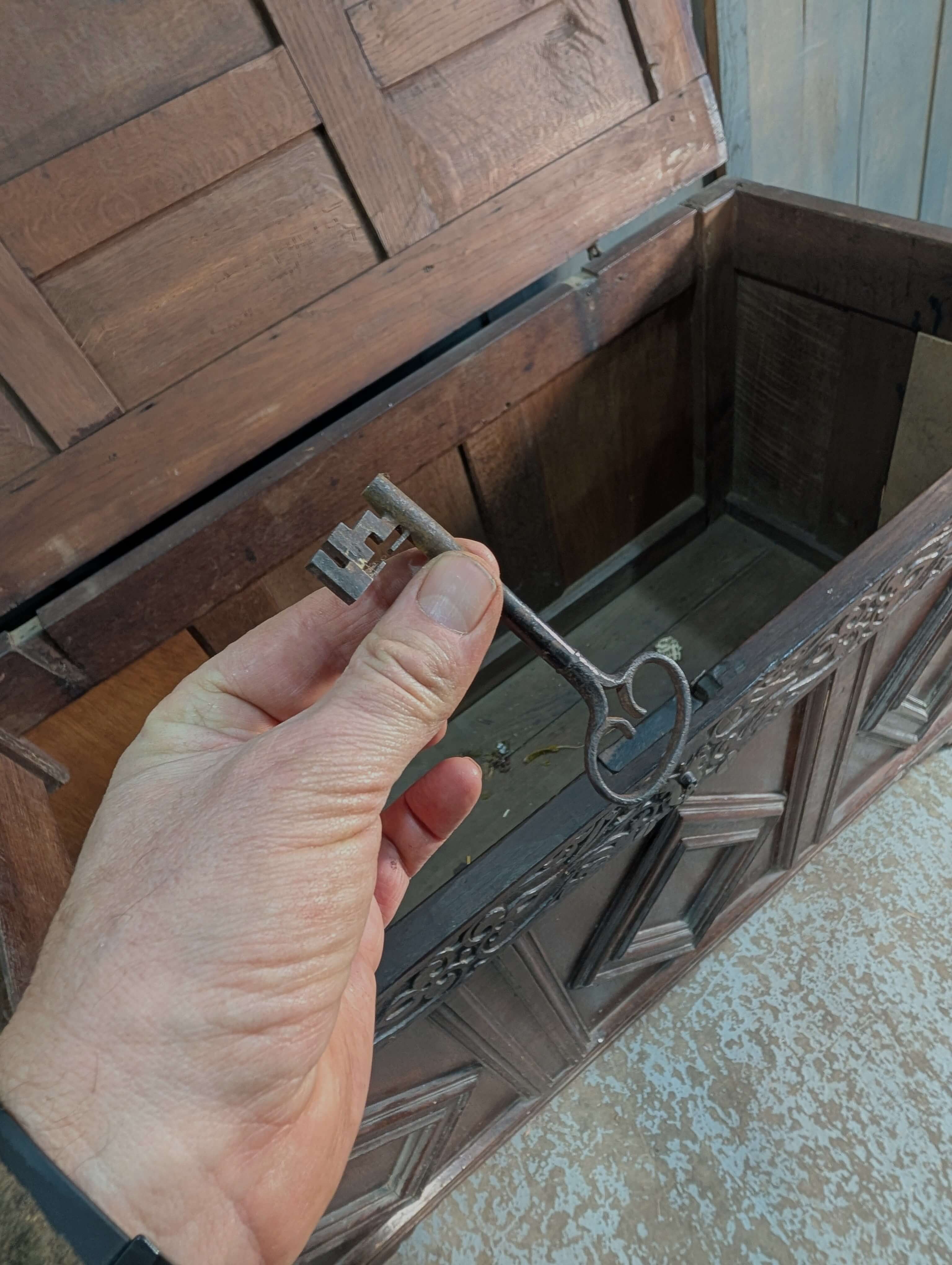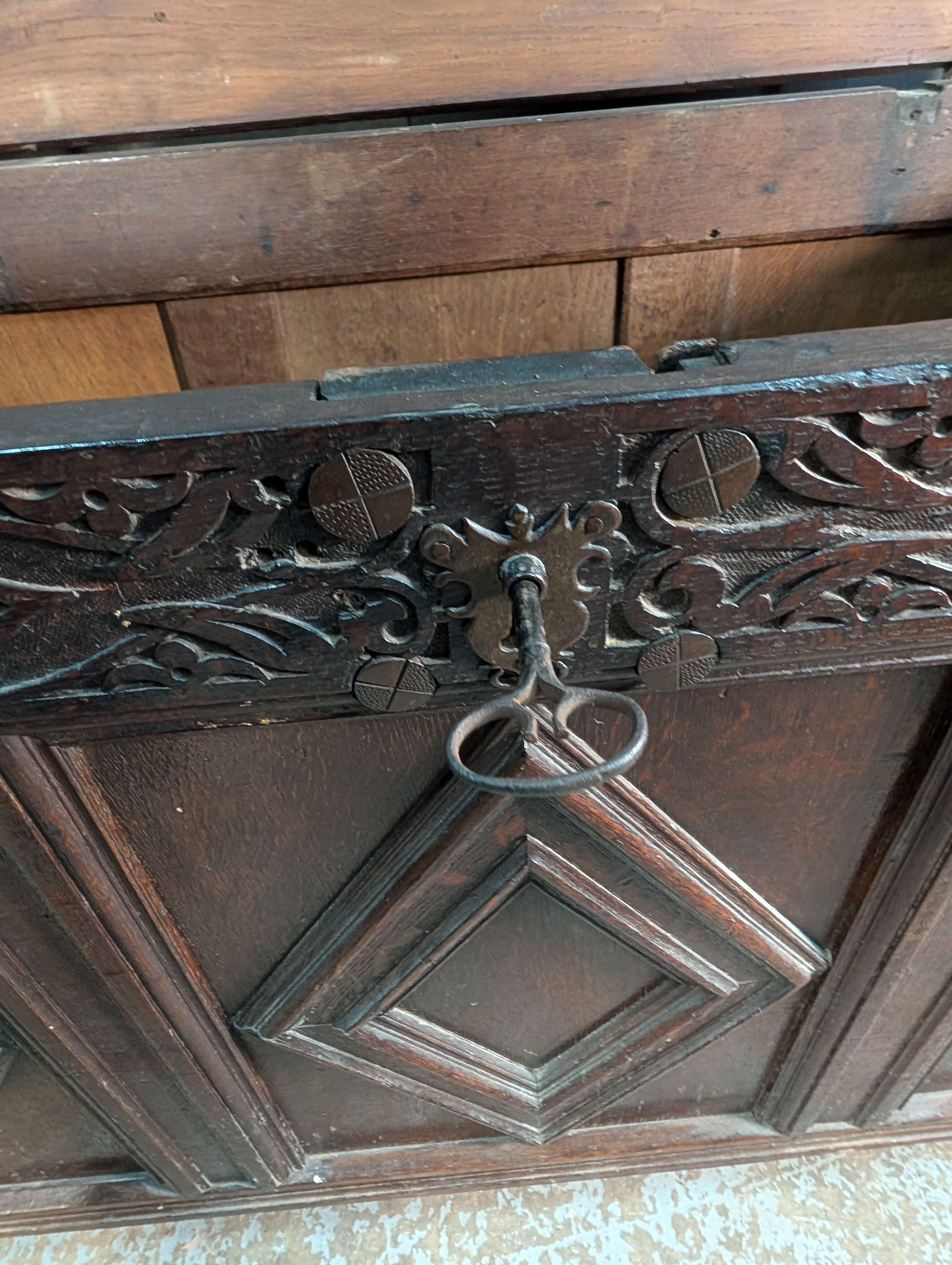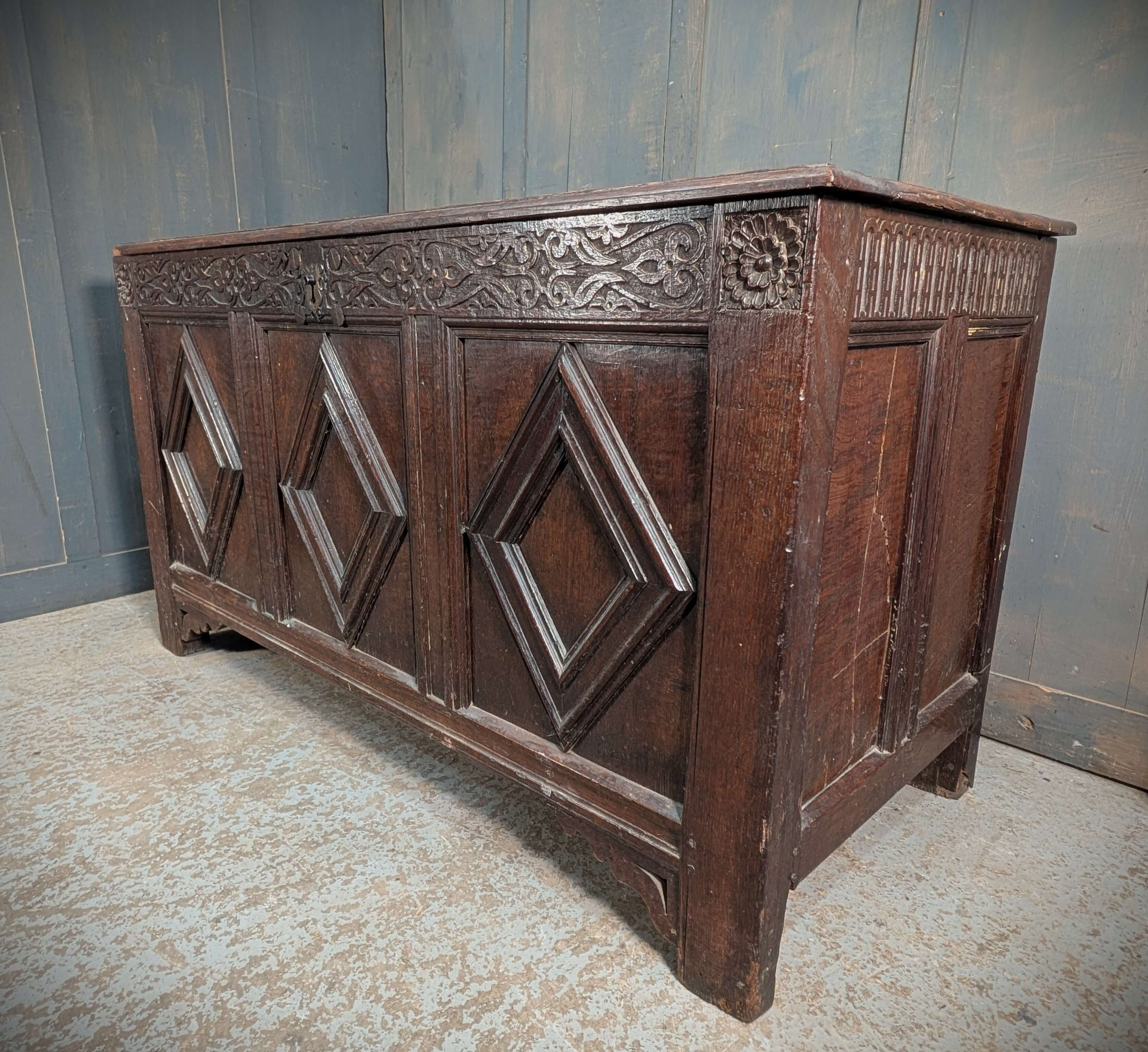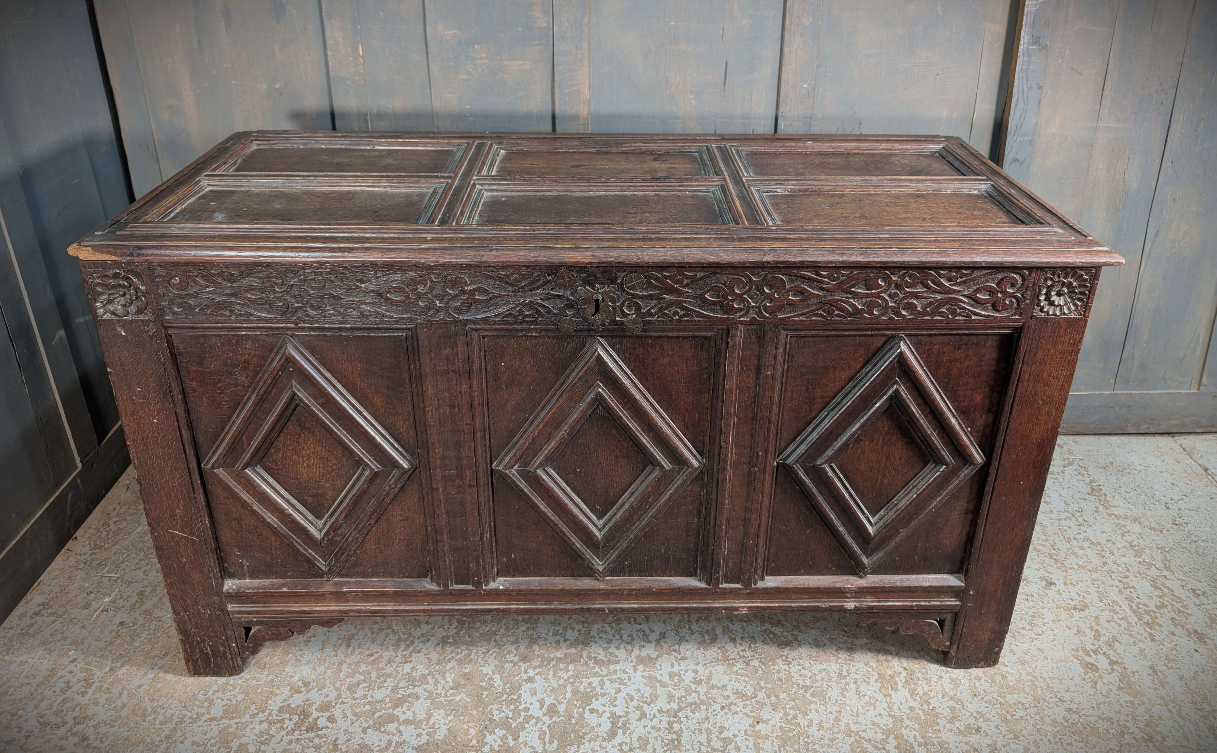 Our product shown on this page 17th Century and Later Panelled Antique Oak Coffer with Diamond Panels is currently available for hire.