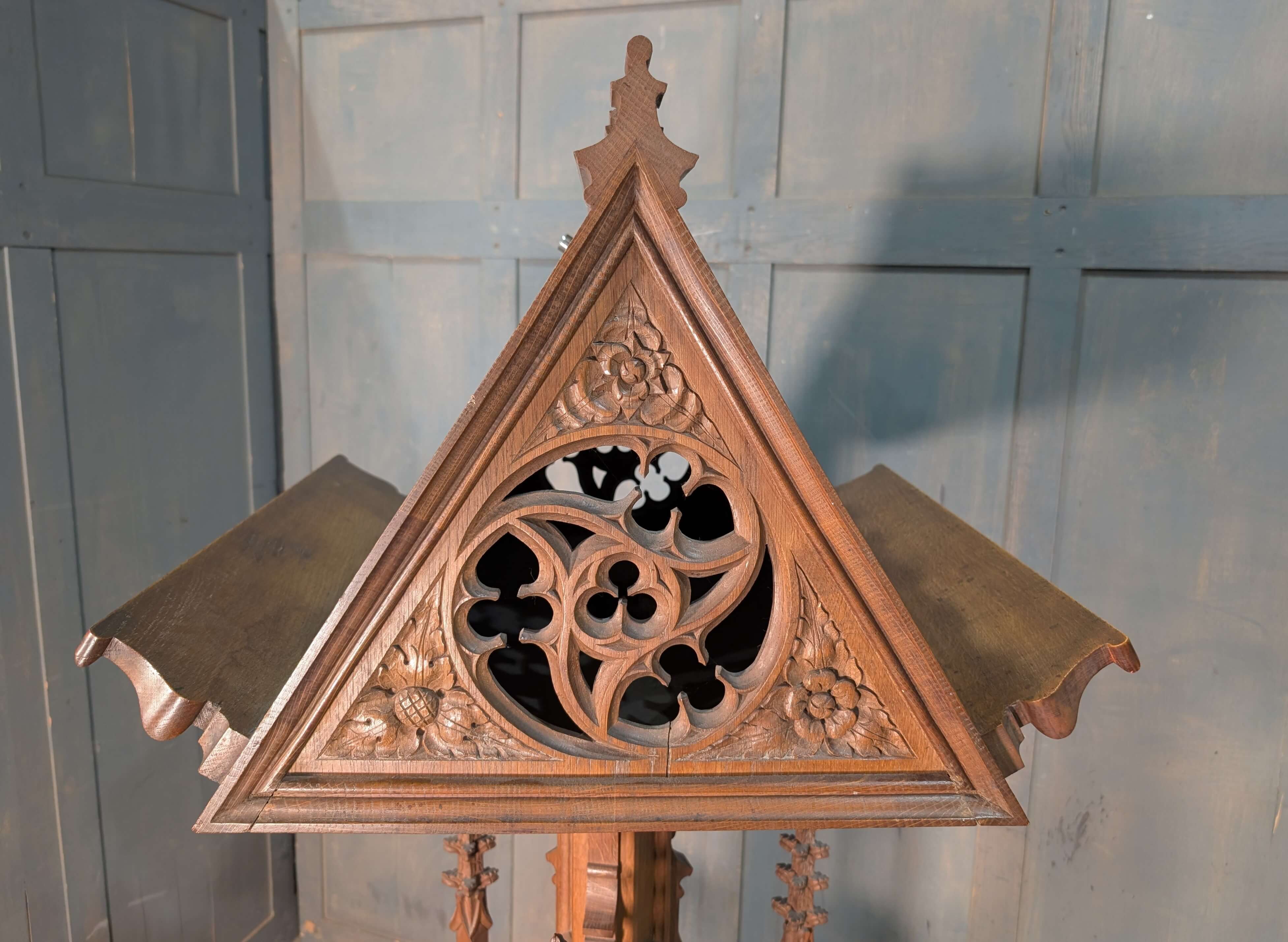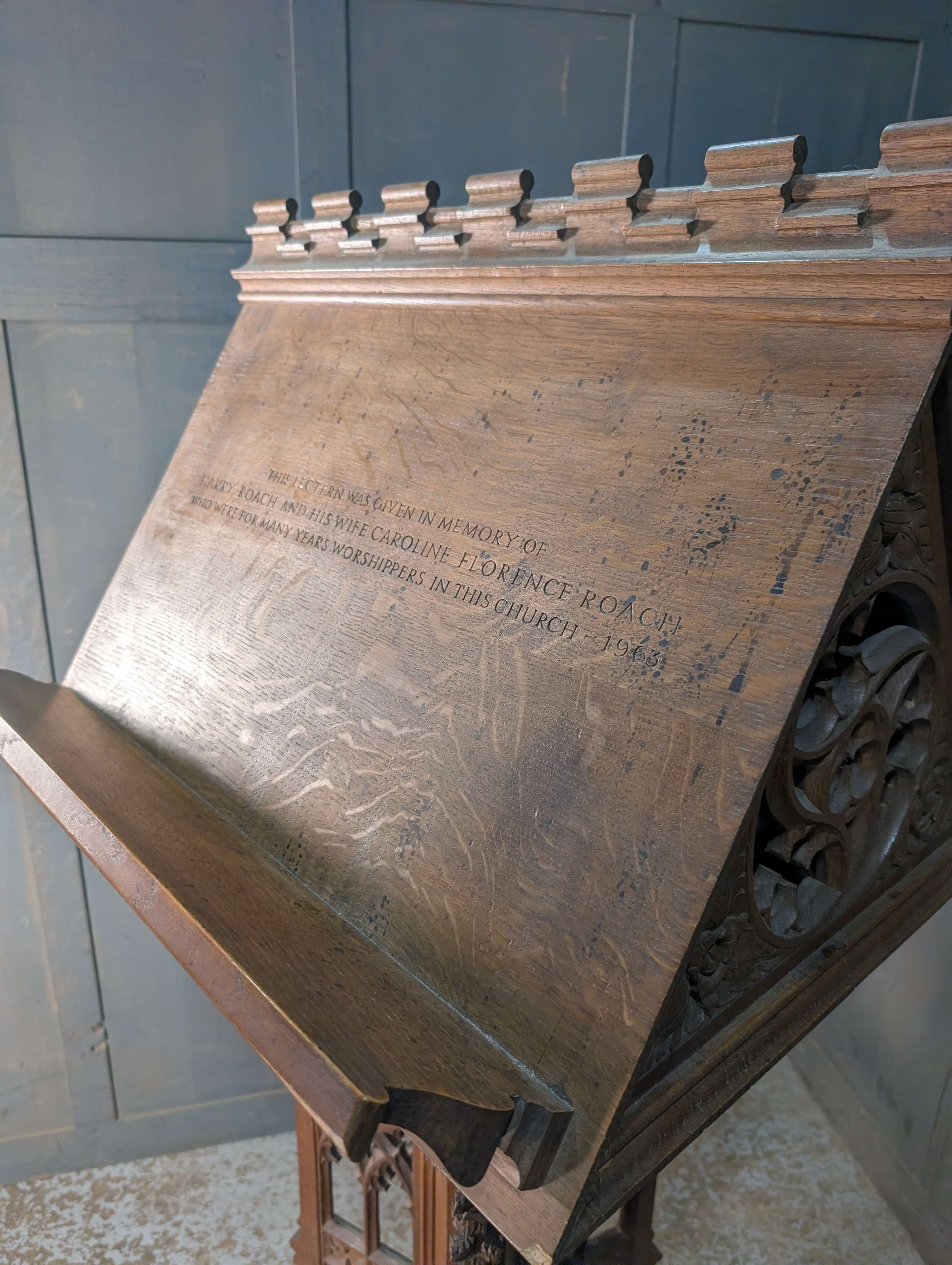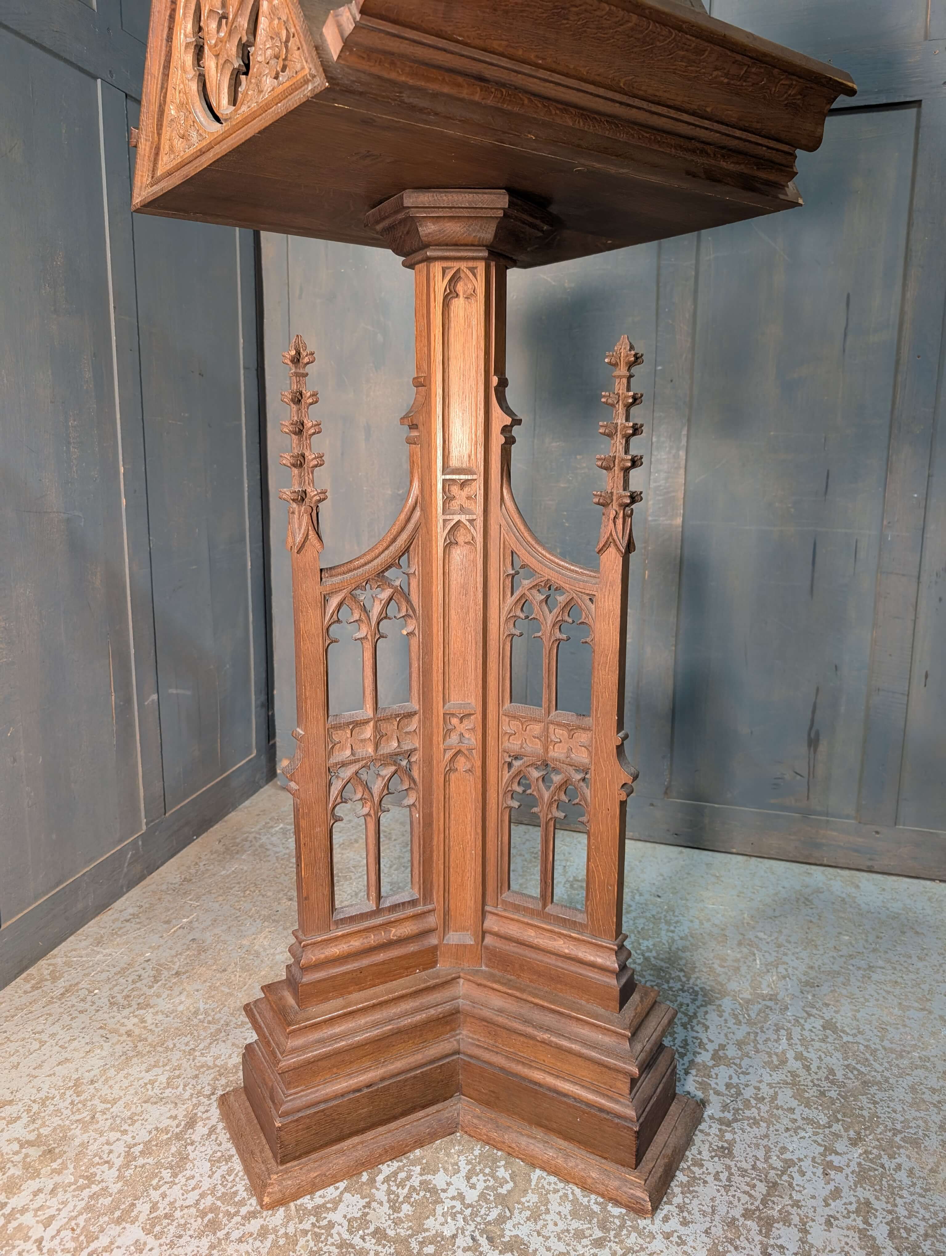 Our product shown on this page 1930’s Vintage Highly Carved Gothic Oak ‘Pigeon Coop’ Church Lectern is currently available for hire.