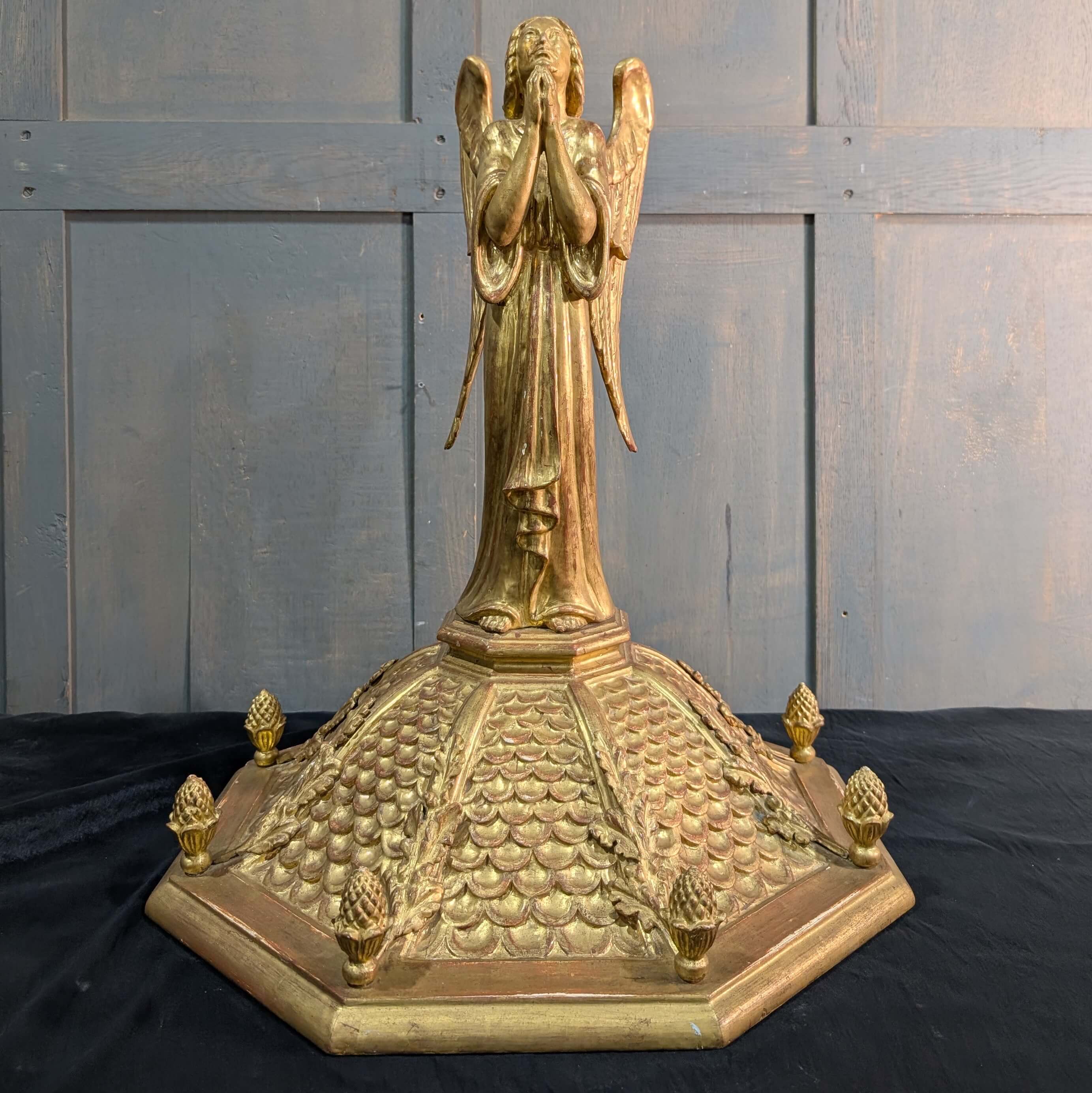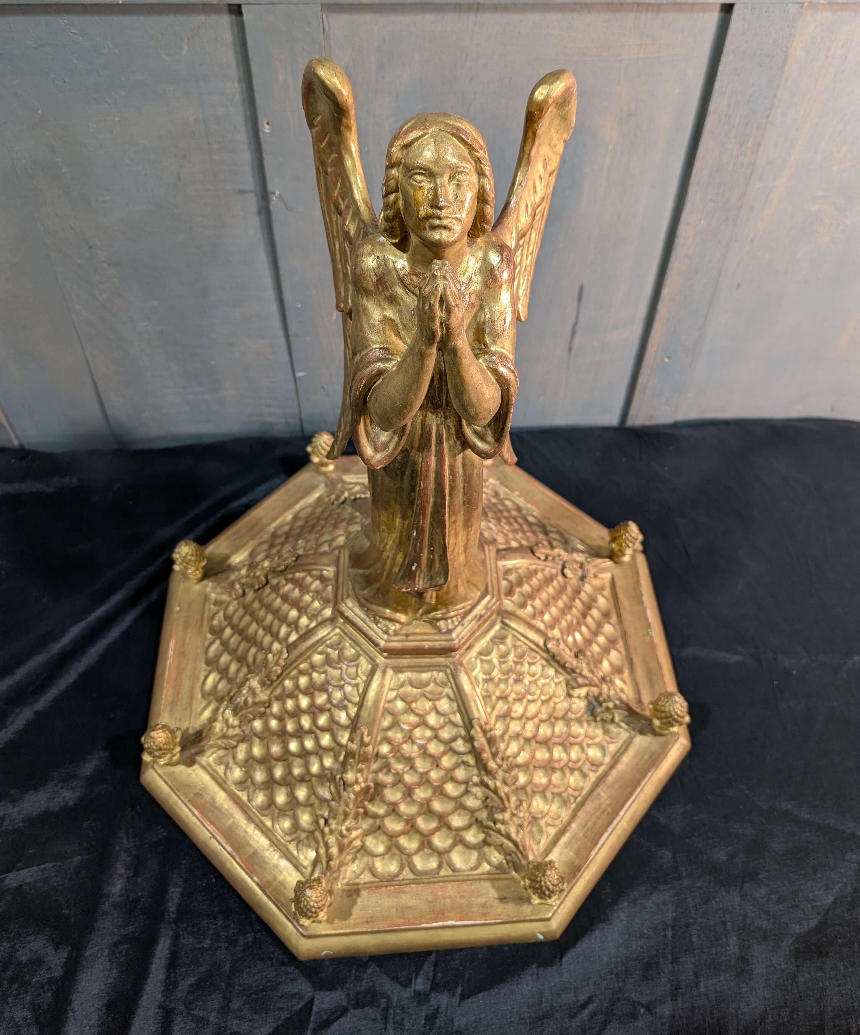 Beautiful Antique Carved Limewood Gilded Angel Centrepiece