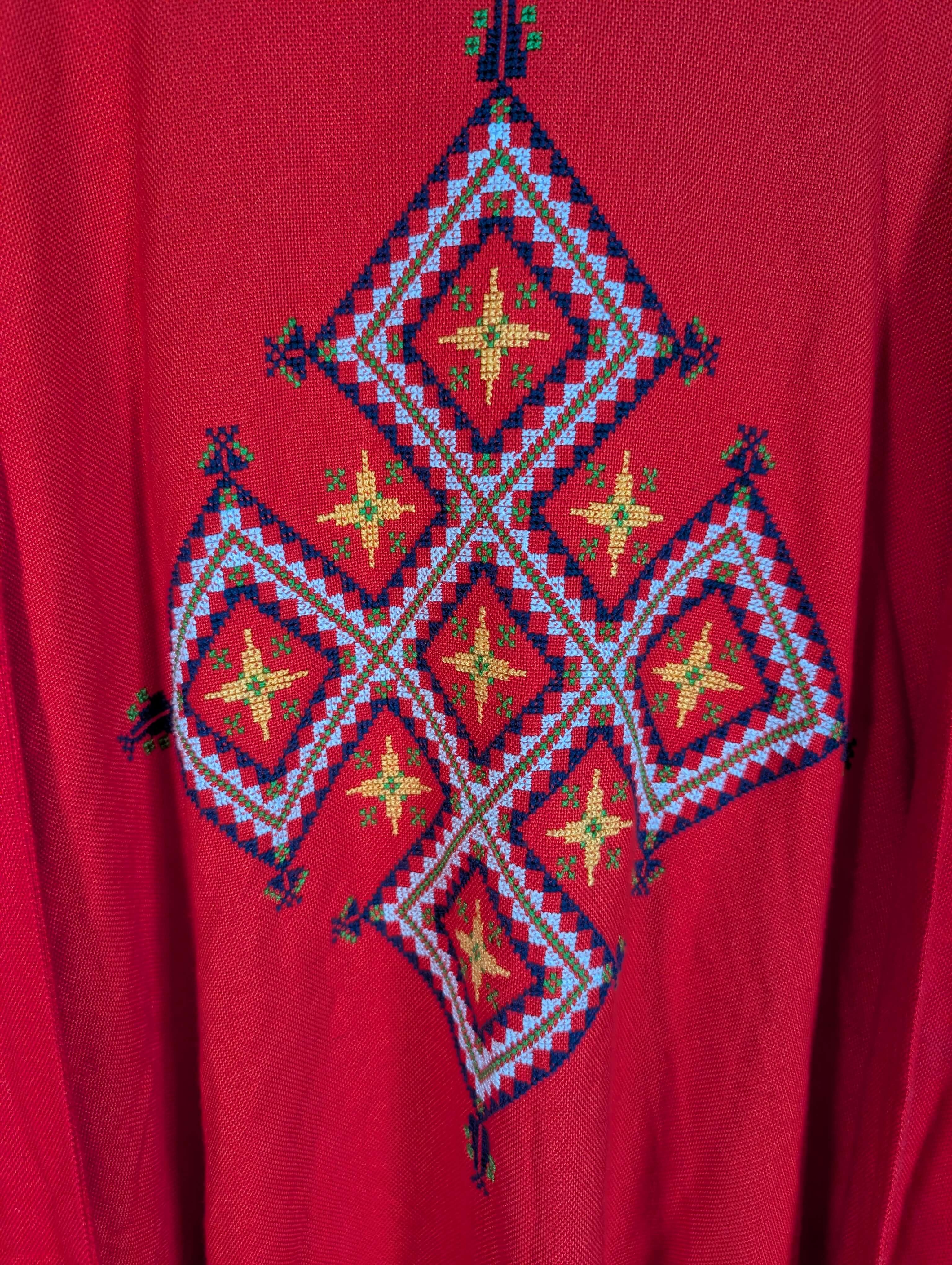 Bethlehem Made Embroidered Red Cotton Chasuble with Stole
