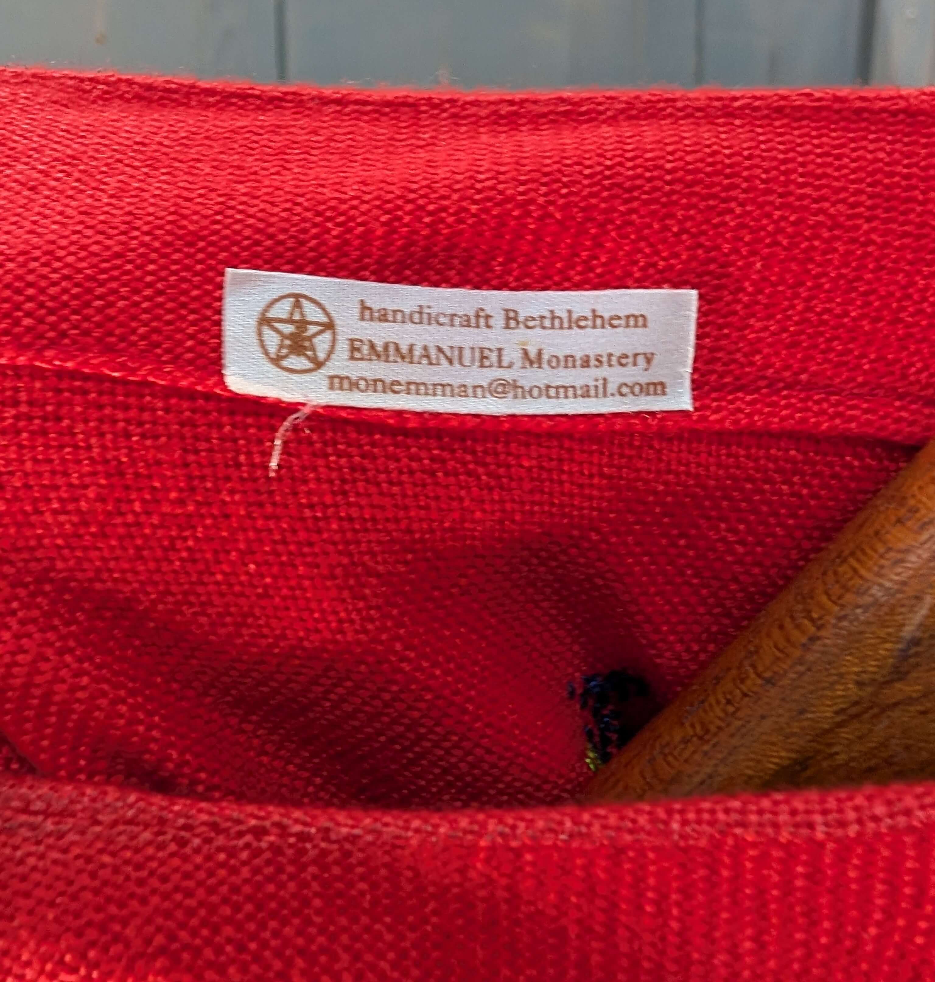Hand made at the Emmanuel Monastery, Bethlehem.  Very slight discolouration around collar.