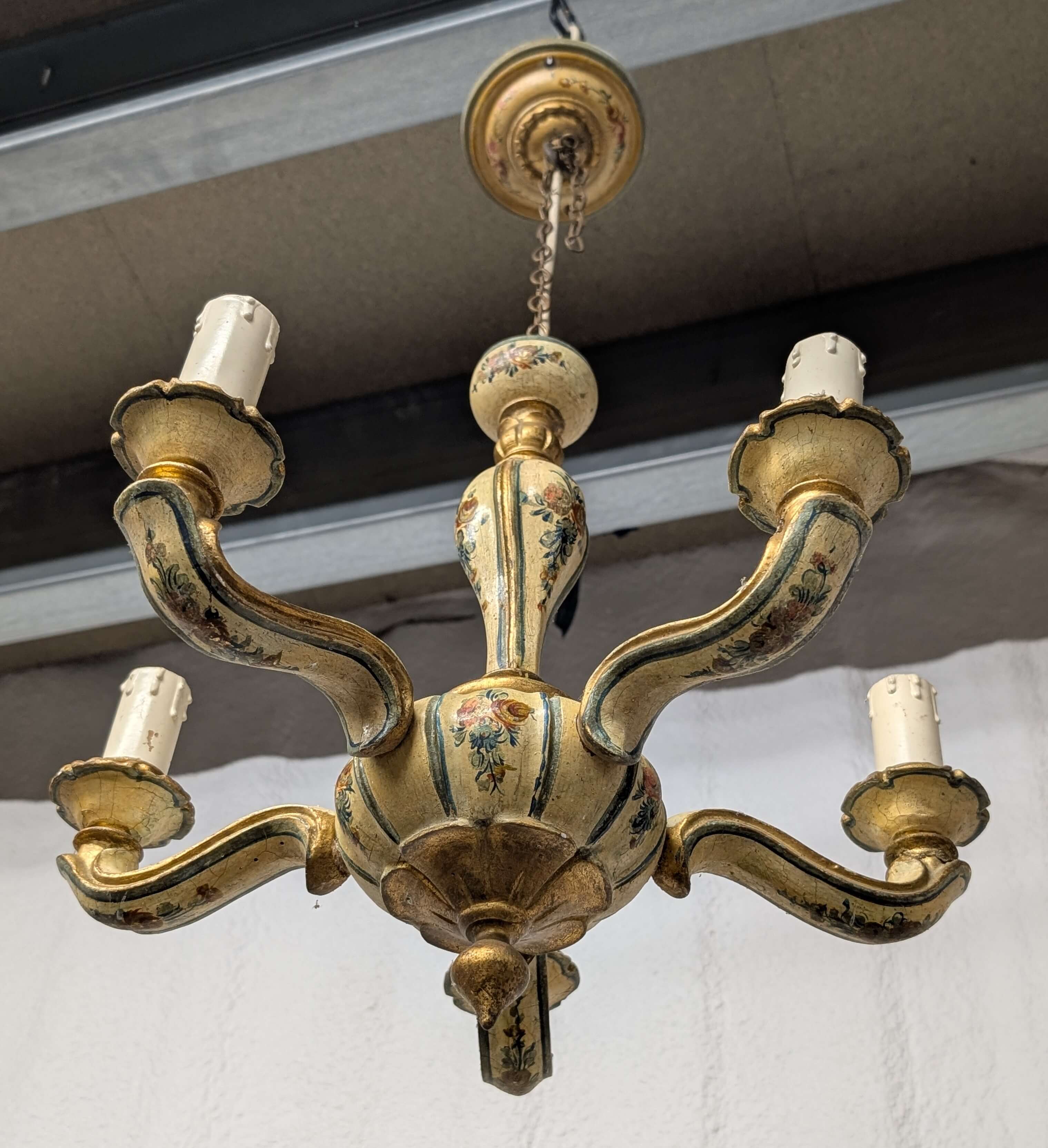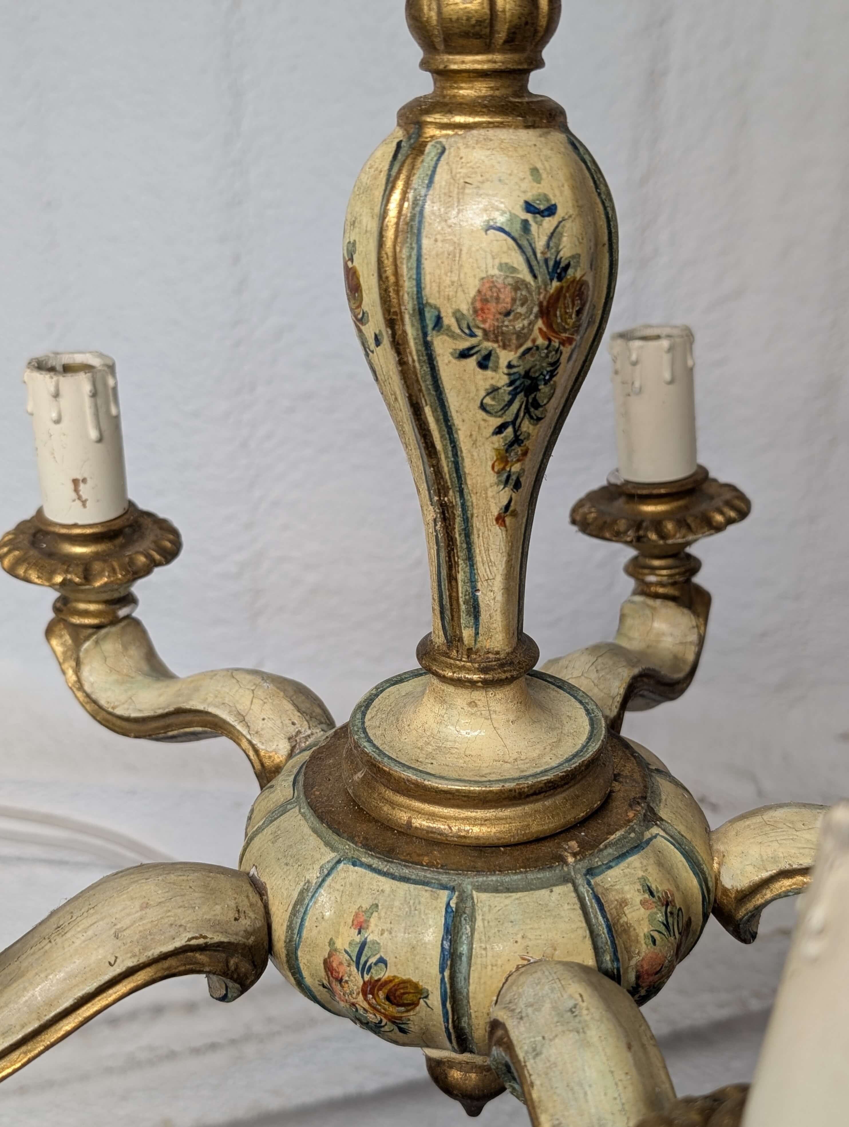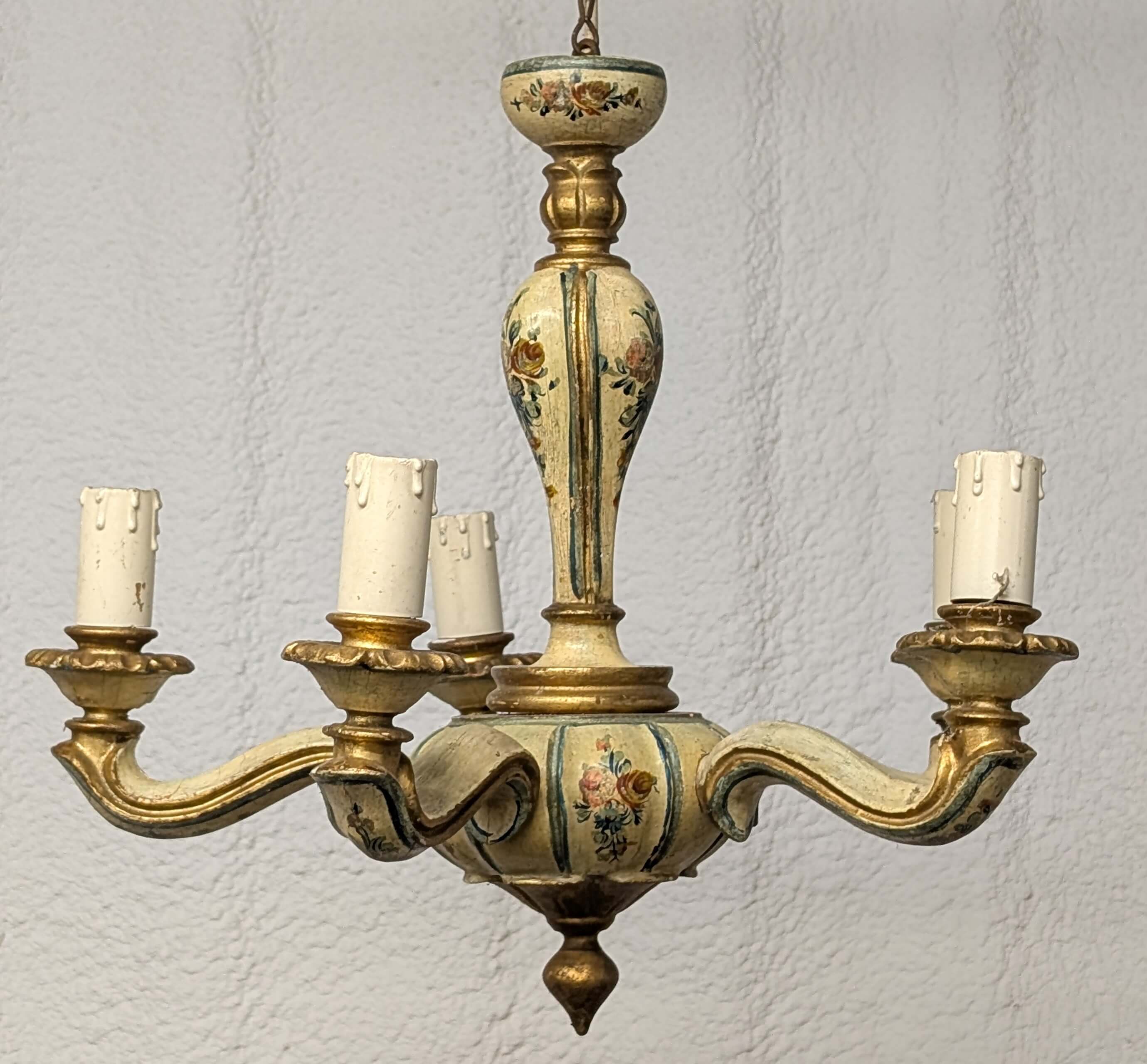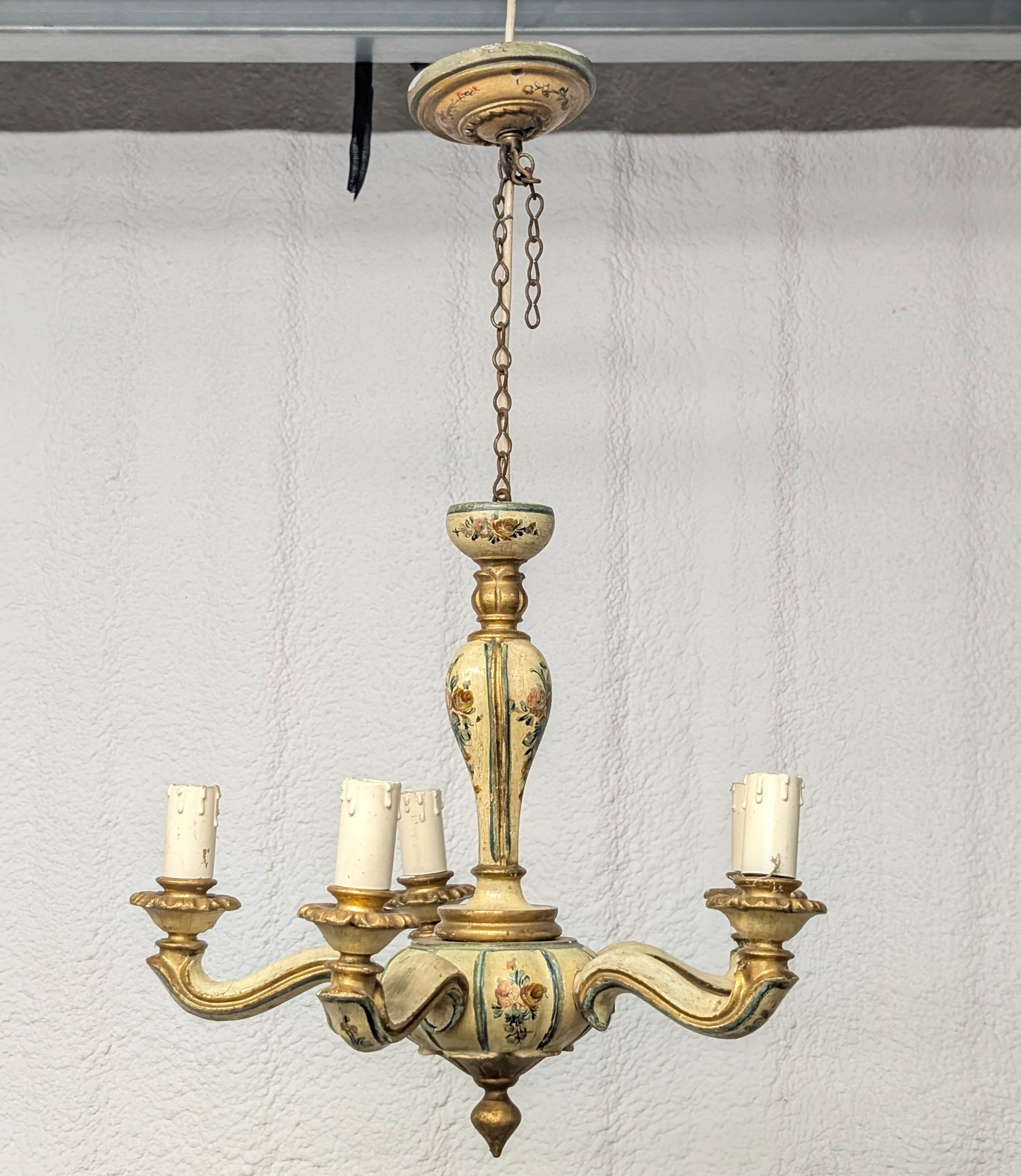 Charming Painted Carved Small Wooden Chandelier From Private Chapel