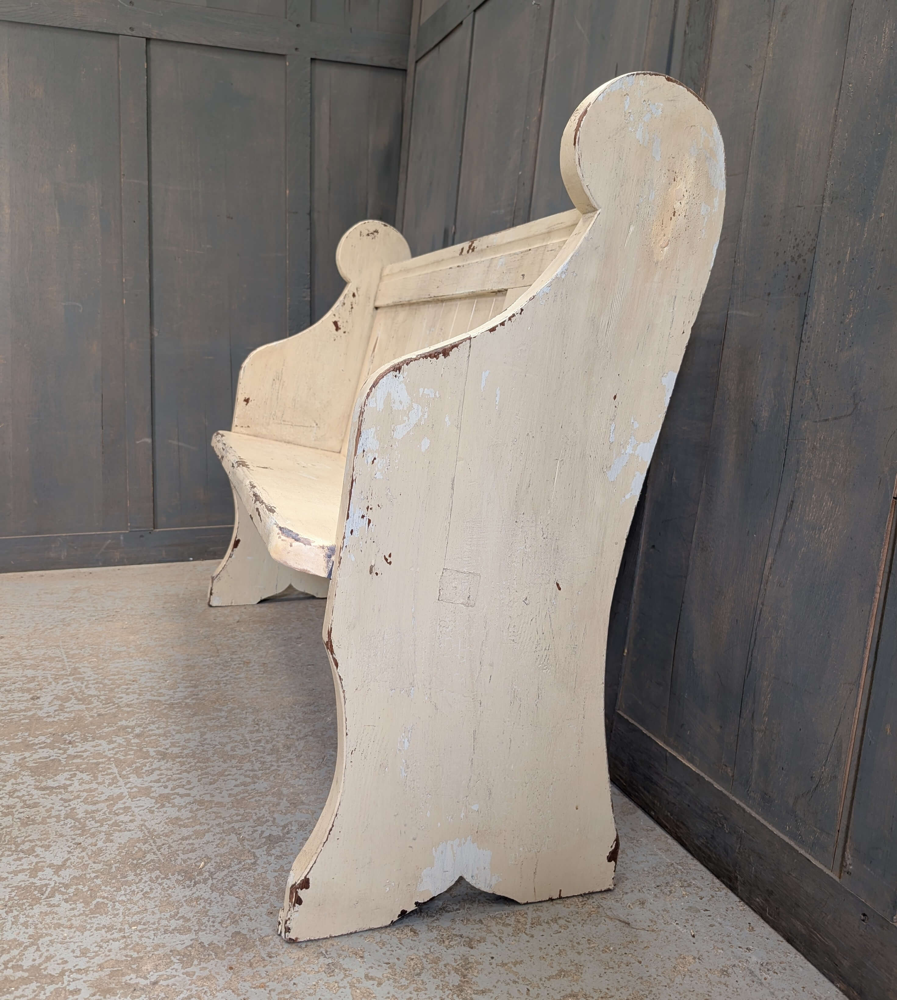 Please Note: Delivery of this Distressed Cream Painted Antique Pine Church Pew Bench can take between 1 – 3 weeks for most parts of mainland UK.