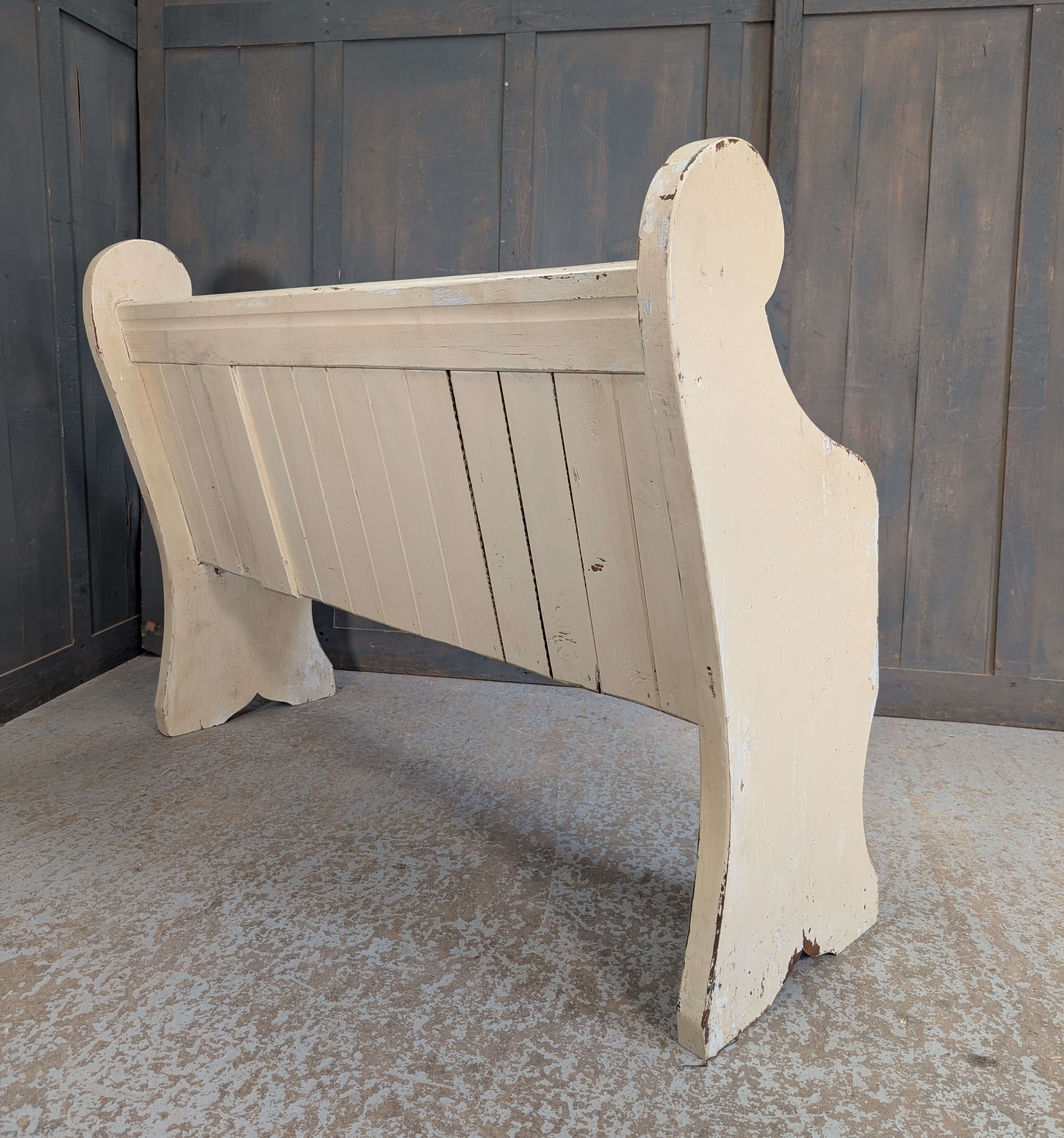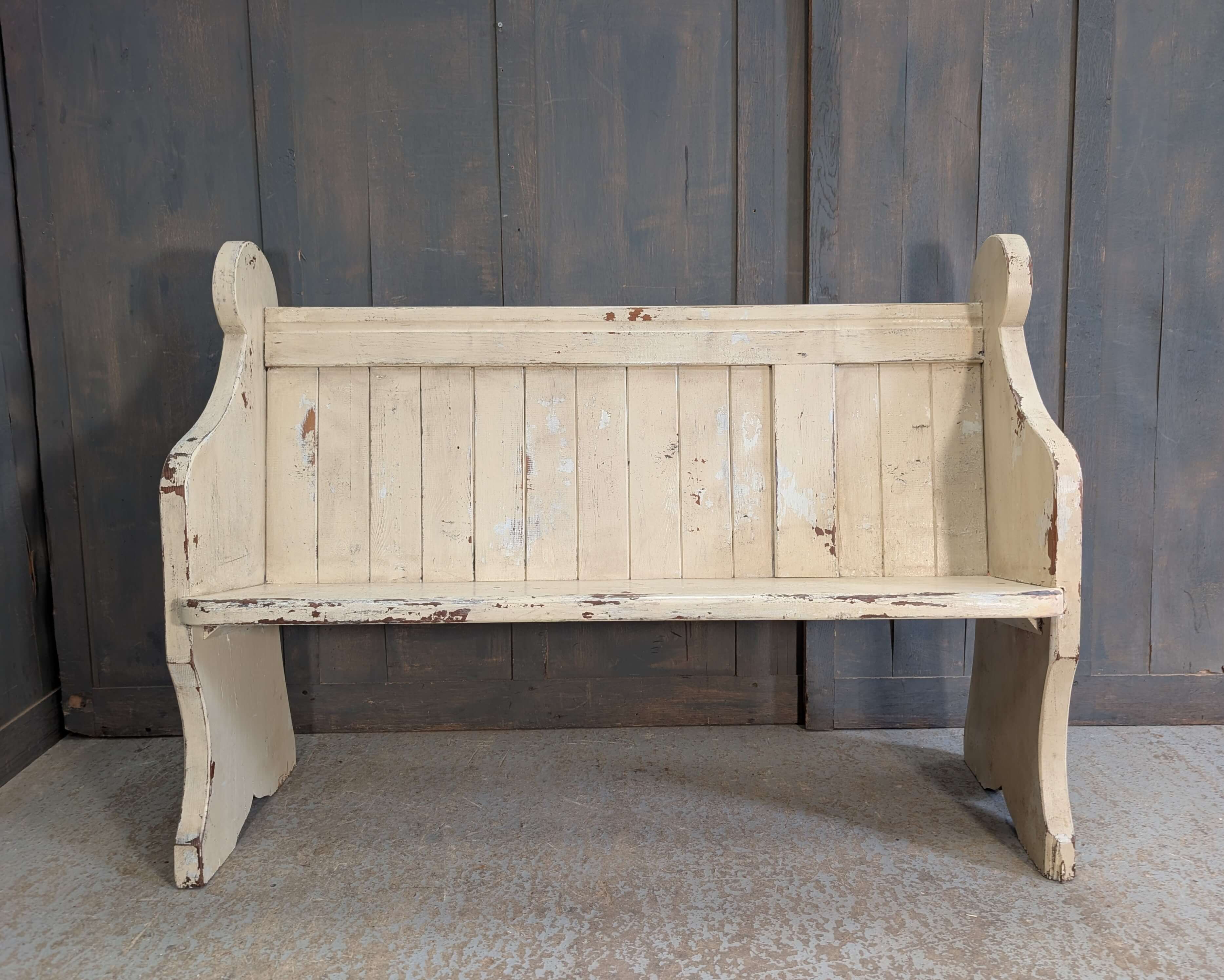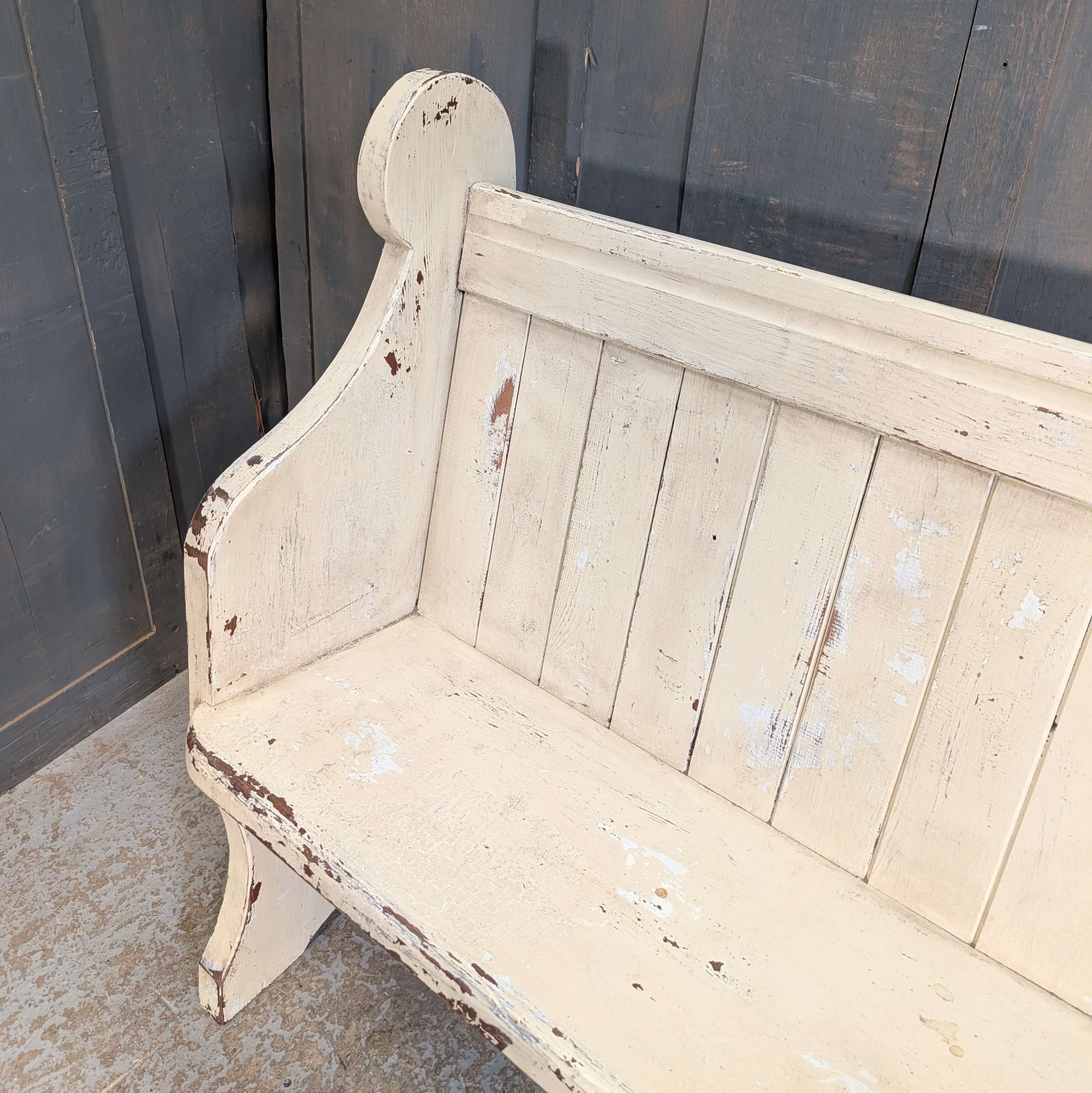 Distressed Cream Painted Antique Pine Church Pew Bench