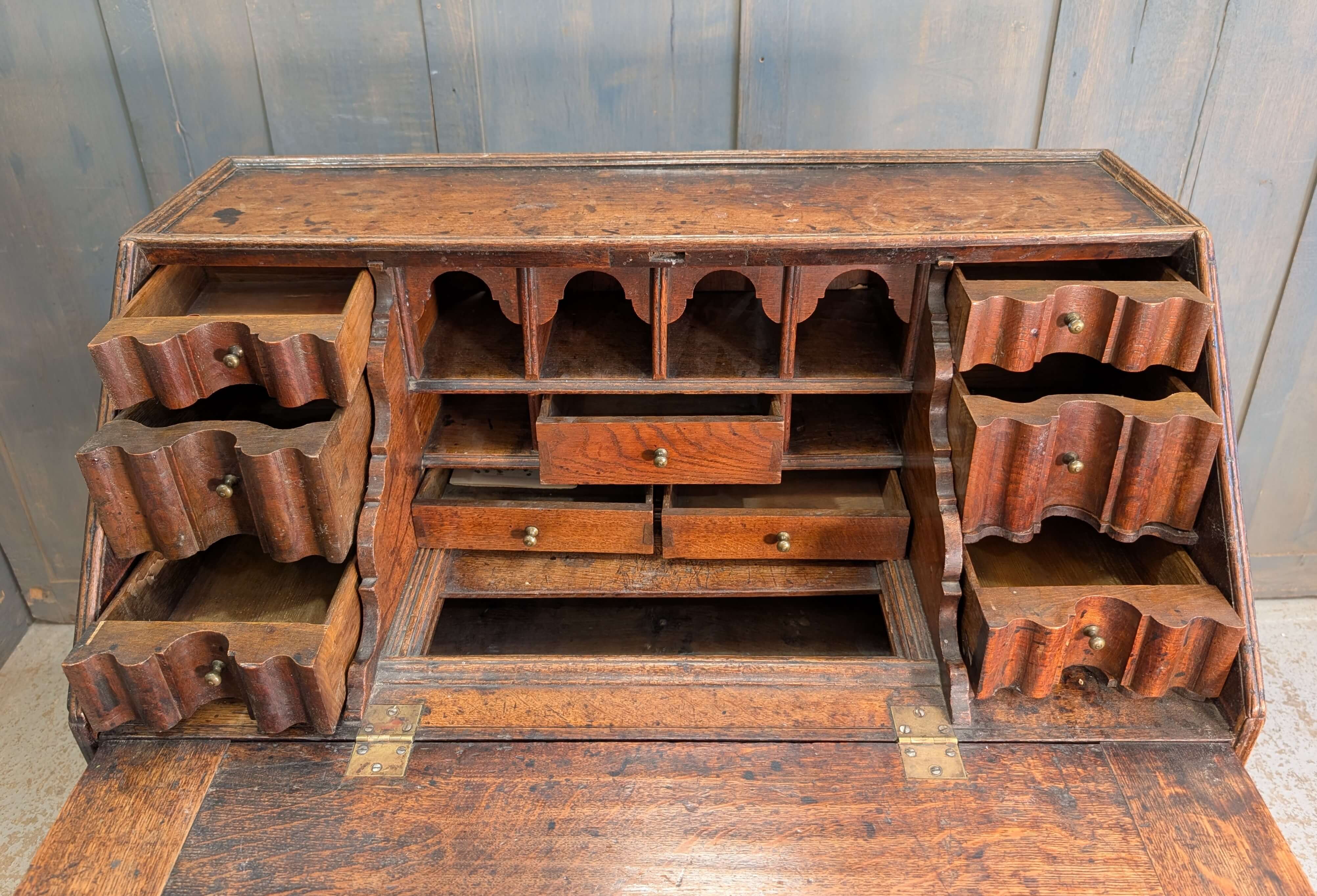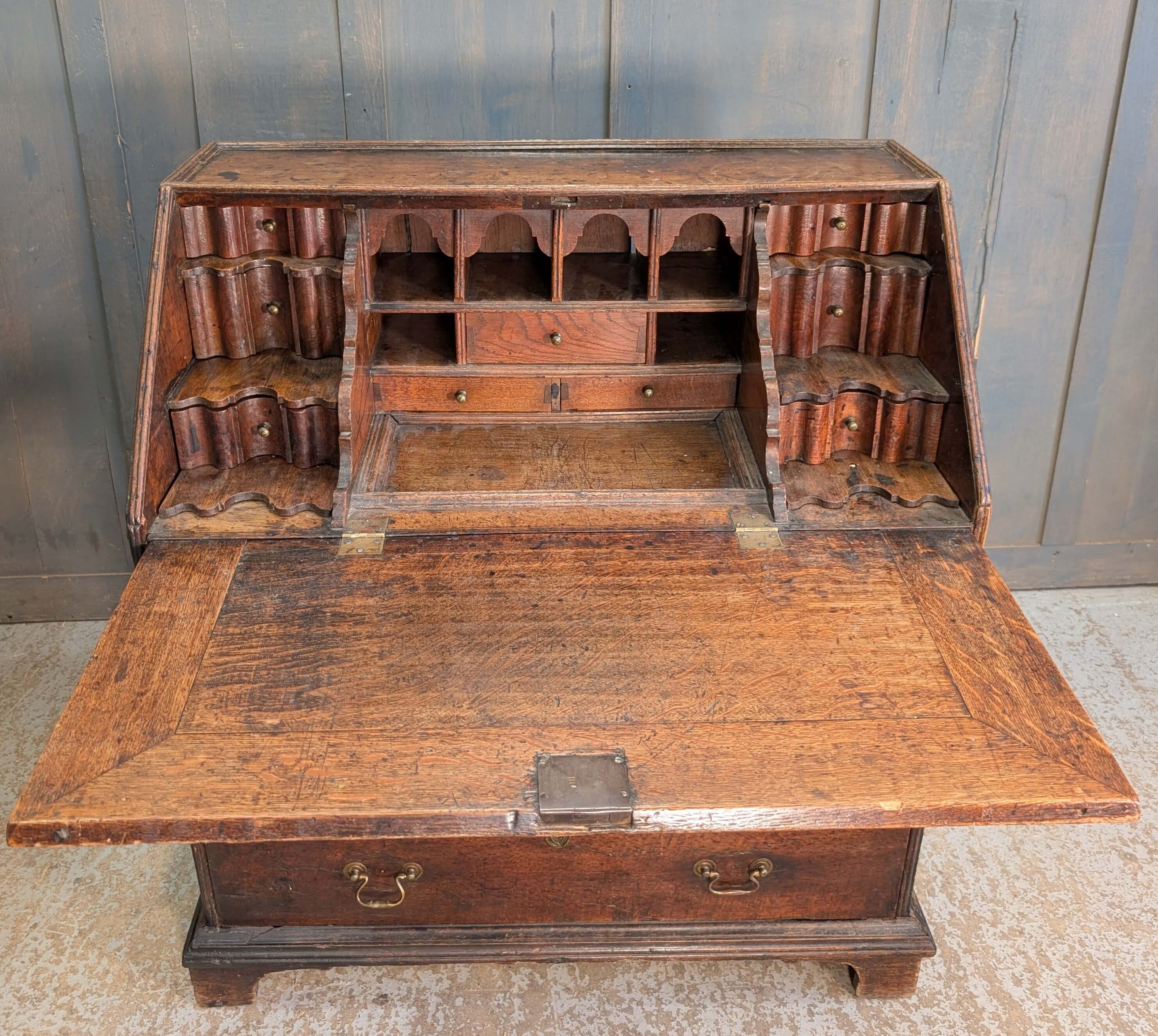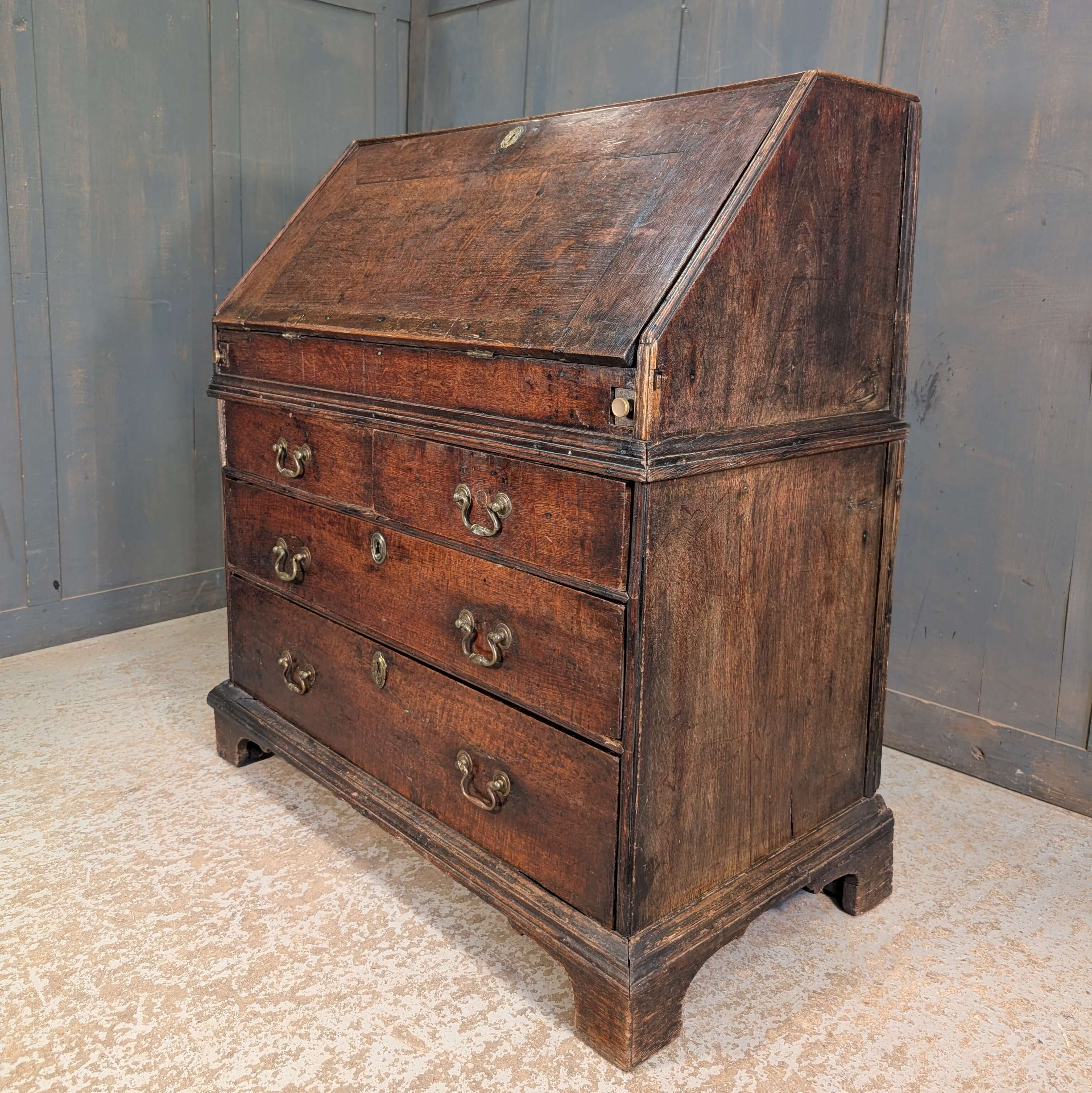 Our product shown on this page Early George II Oak Bureau with Wavy Drawers is currently available for hire.