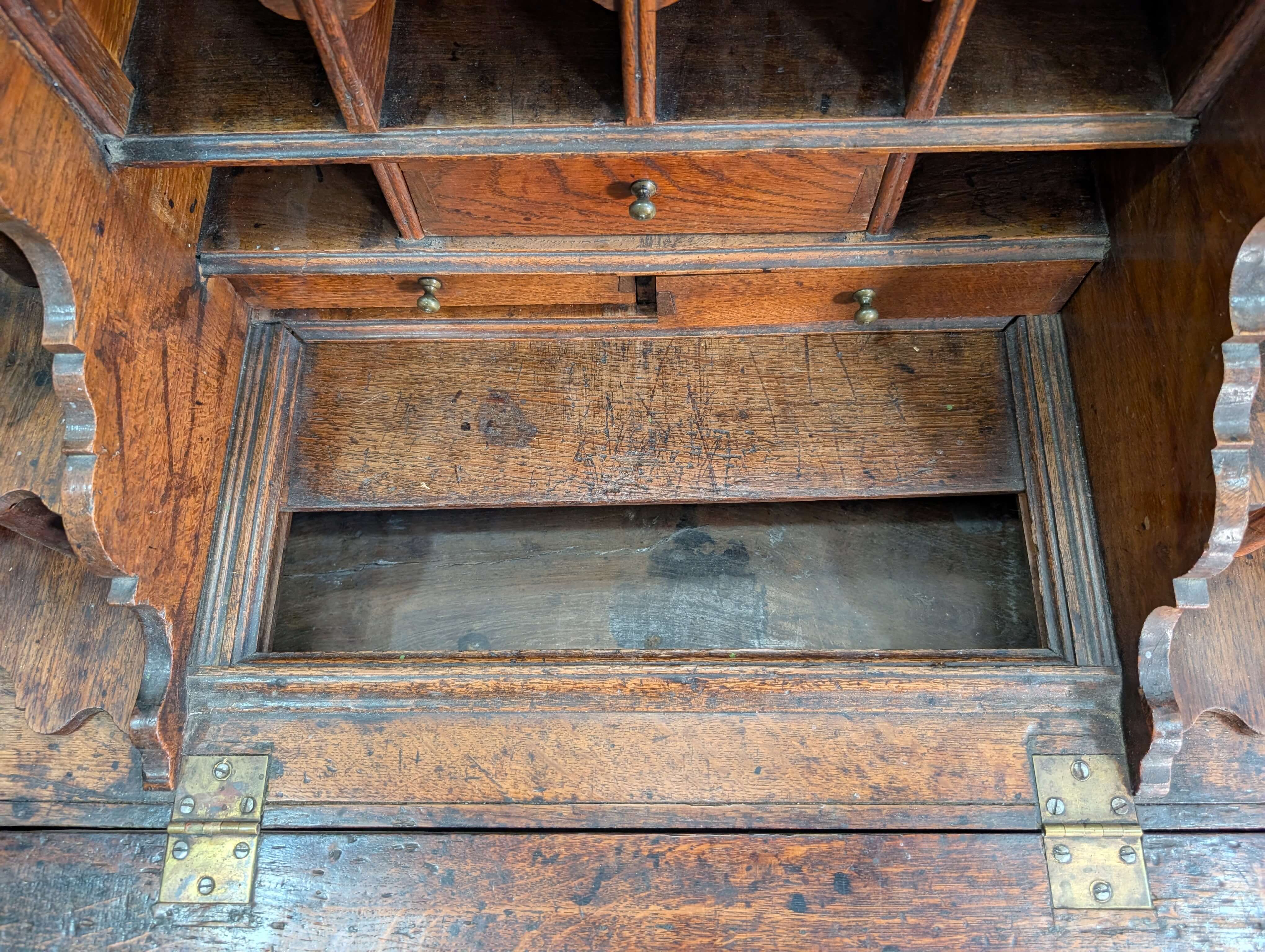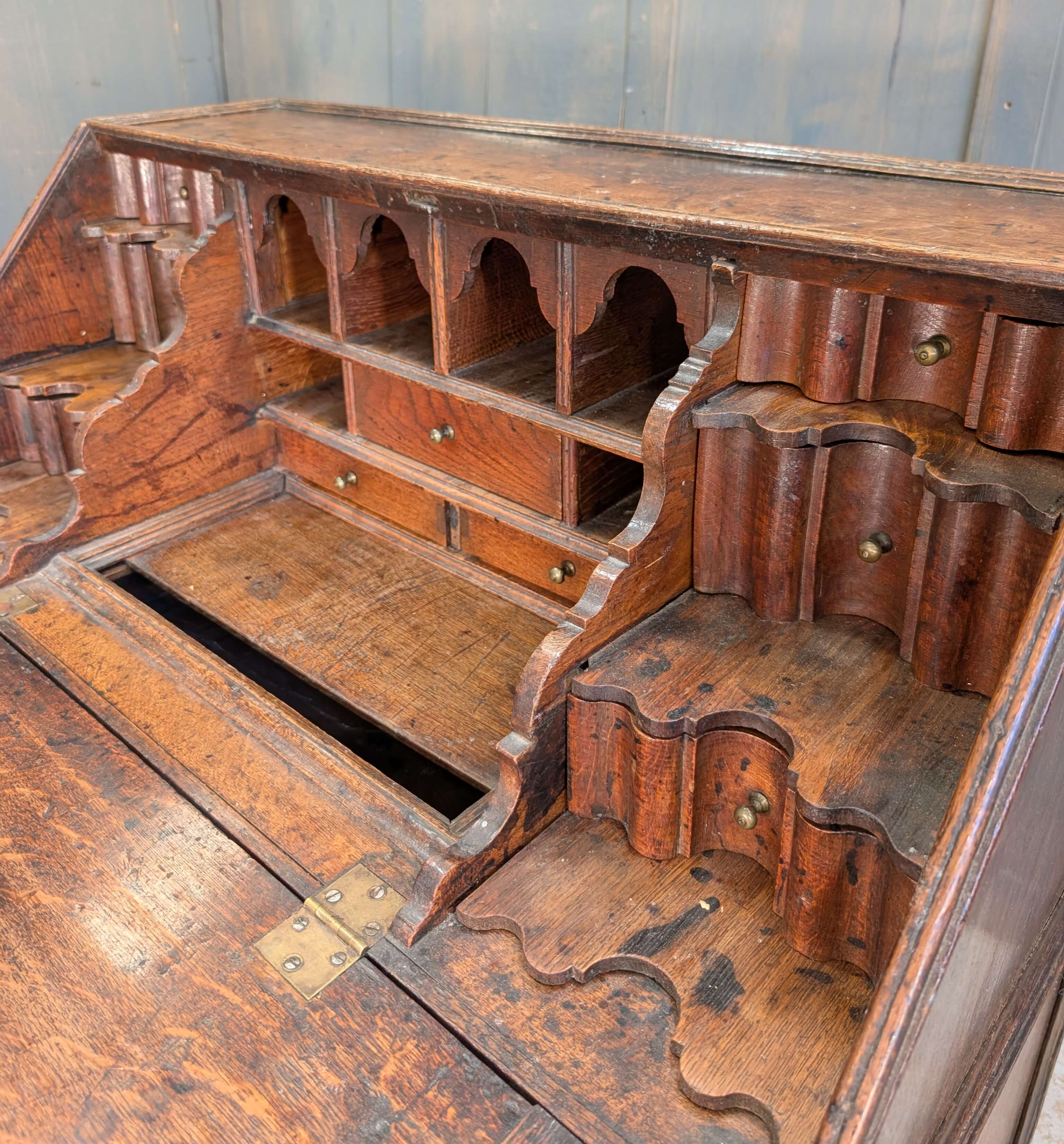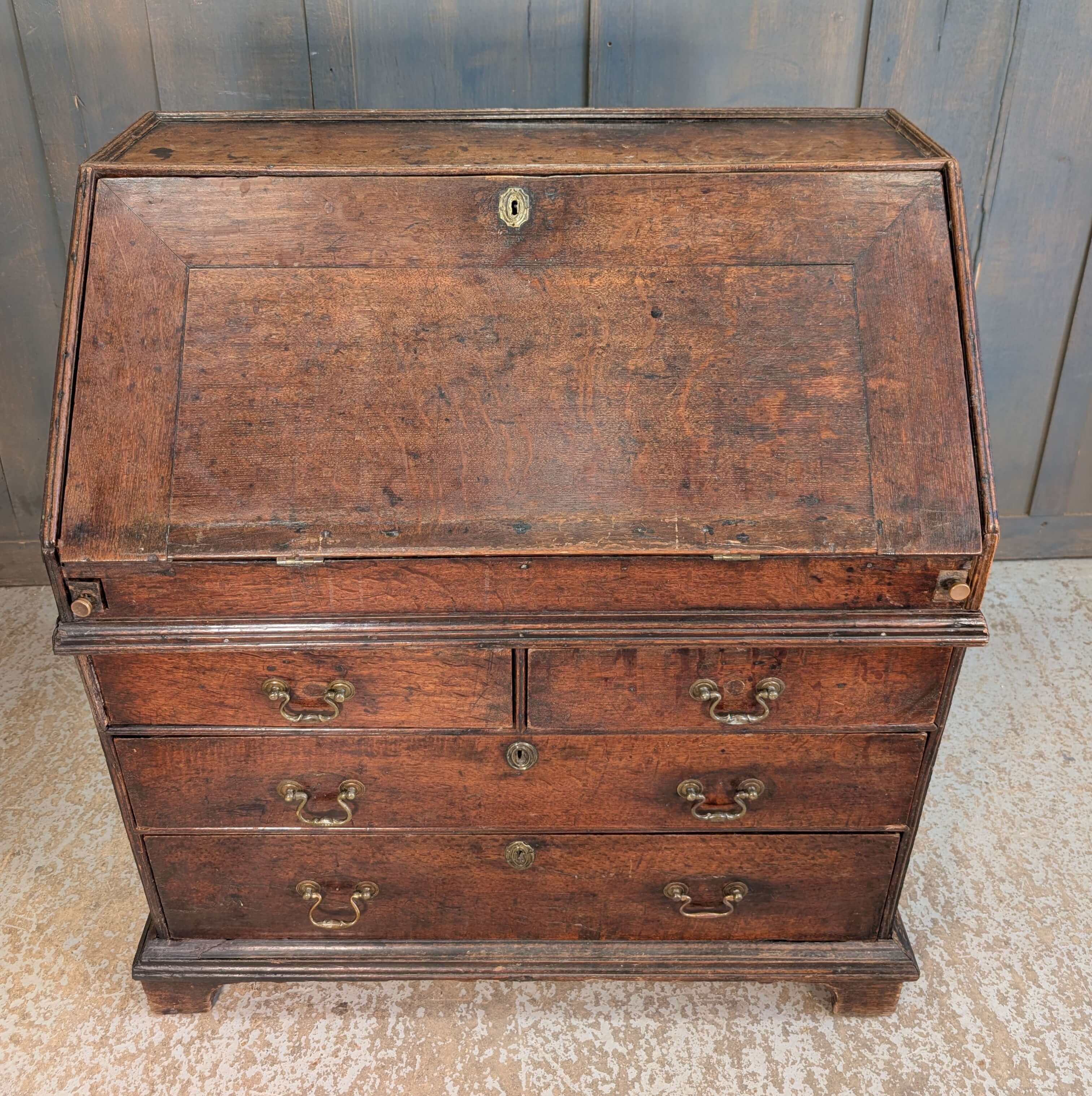 Our product shown on this page Early George II Oak Bureau with Wavy Drawers is currently available for hire.