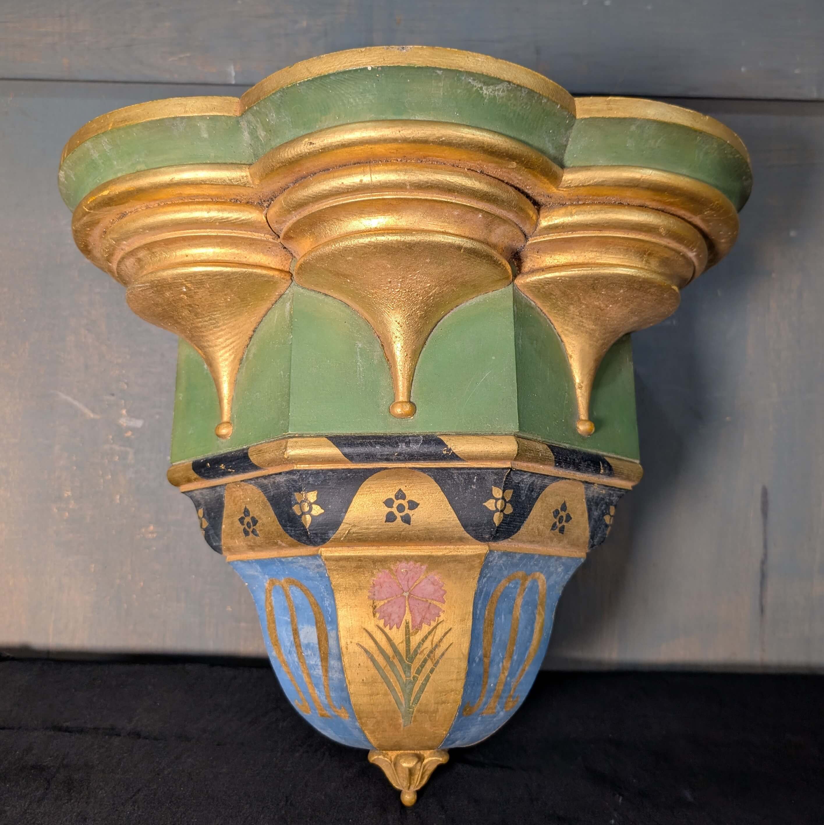 Exceptional Large Painted Pine Church Statue, Cross, Plant Bracket Wall Mounted Shelf
