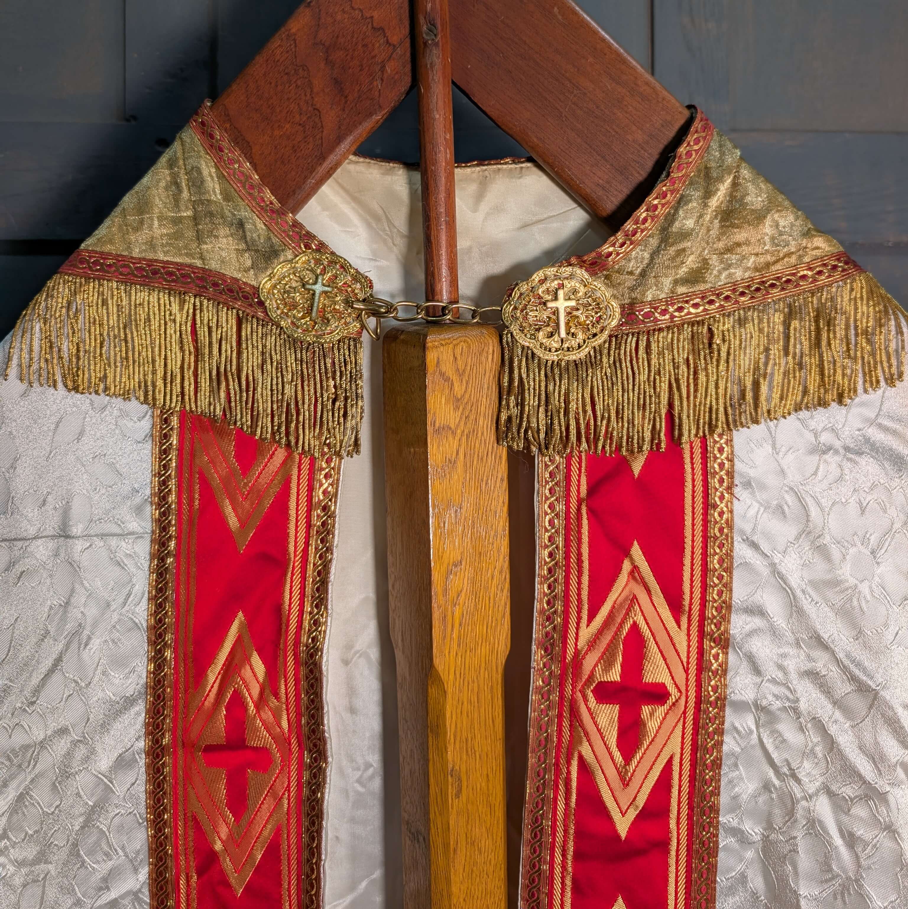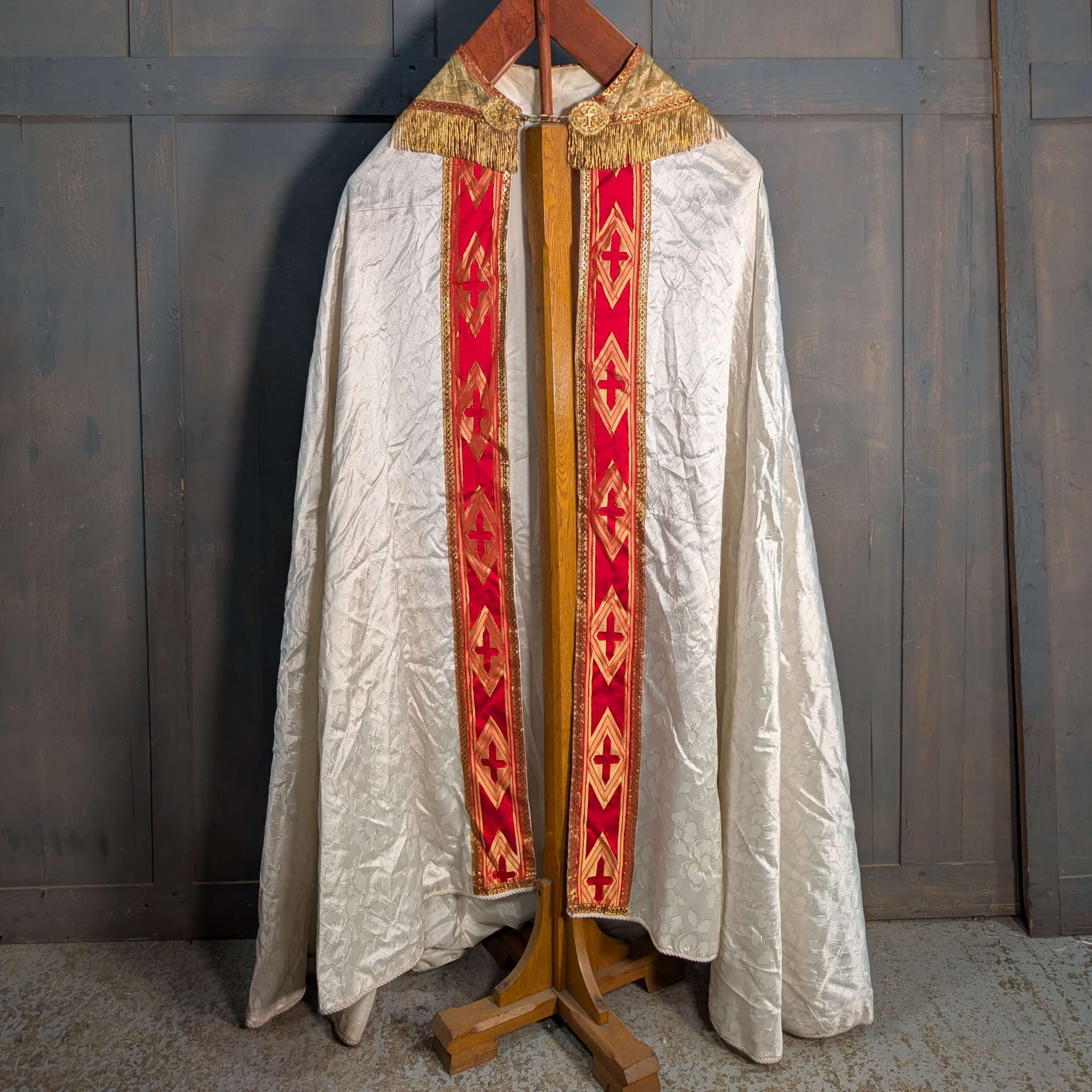 Fine Late 20th Century Embroidered Cope with Gold and Red ‘Hood’ and White Body