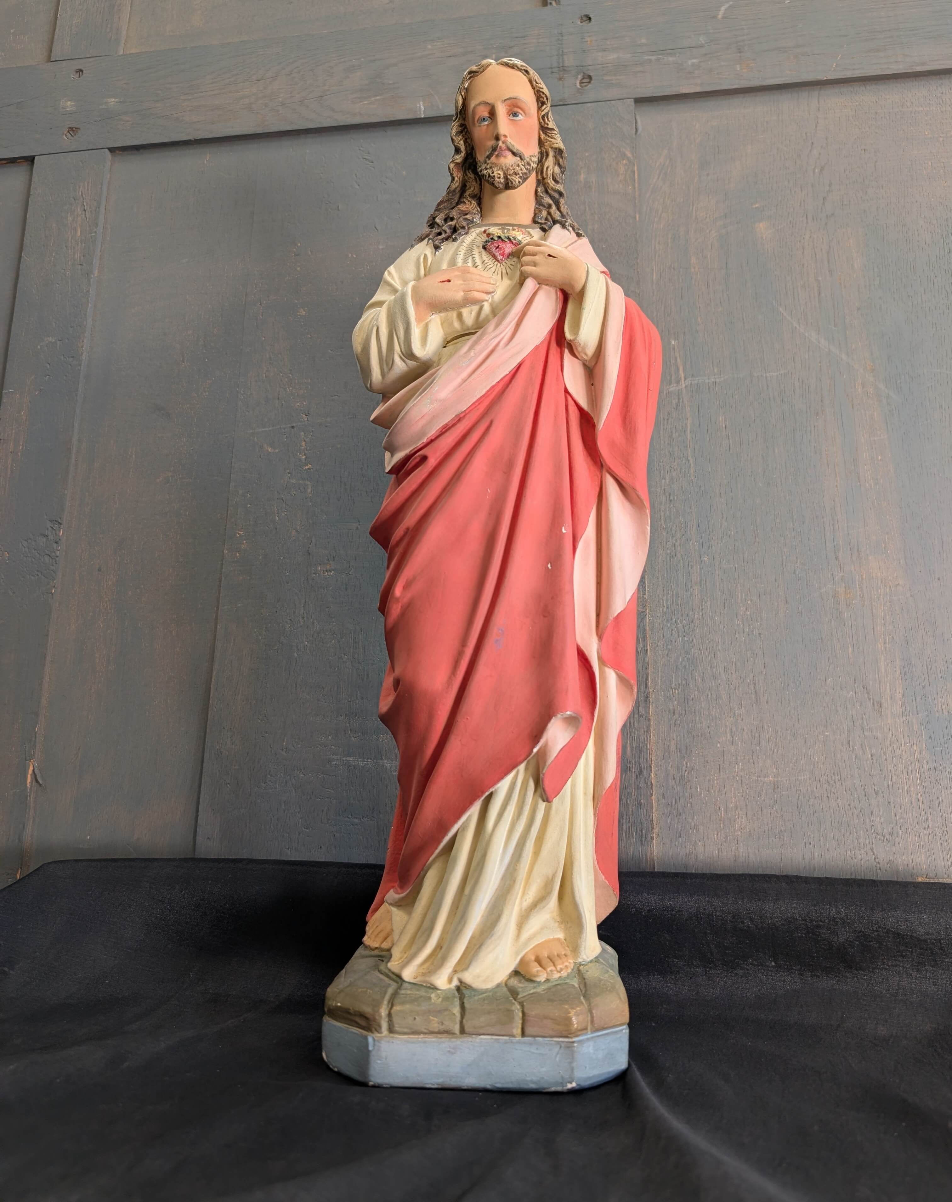 Fine Quality Vintage Plaster of Paris French Religious Statue Christ the Sacred Heart
