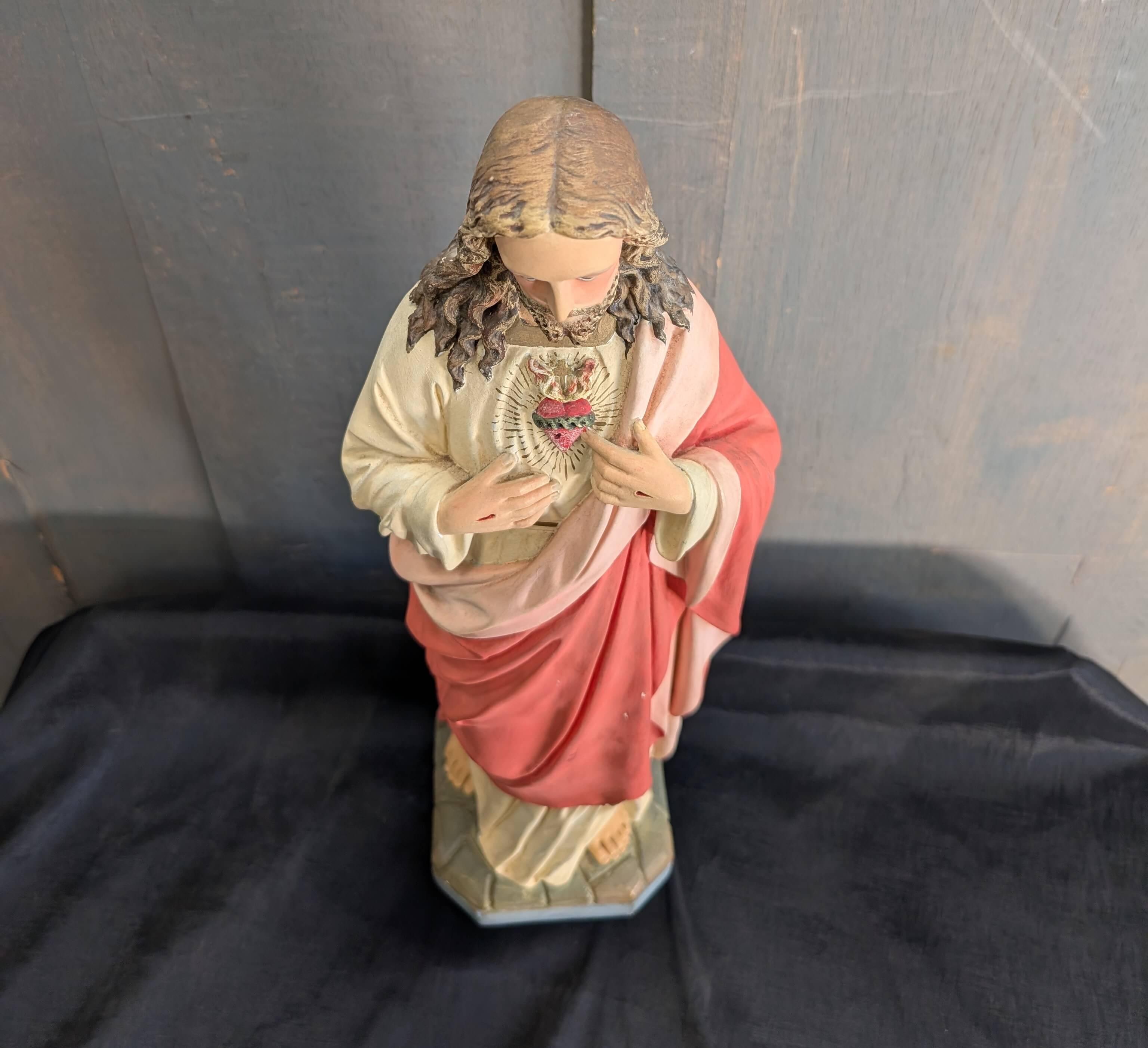 Please Note: For items including this Fine Quality Vintage Plaster of Paris French Religious Statue Christ the Sacred Heart delivery can take between 1 – 3 weeks for most parts of mainland UK.