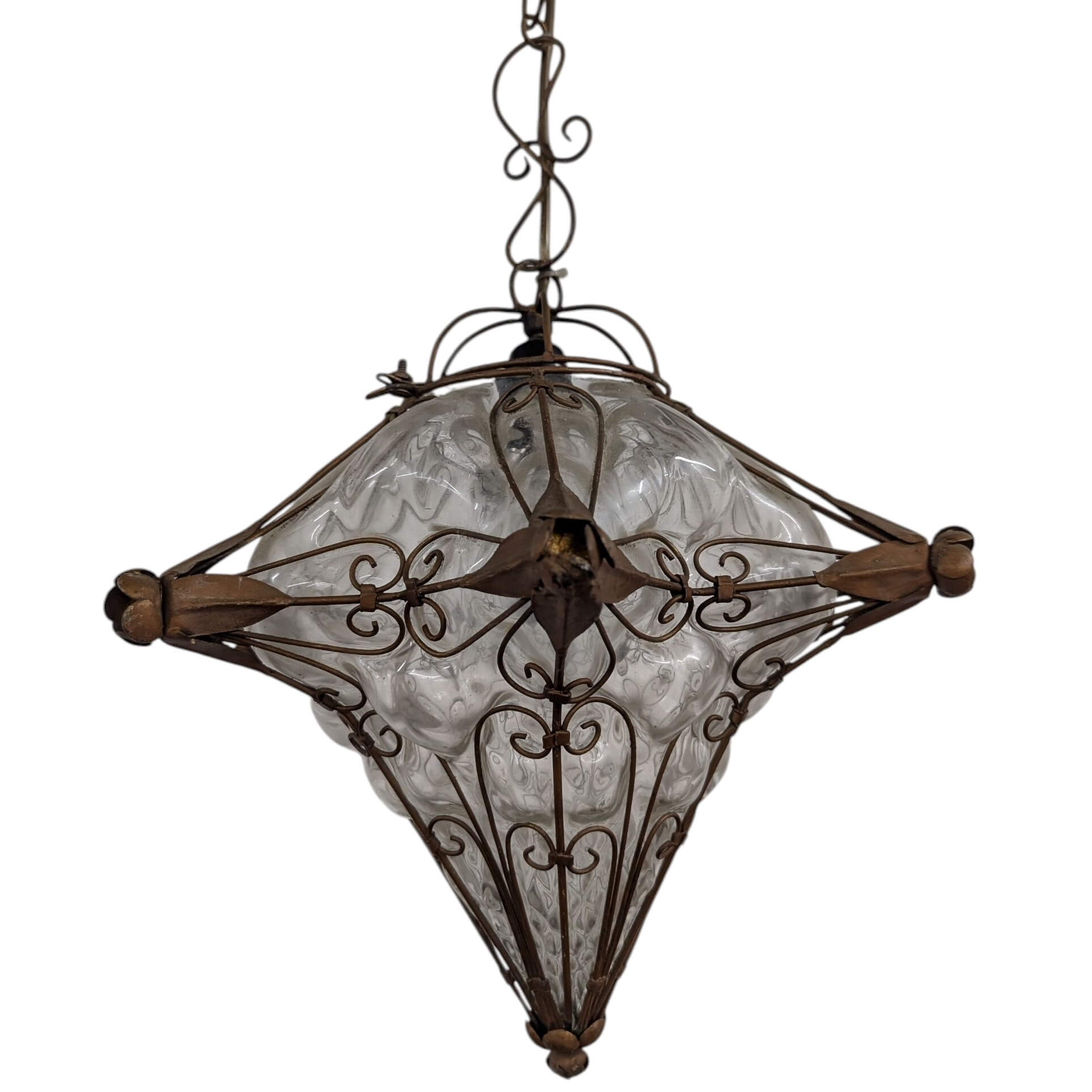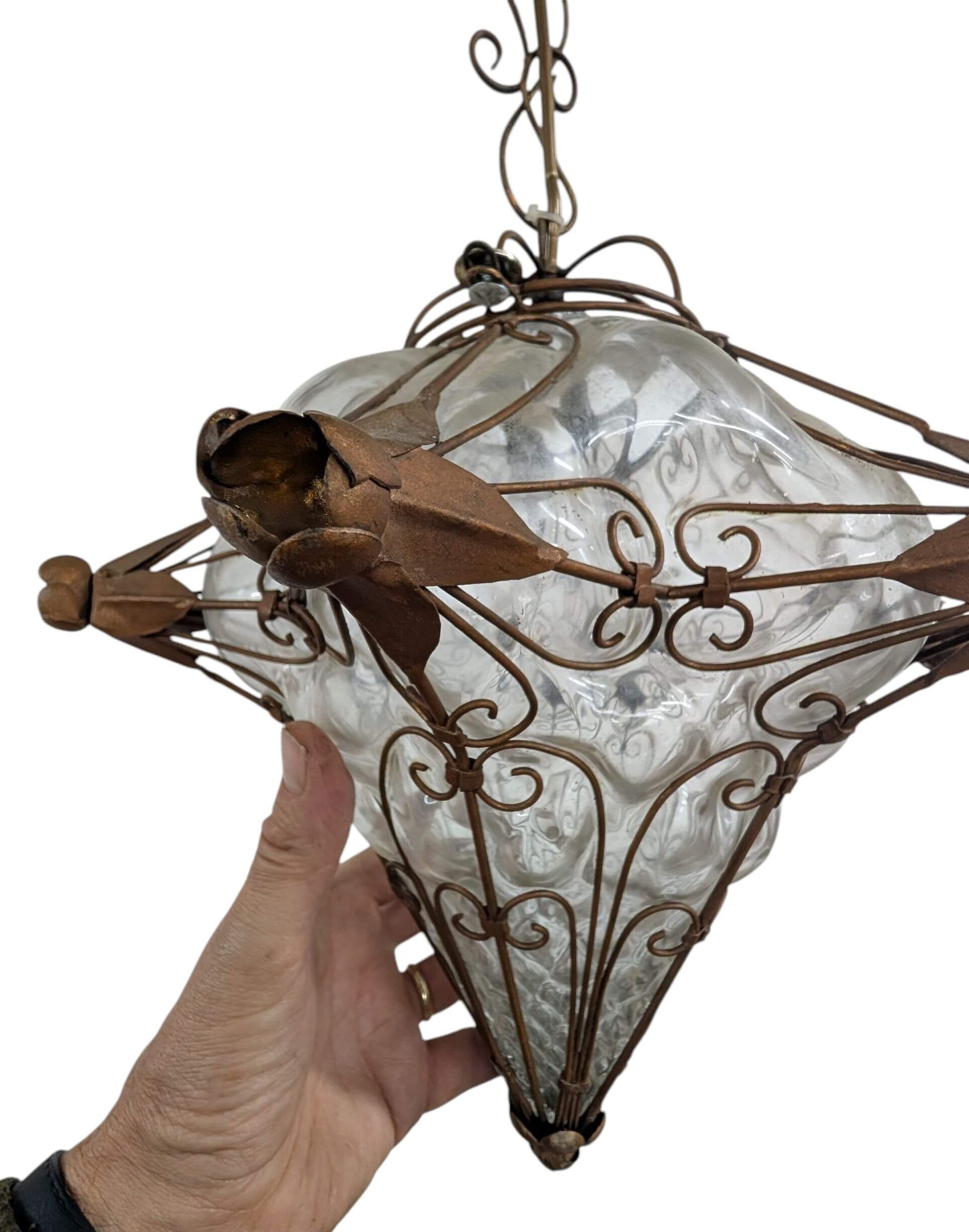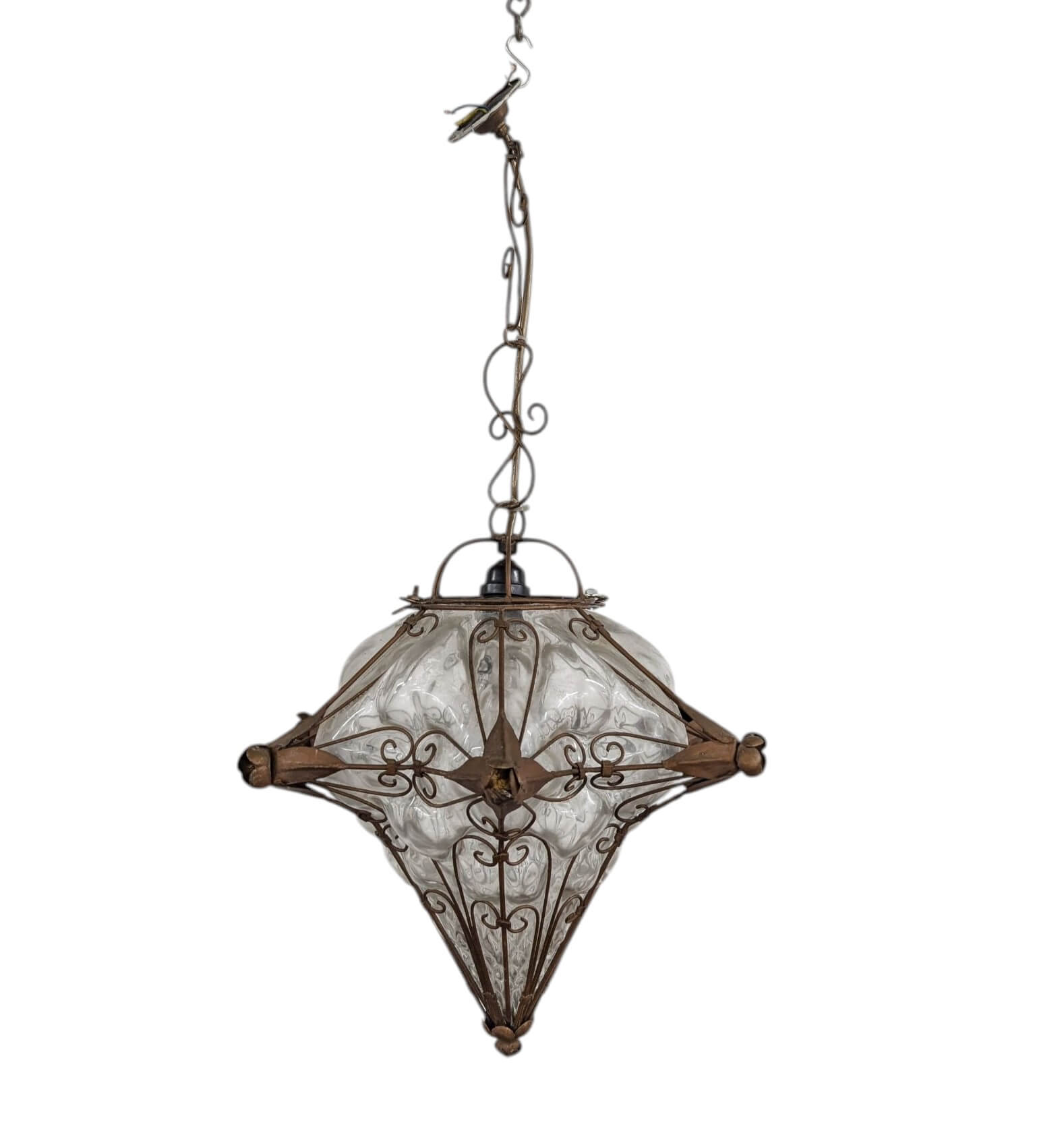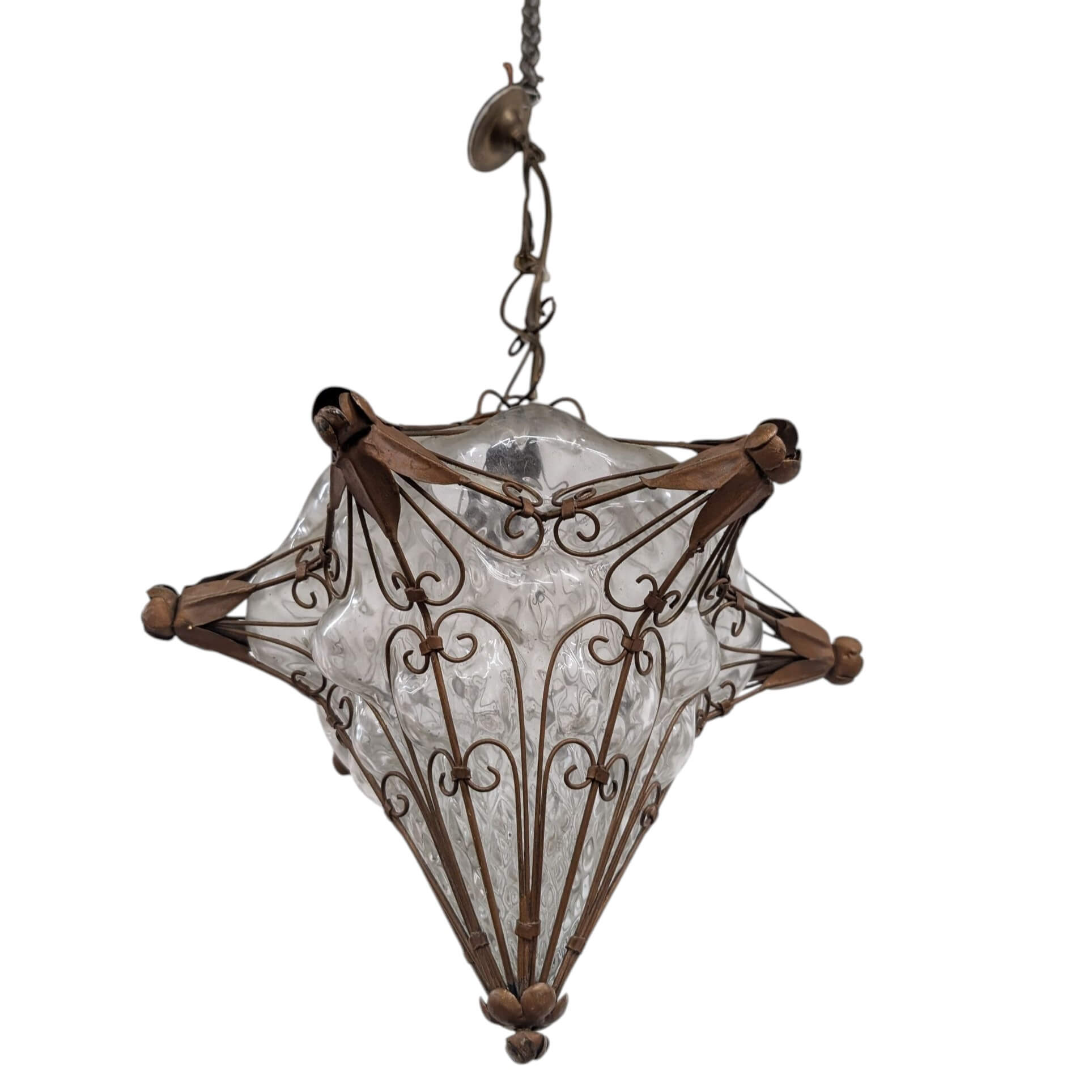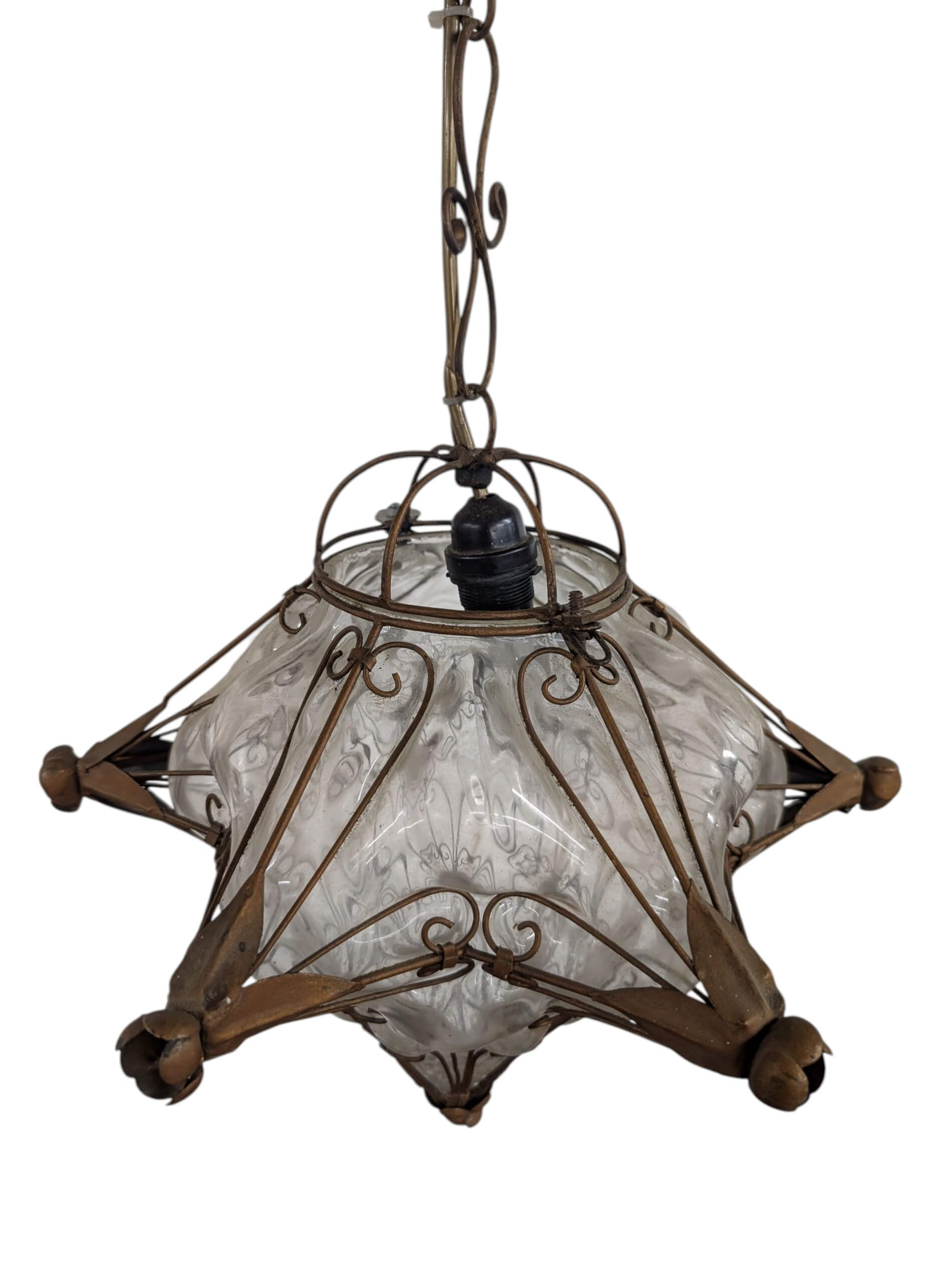 Five Pointed Vintage Heavy Glass and Wrought Steel Star Lantern