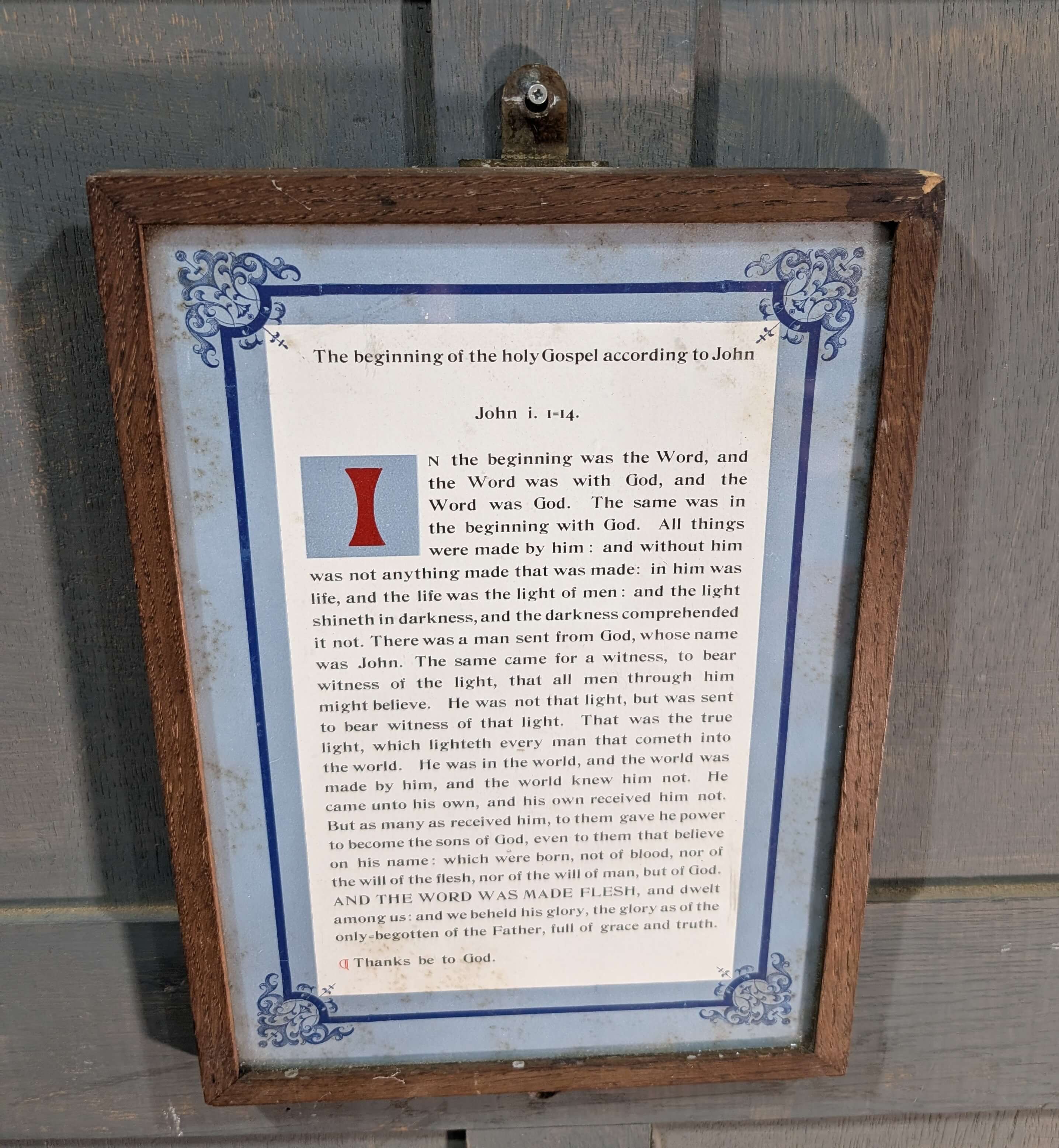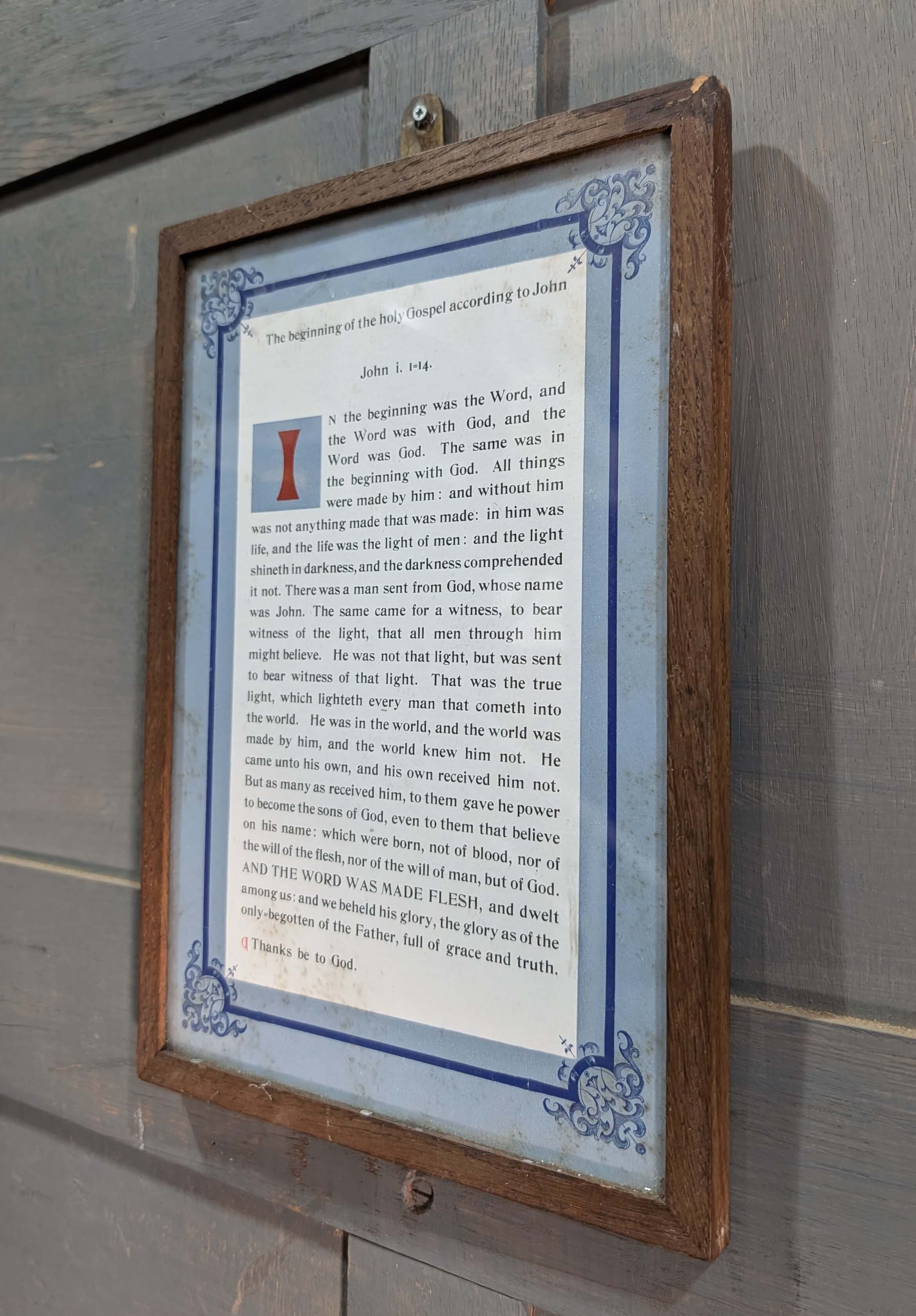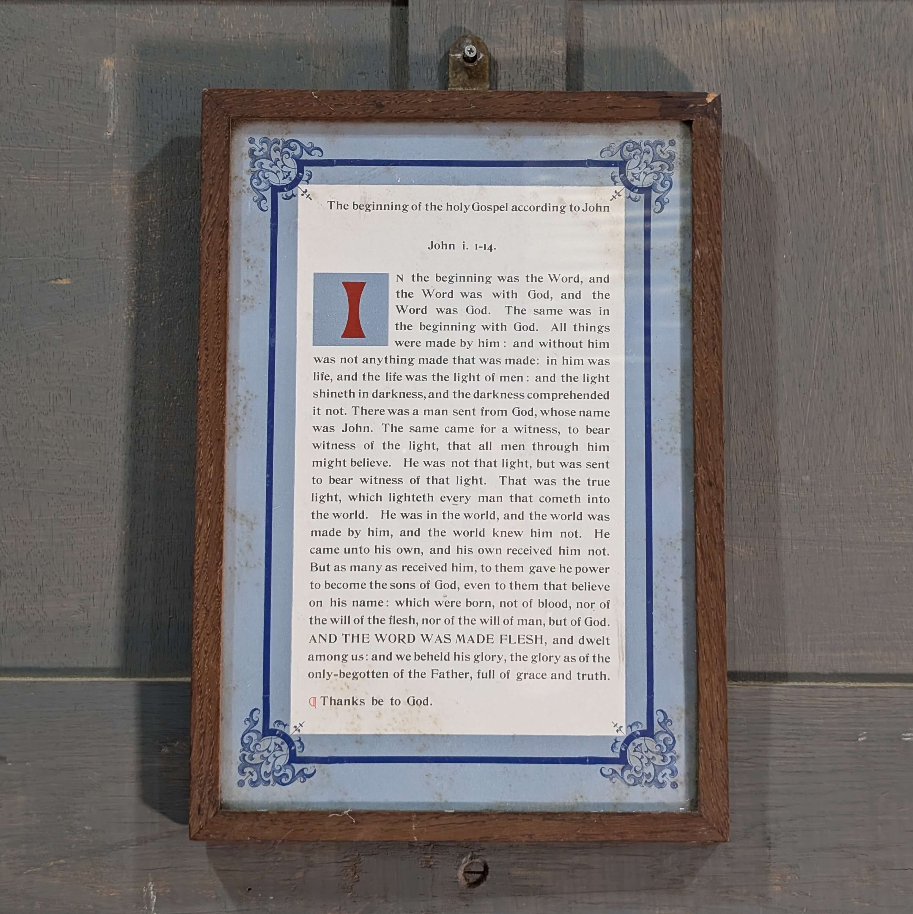 Our product shown on this page Framed Vintage Gospel Card according to John i 1=14 is currently available for hire.