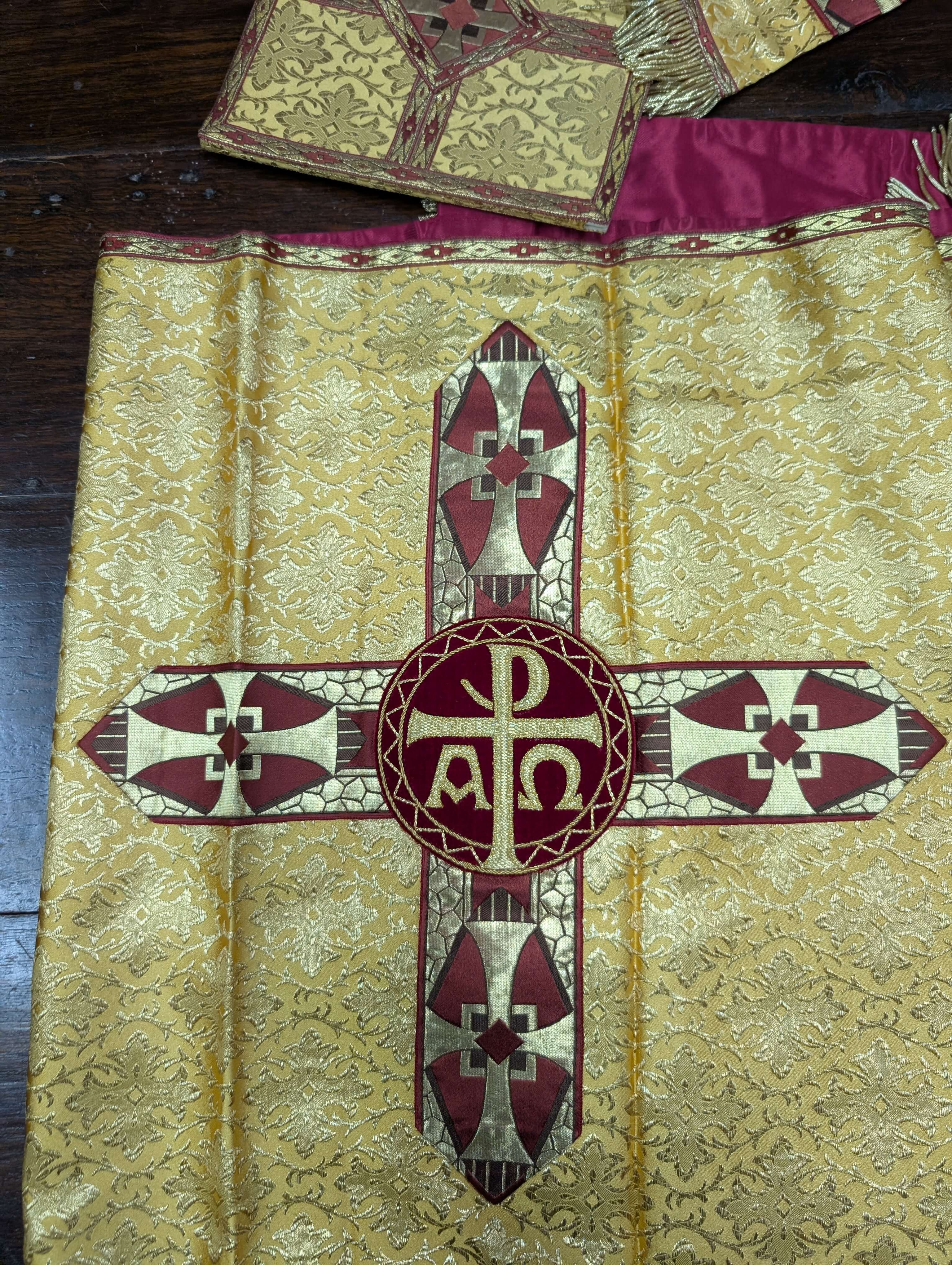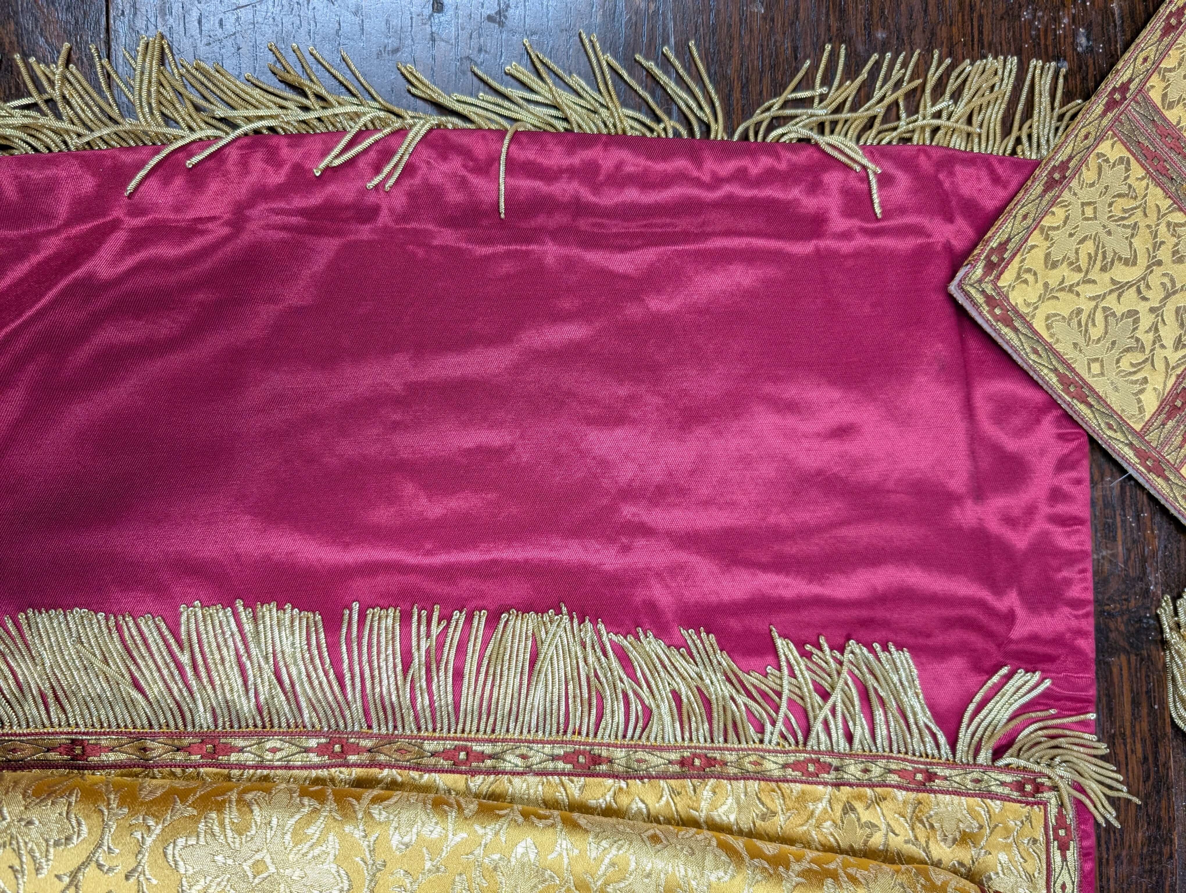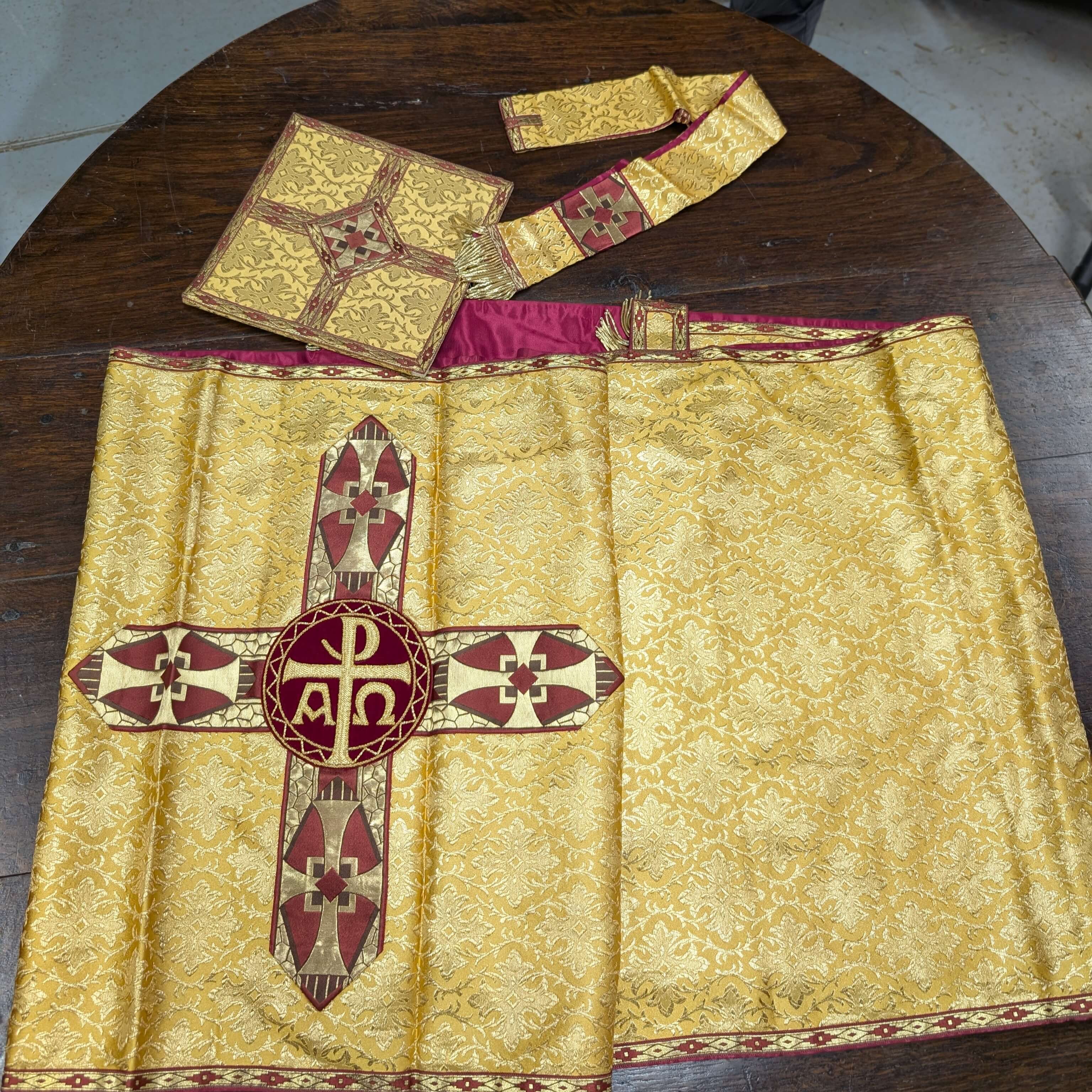 Our product shown on this page Gold and Claret Humeral Veil Priests Garment with Burse and Maniple (SOLD) is currently available for hire.