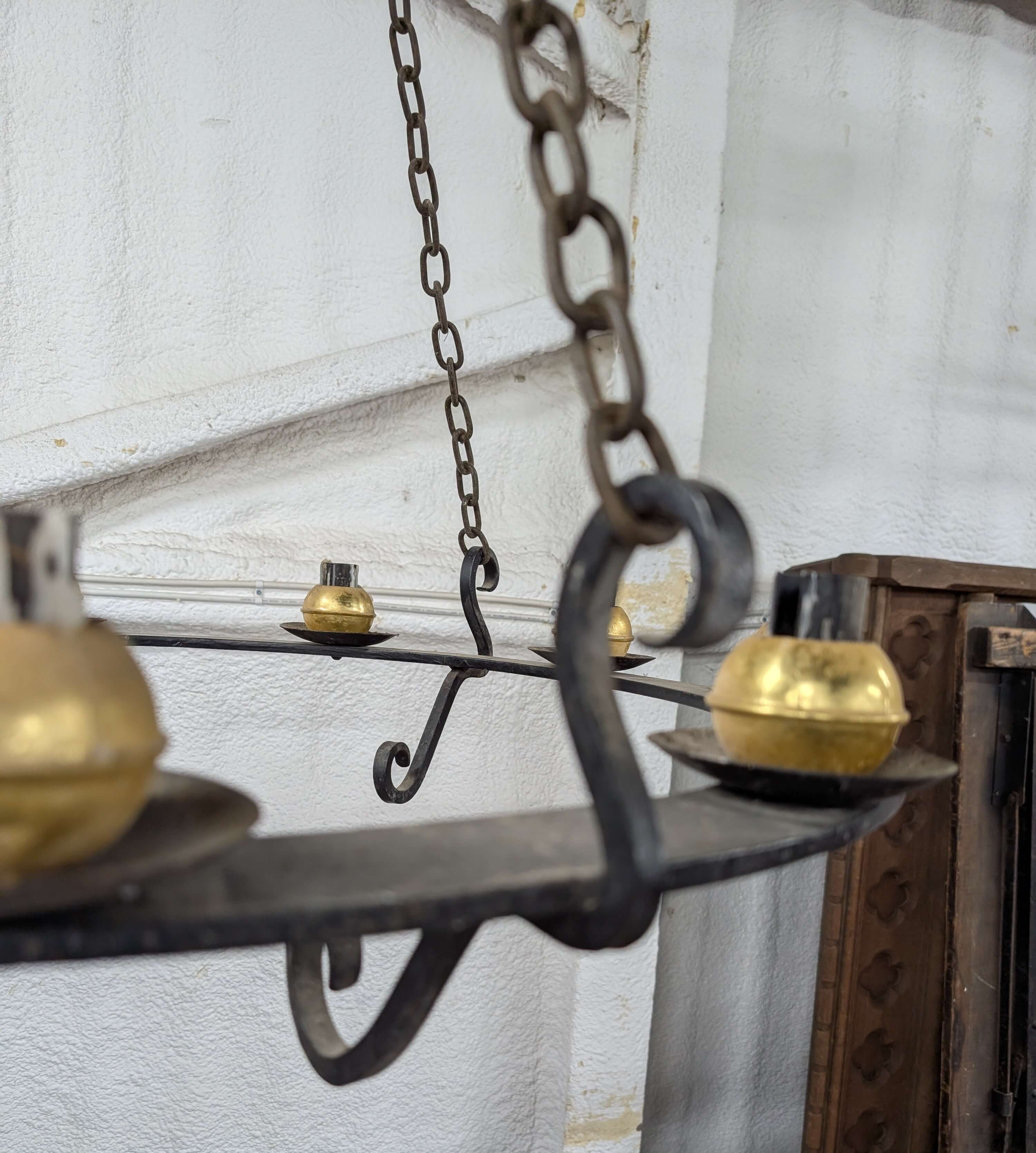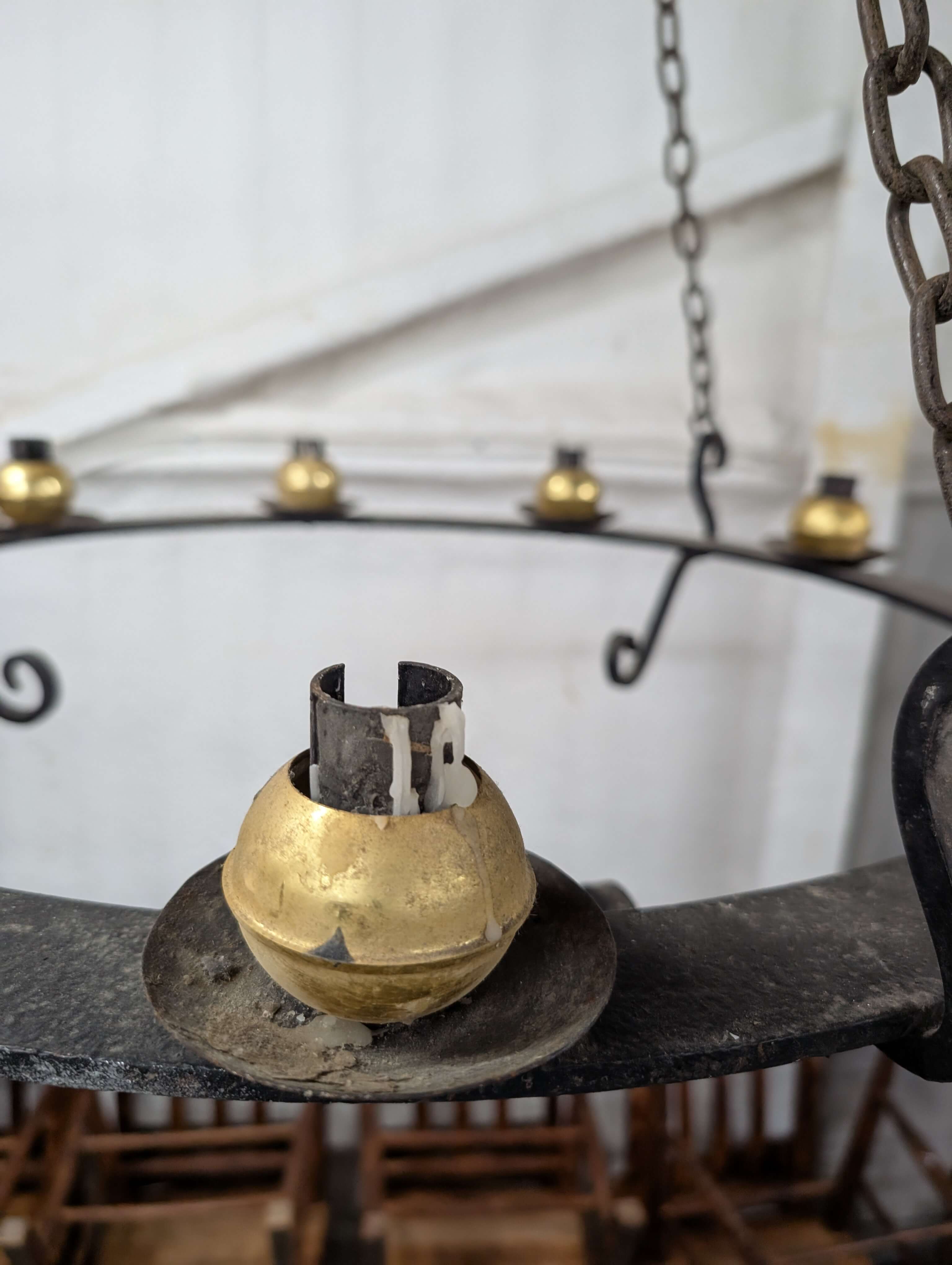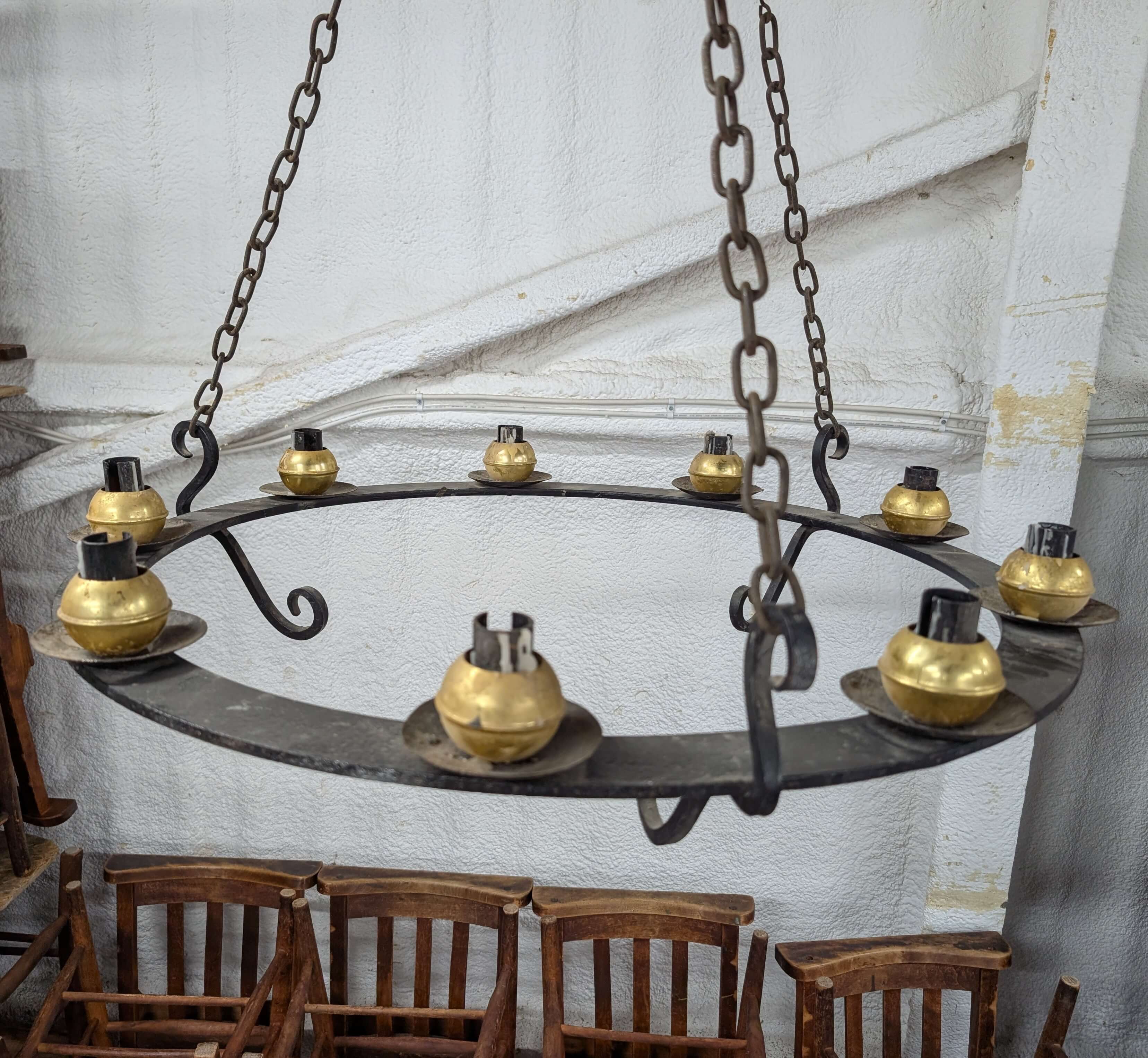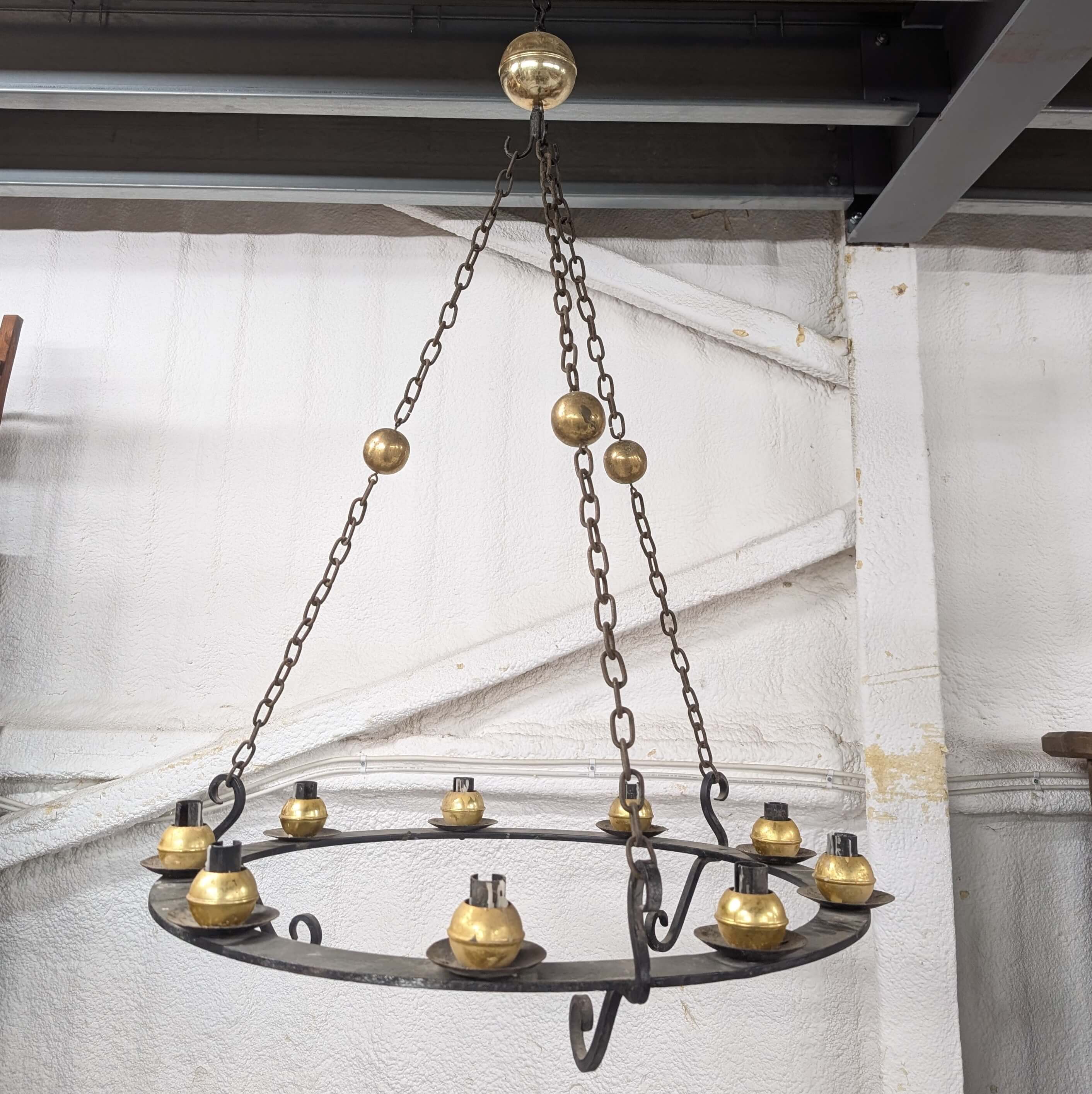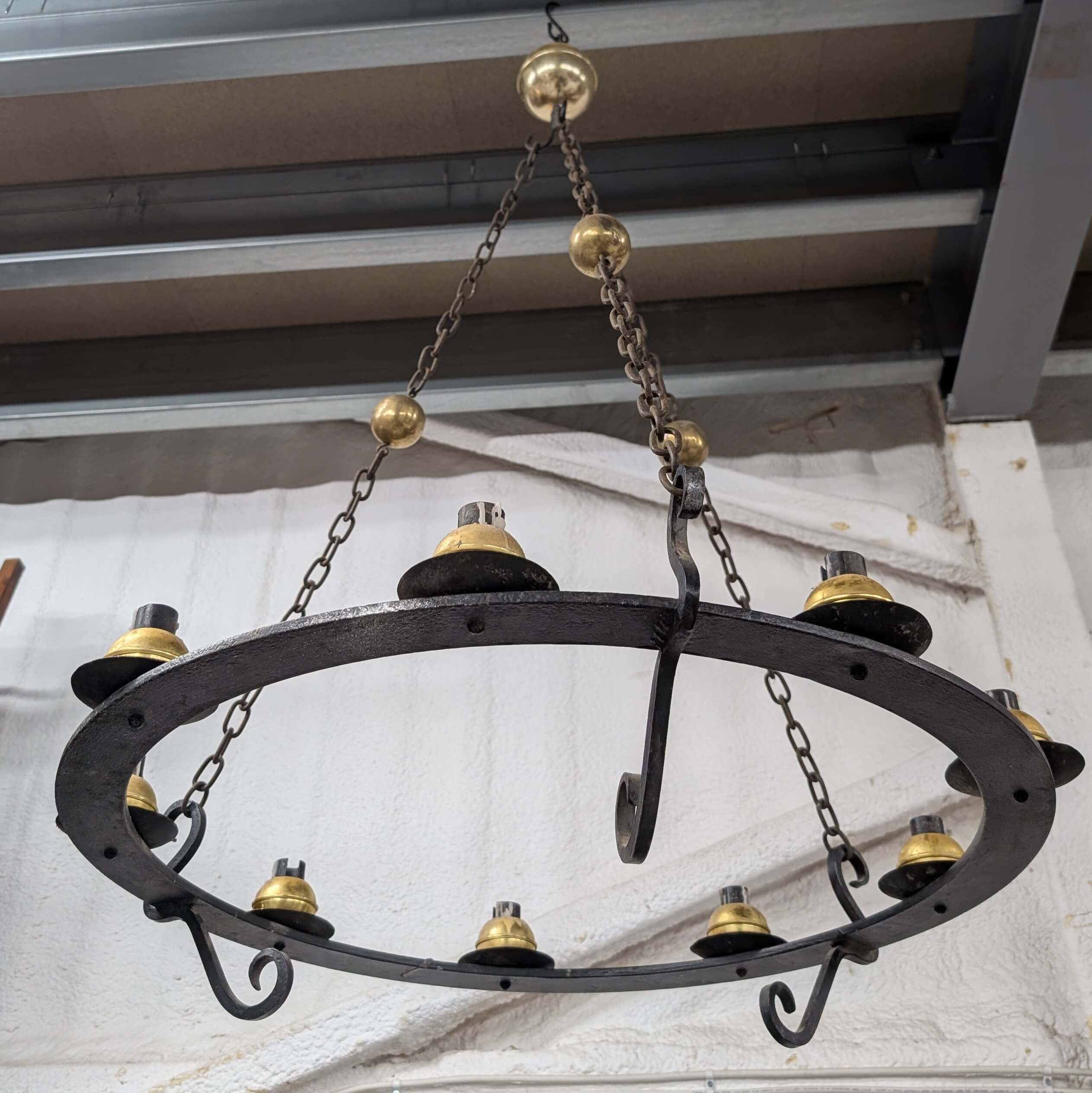 Our product shown on this page Large Cast Iron and Brass Corona Chandelier for 9 Candles is currently available for hire.