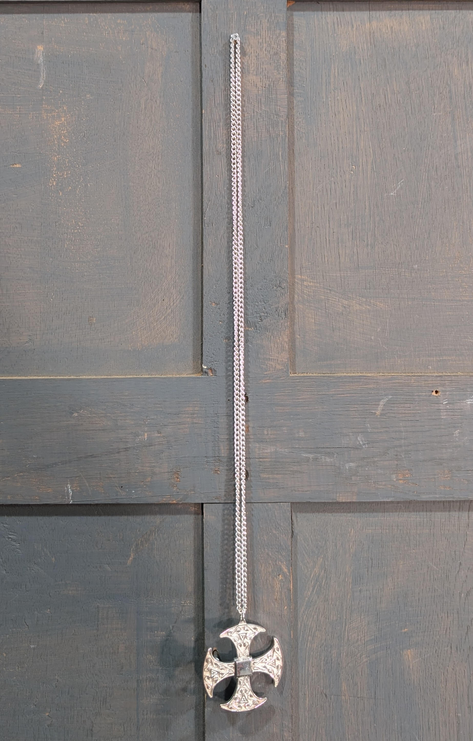 Our product shown on this page Large Celtic Silver Coloured Metal Cross on Chain is currently available for hire.