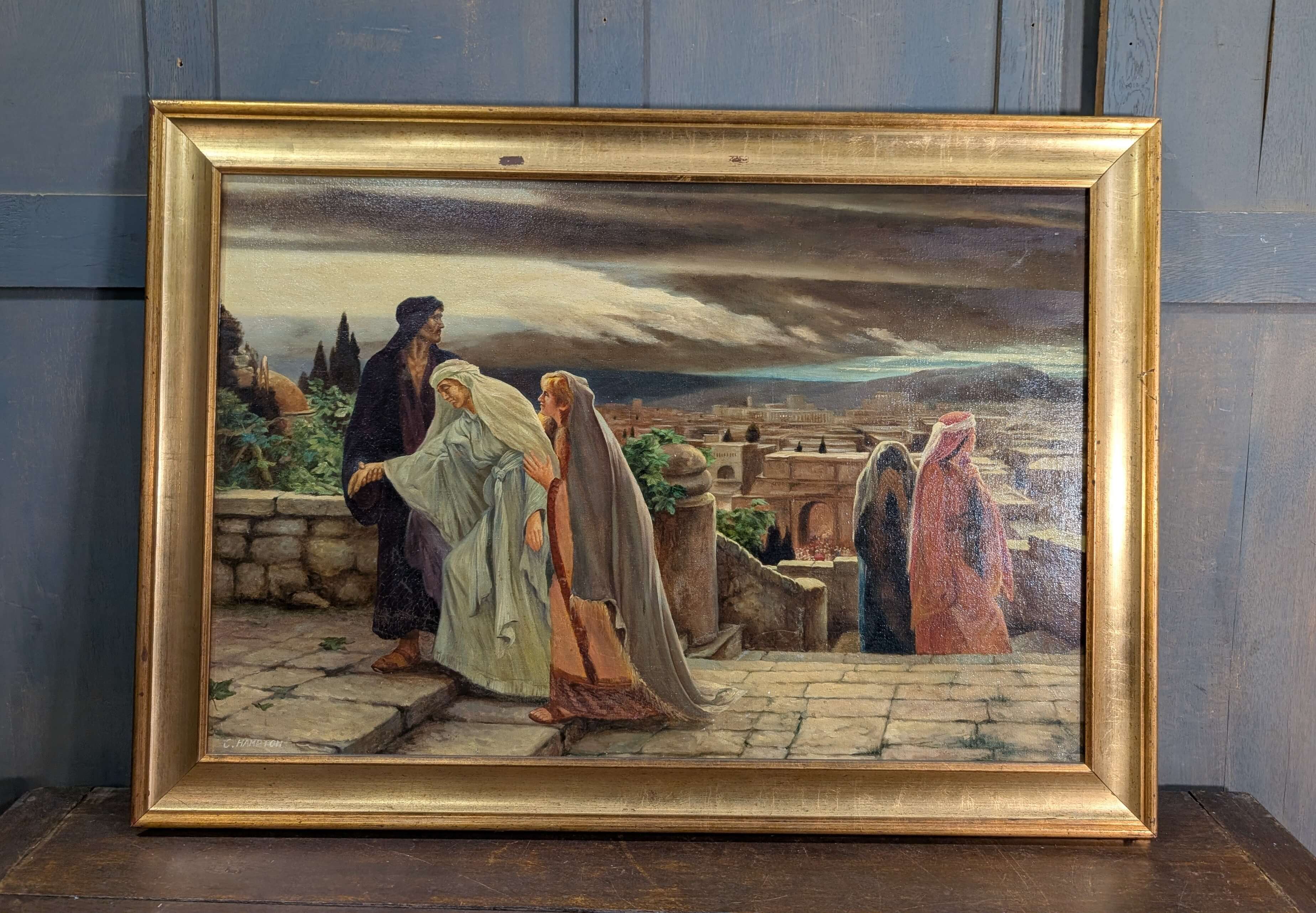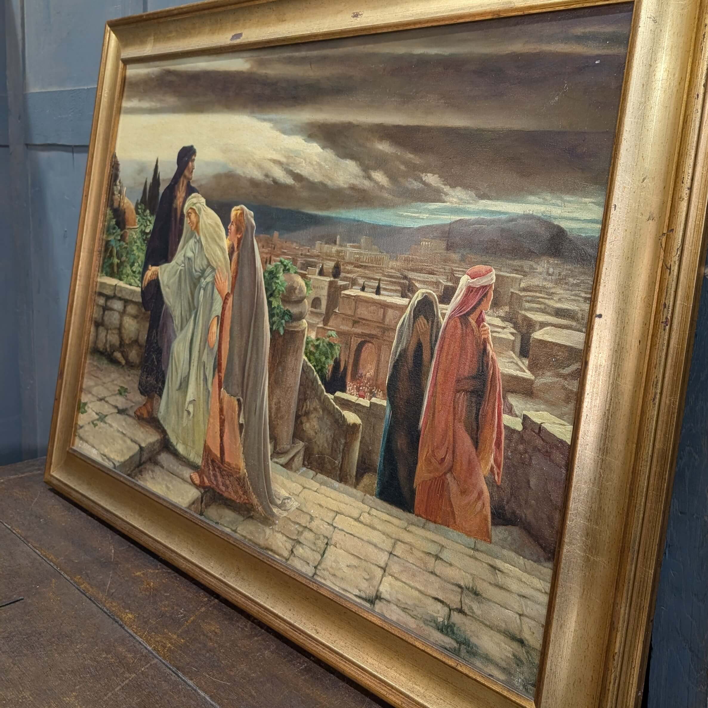 Our product shown on this page Large Hand Painted Oil Copy of Herbert Carmichael’s Return from Calvary is currently available for hire.