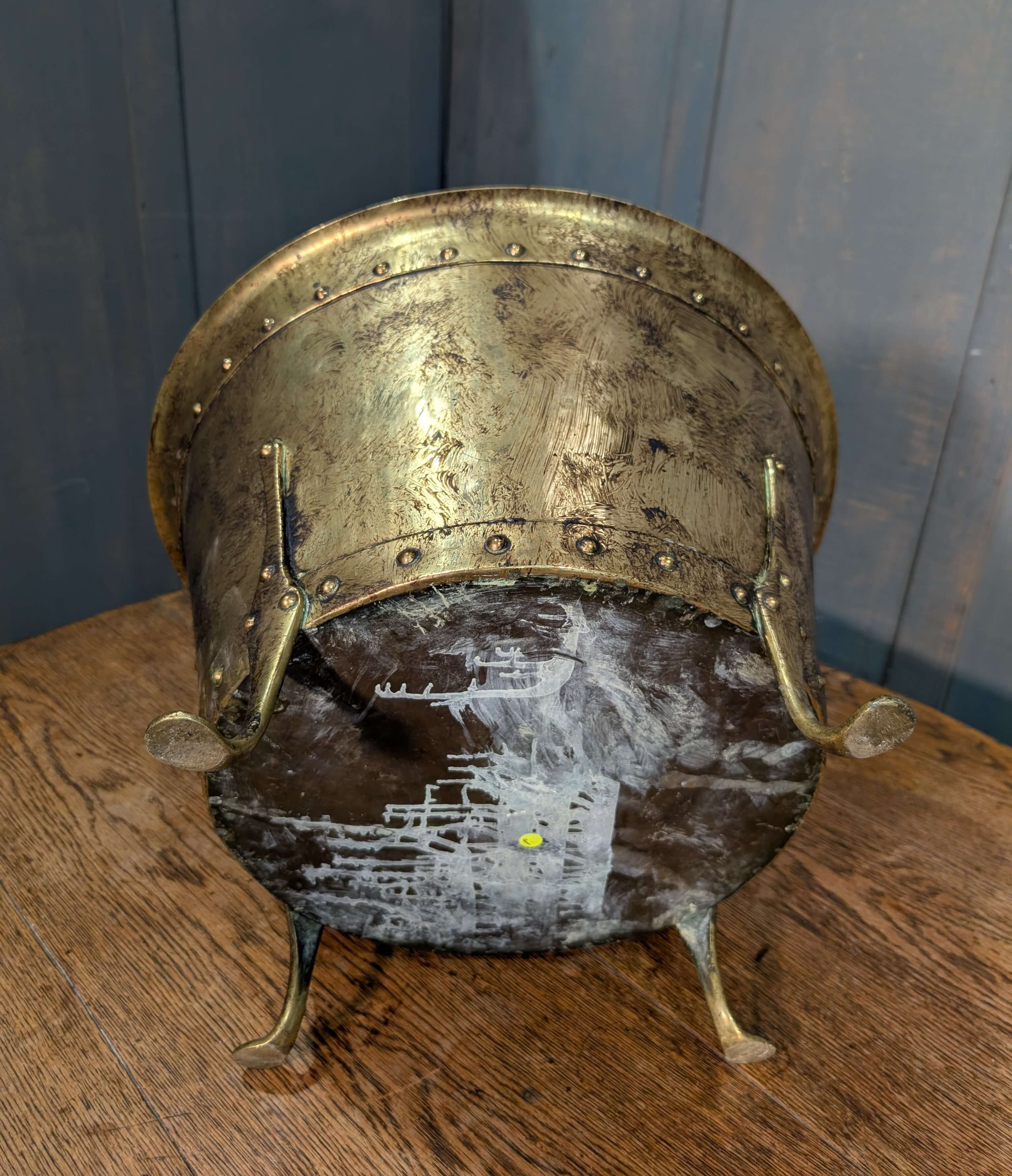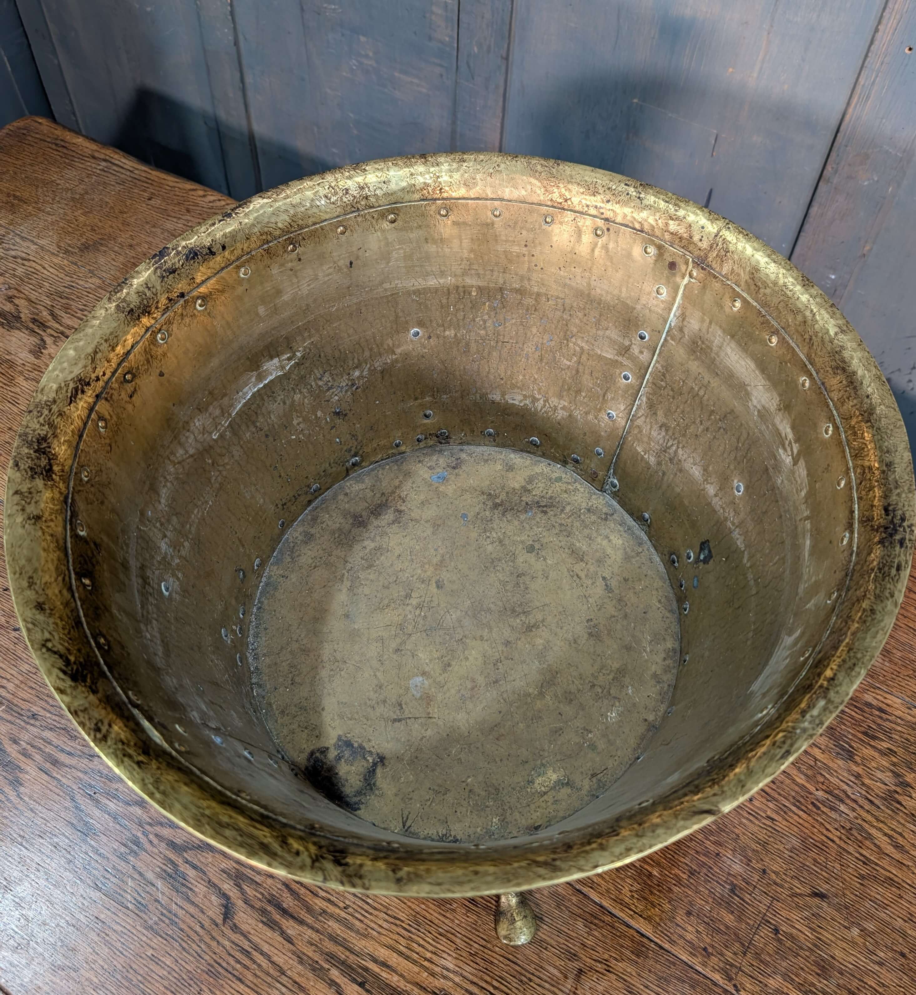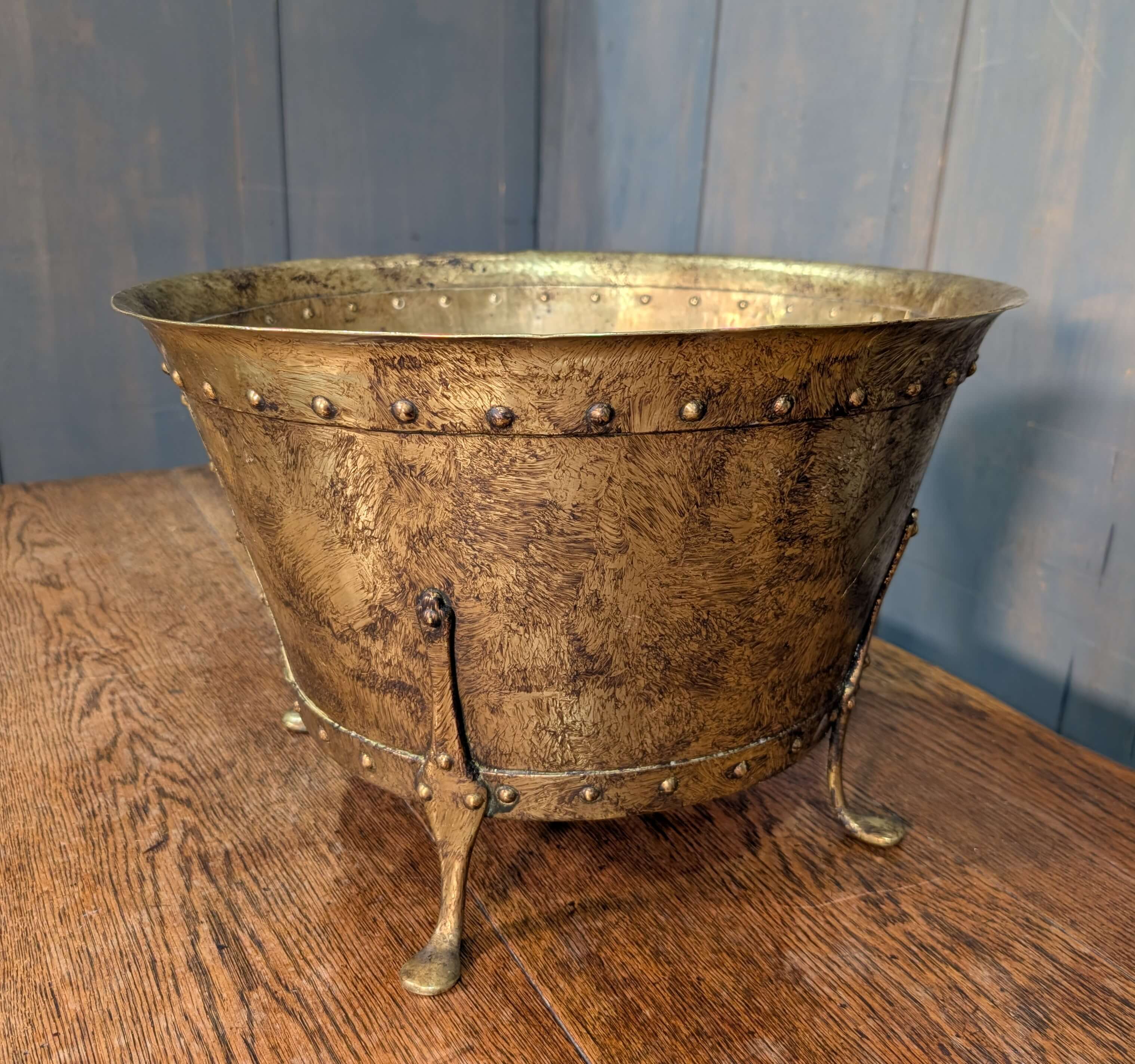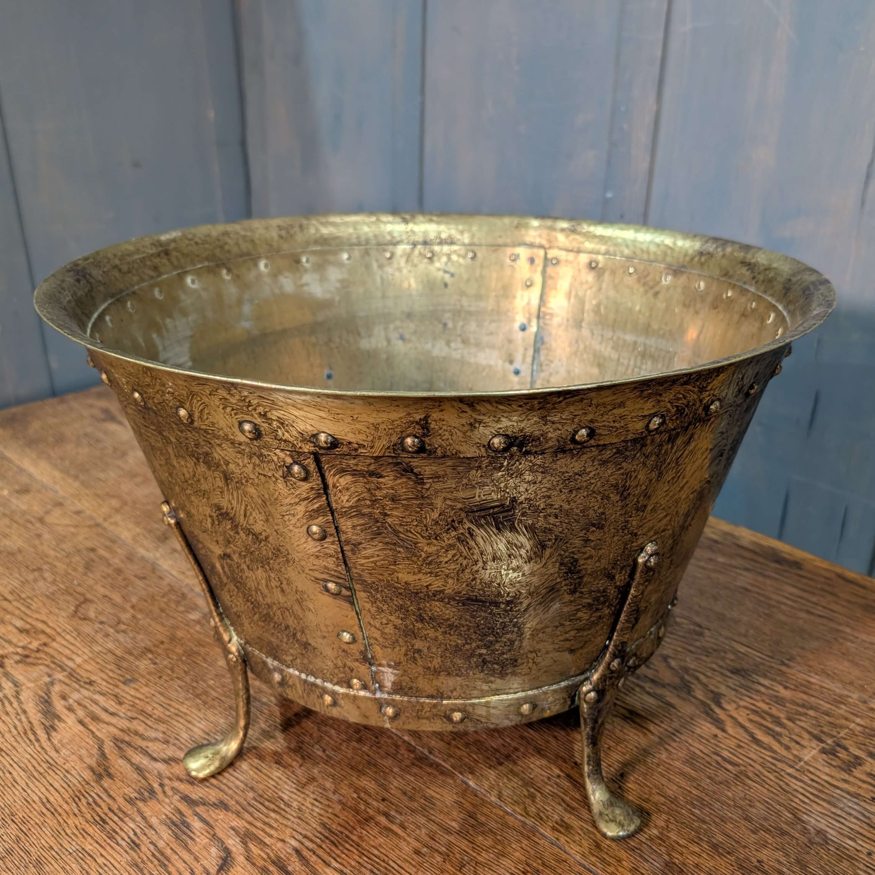 Large Riveted Brass Firewood Bin