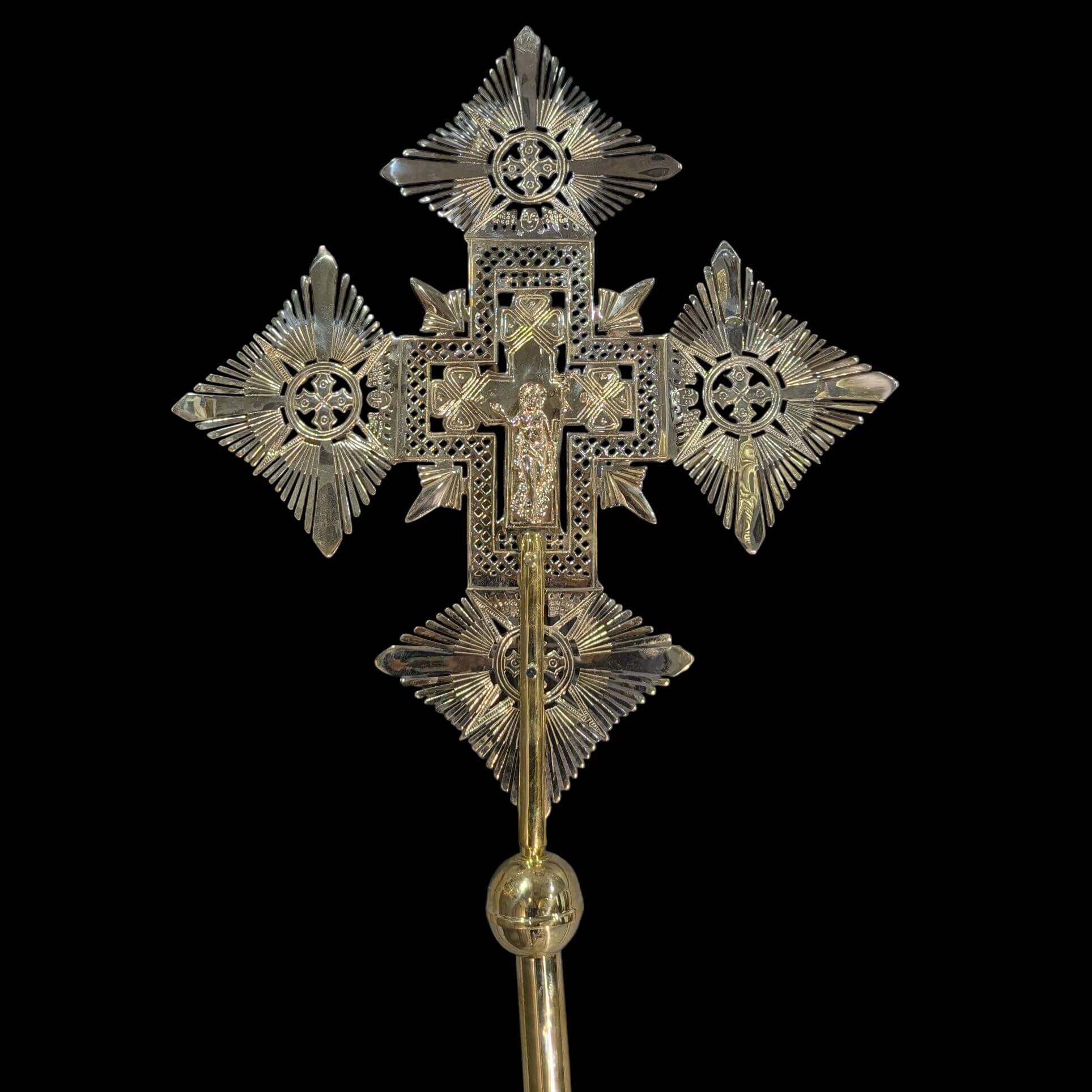 Our product shown on this page Large Striking Brass Coptic Styled Processional Cross is currently available for hire.