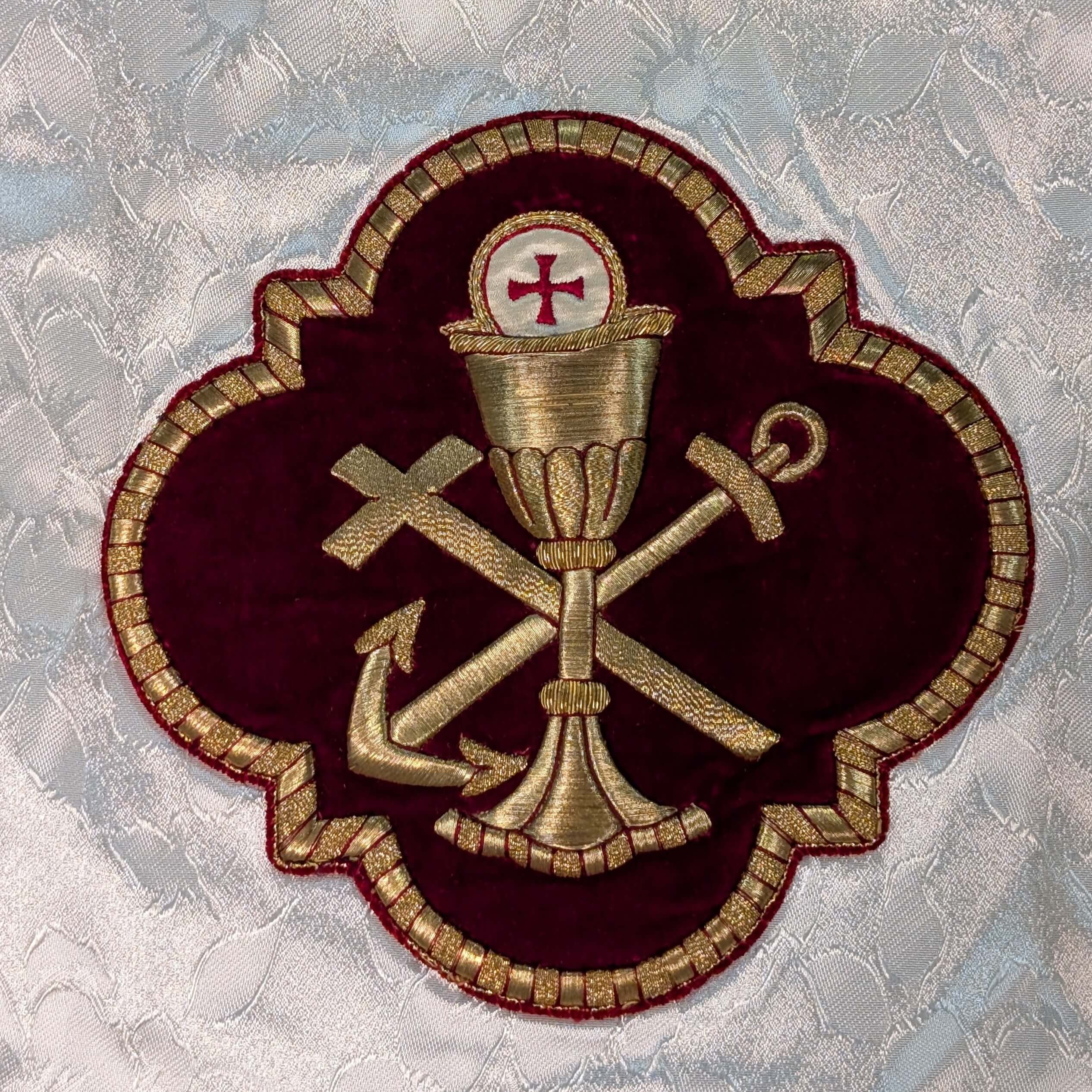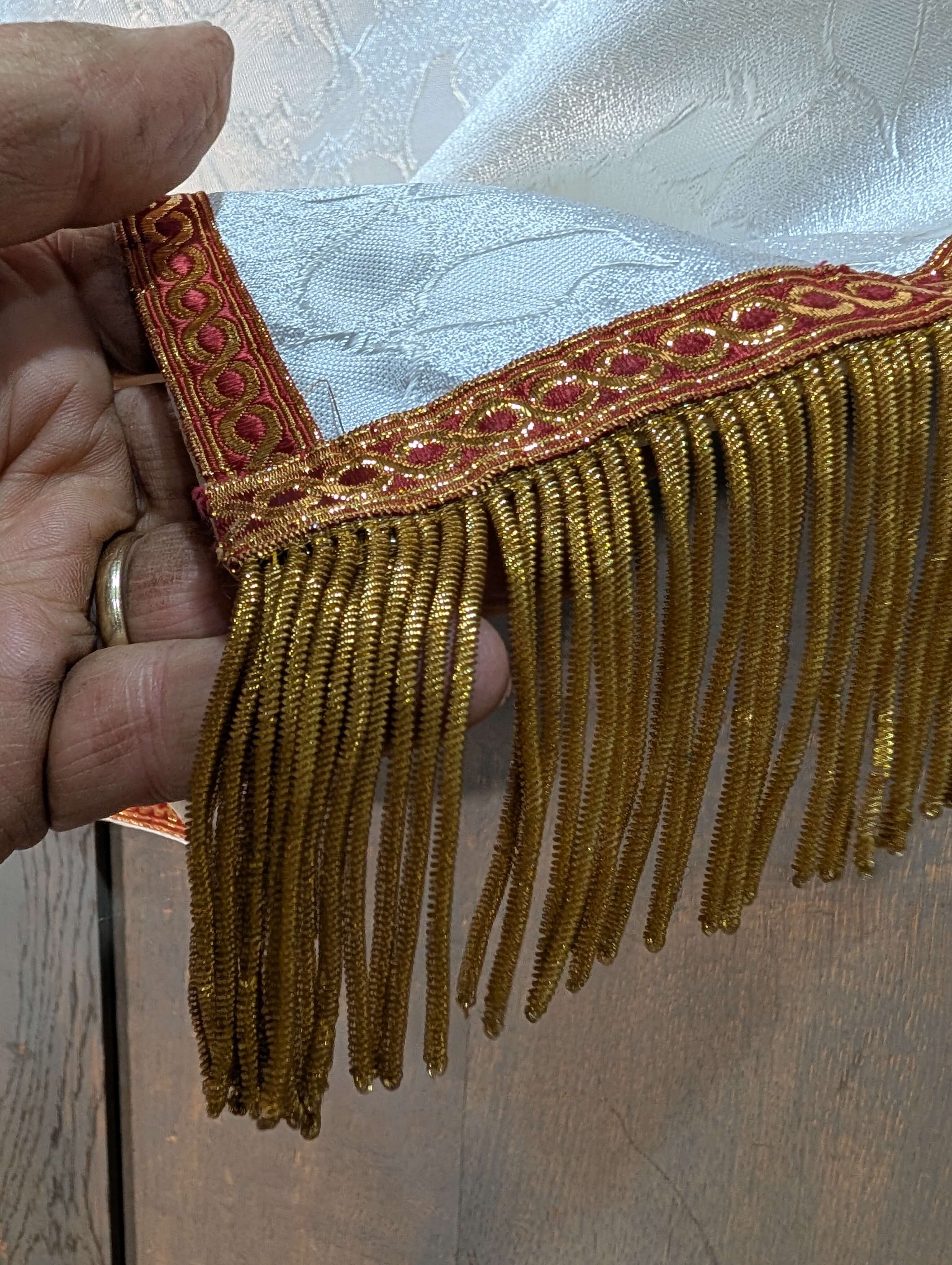 Long Diamond White Humeral Veil Priests Garment with Bullion Embroidered Shield