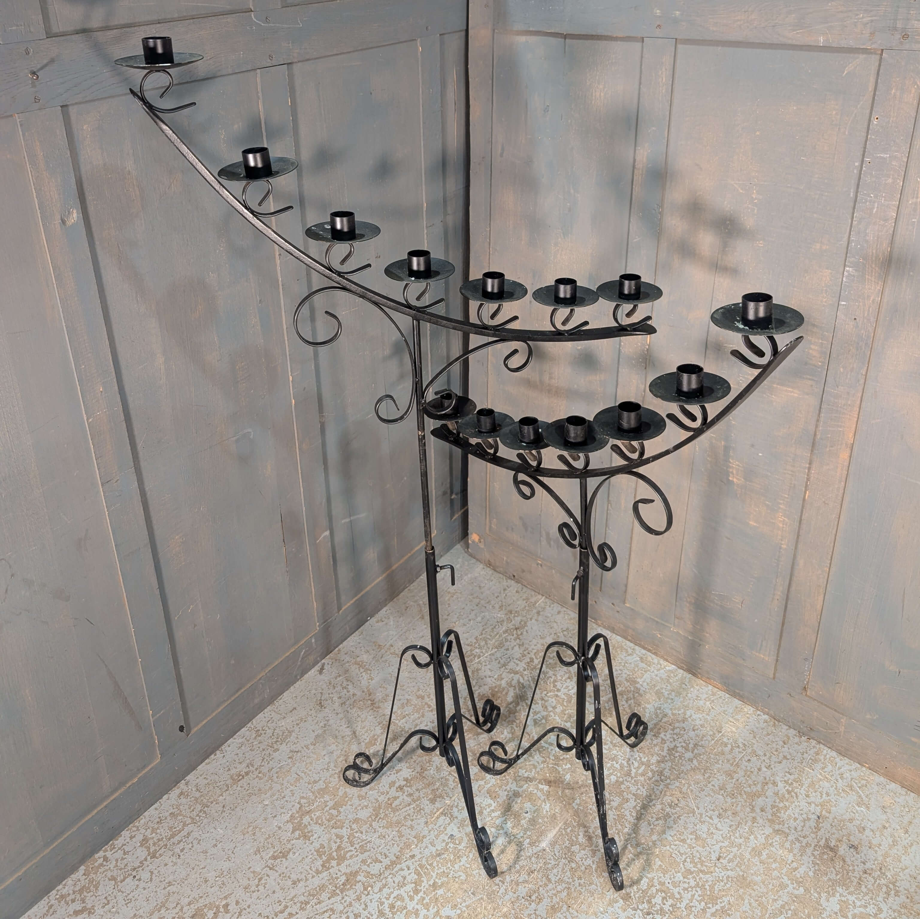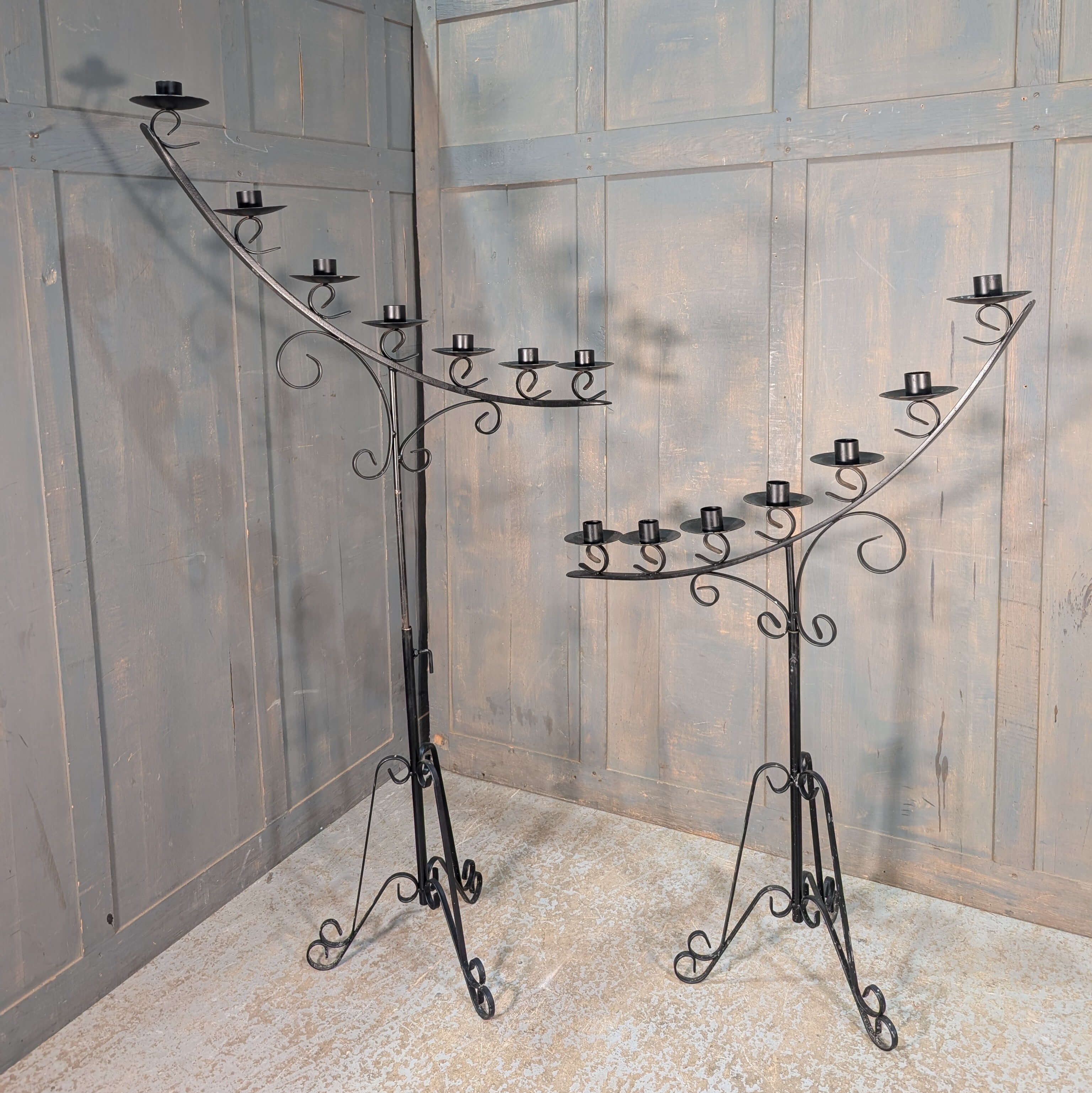 Please Note: For large items including this Pair of Black Wrought Steel Large Adjustable Seven Branch Benediction Candelabra delivery can take between 1 – 3 weeks for most parts of mainland UK.