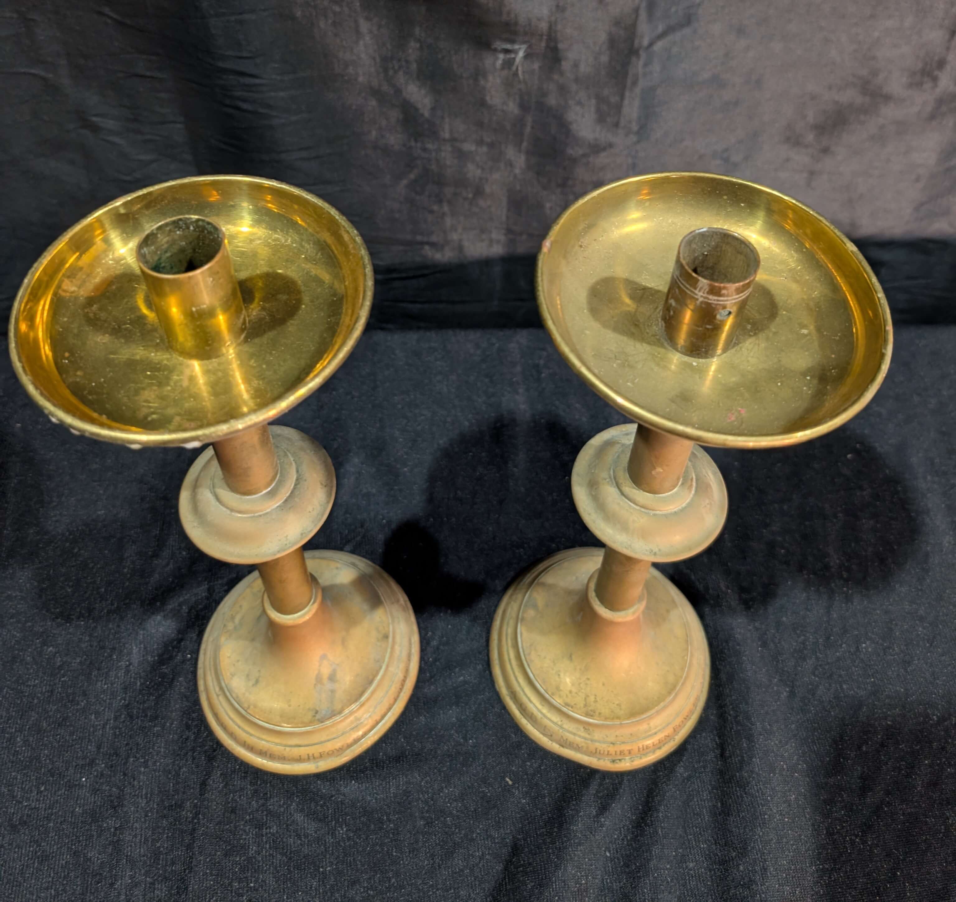 Our product shown on this page Pair of Simple Antique Altar Candlesticks From Christ Church Crookham – Attic Find is currently available for hire.