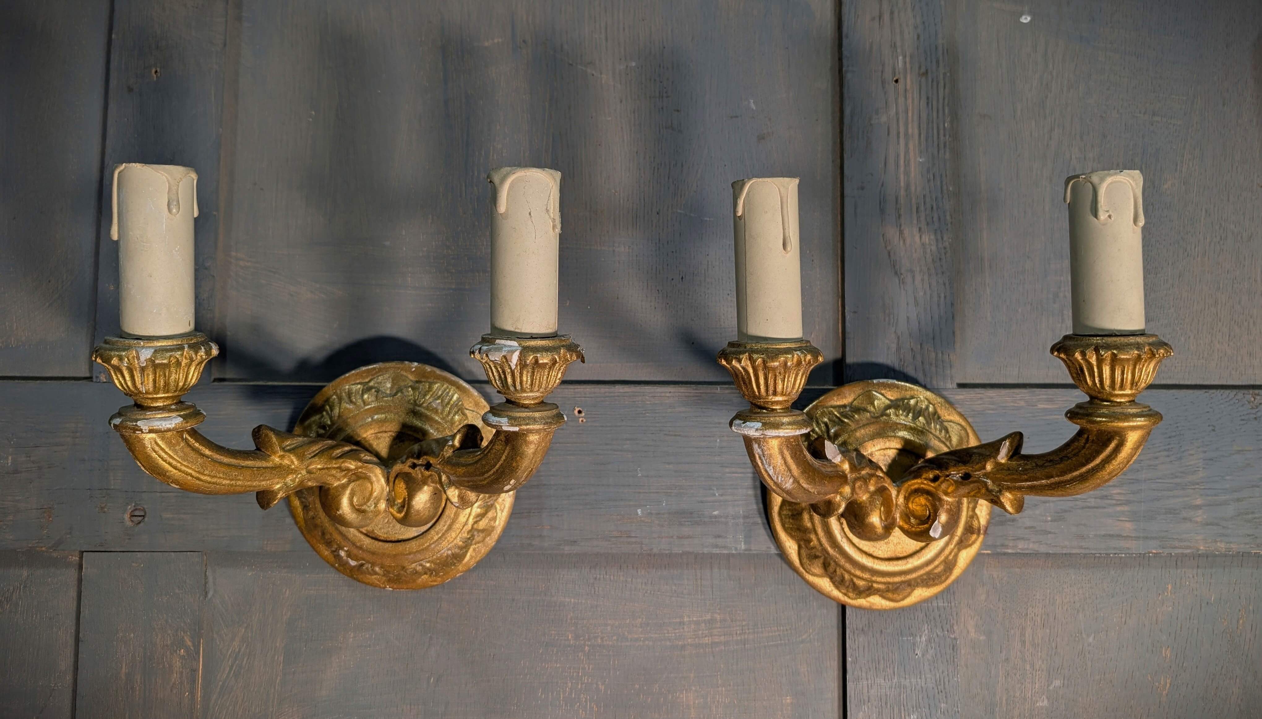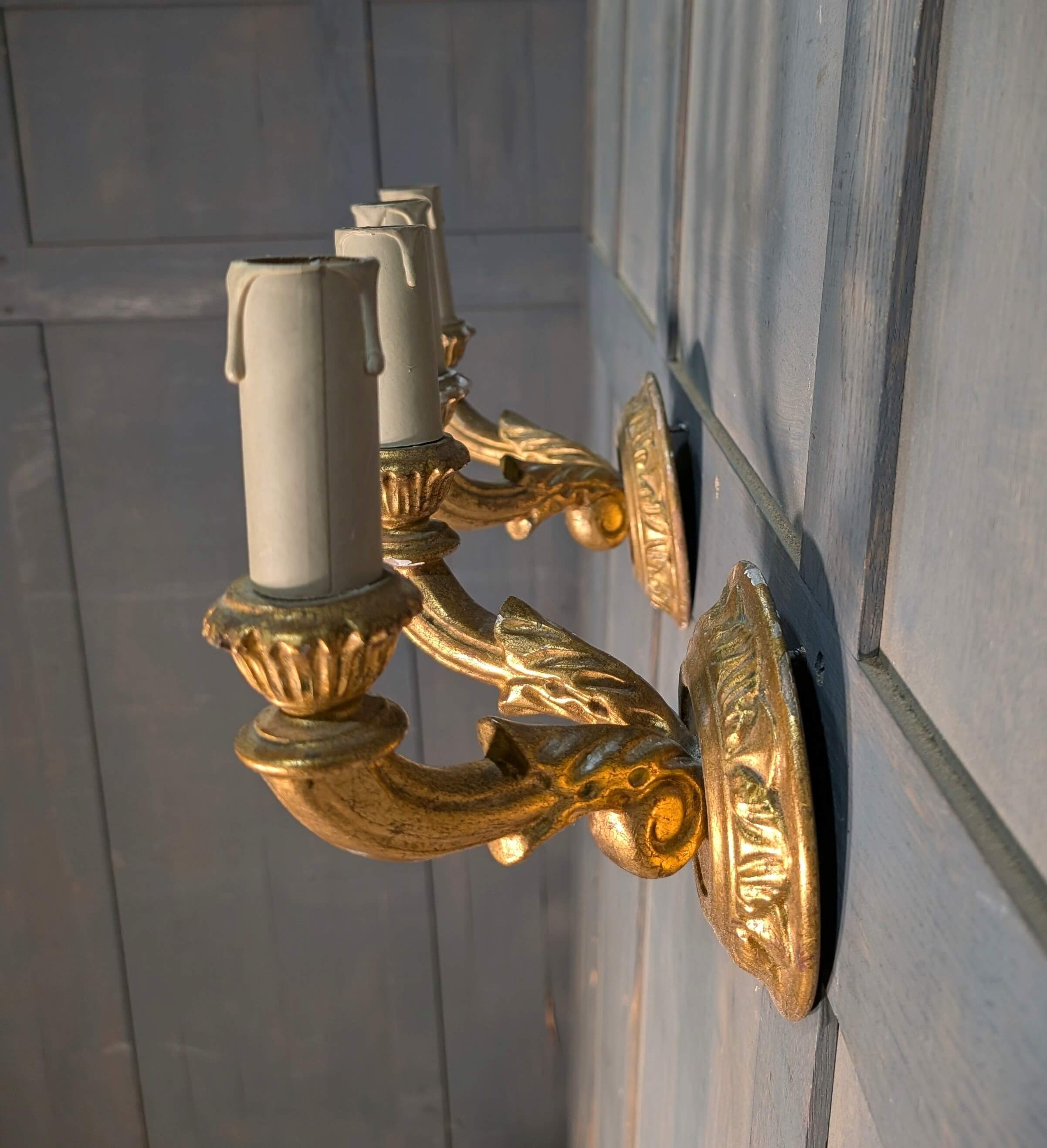 Our product shown on this page Pair Small Vintage Gold Leaf Carved Oak Wall Lights Gilt Sconces is currently available for hire.