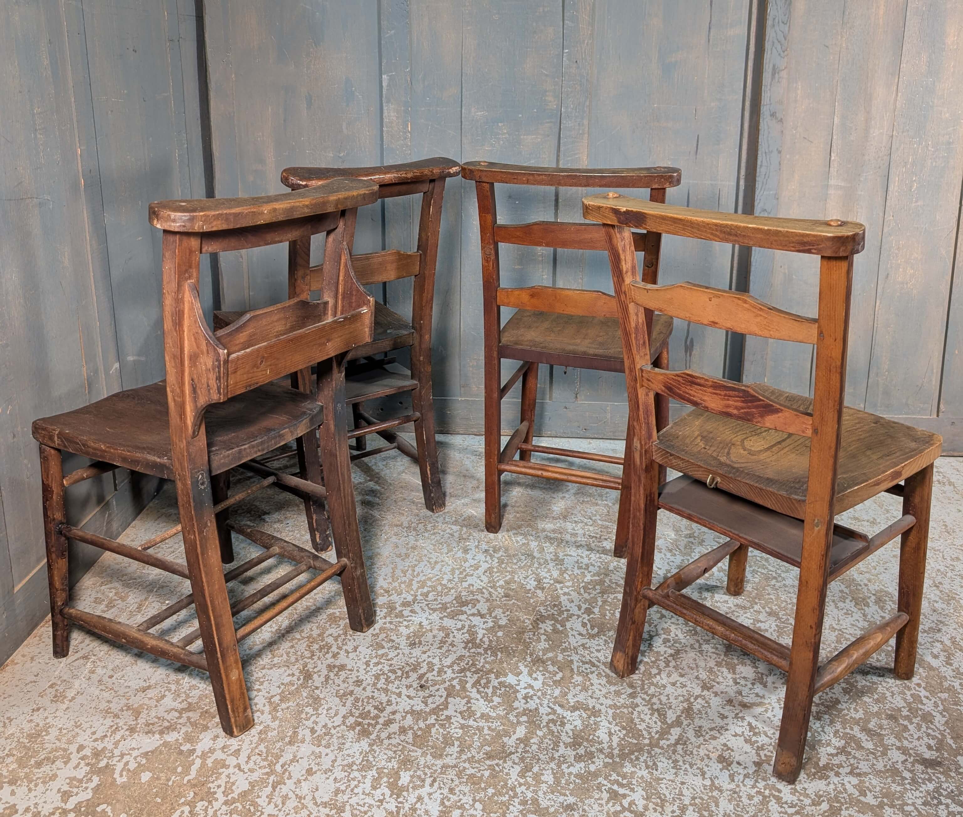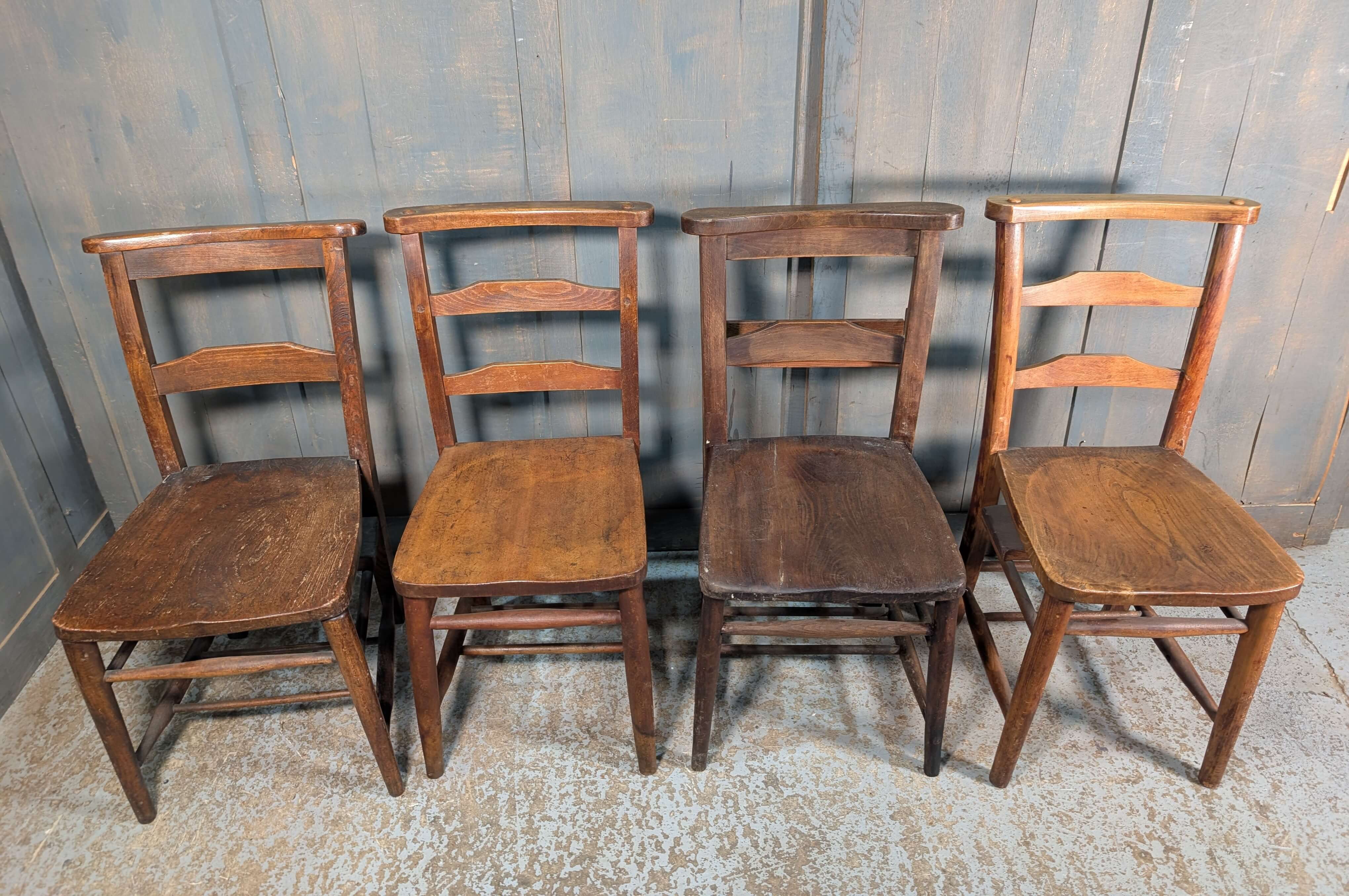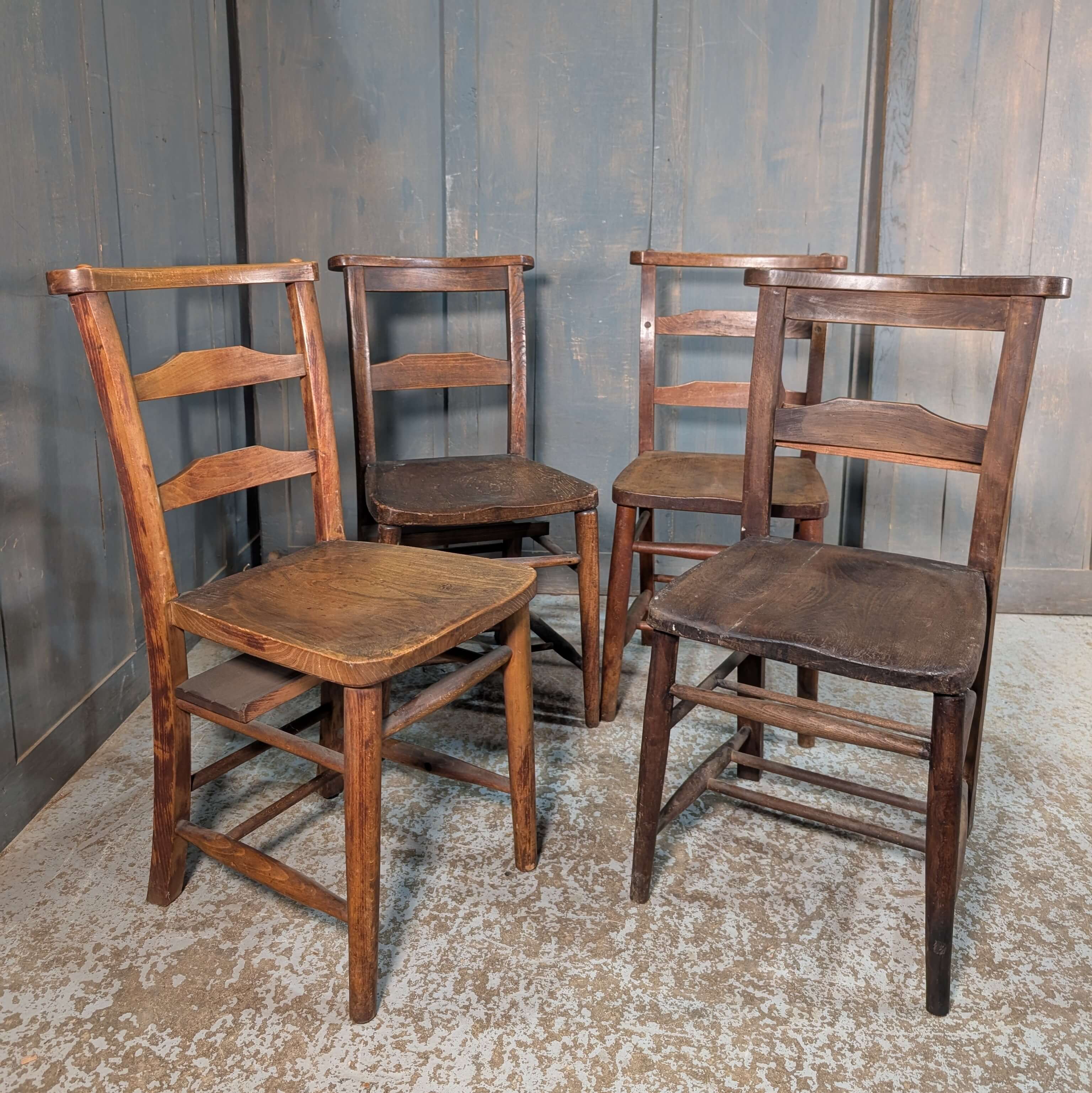 Our product shown on this page Pleasantly Umber Harlequin Set of 4 Antique Ladderback Chapel Chairs is currently available for hire.