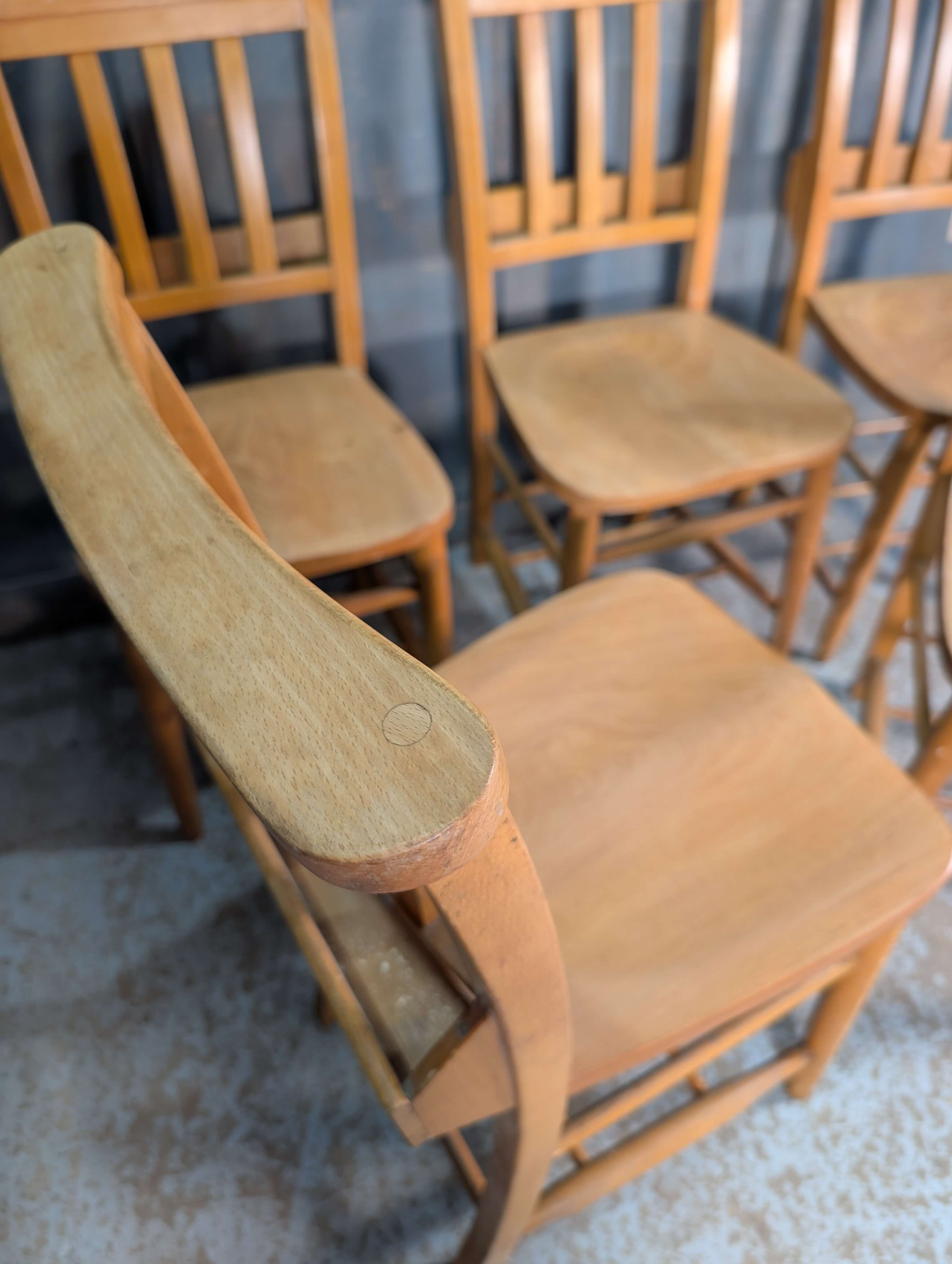 Our product shown on this page Portslade 1960’s Vintage Elm & Beech Church Chapel Chairs ‘Blameless’ is currently available for hire.
