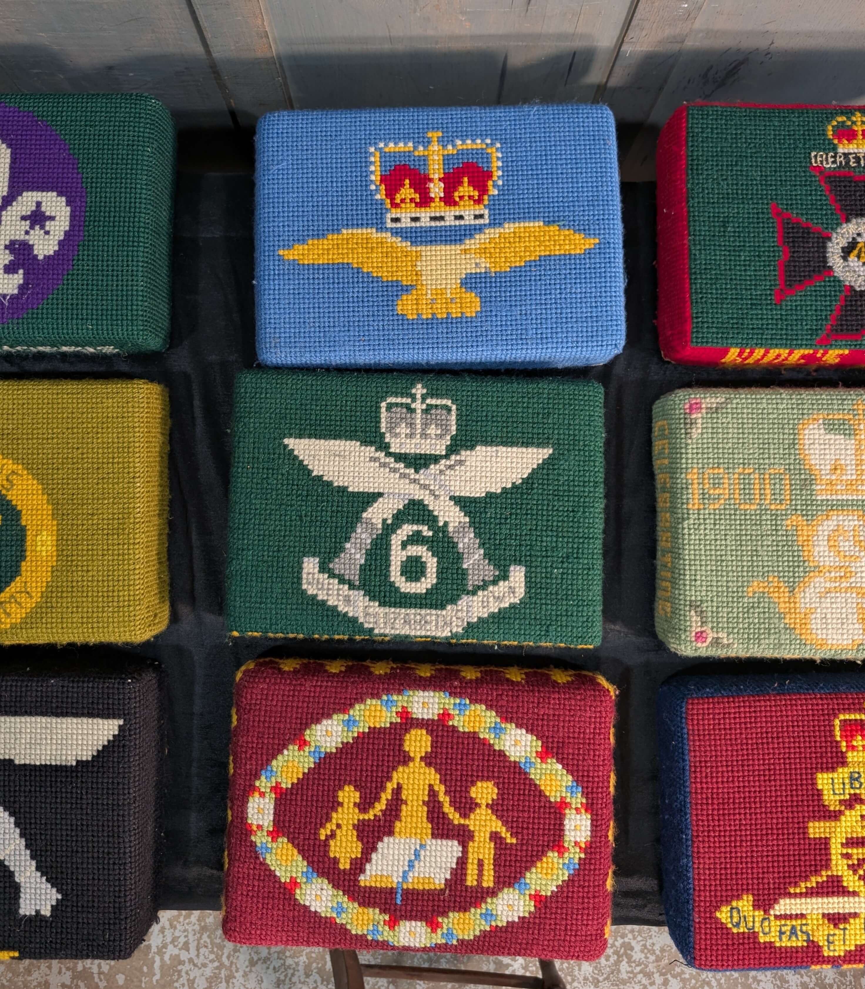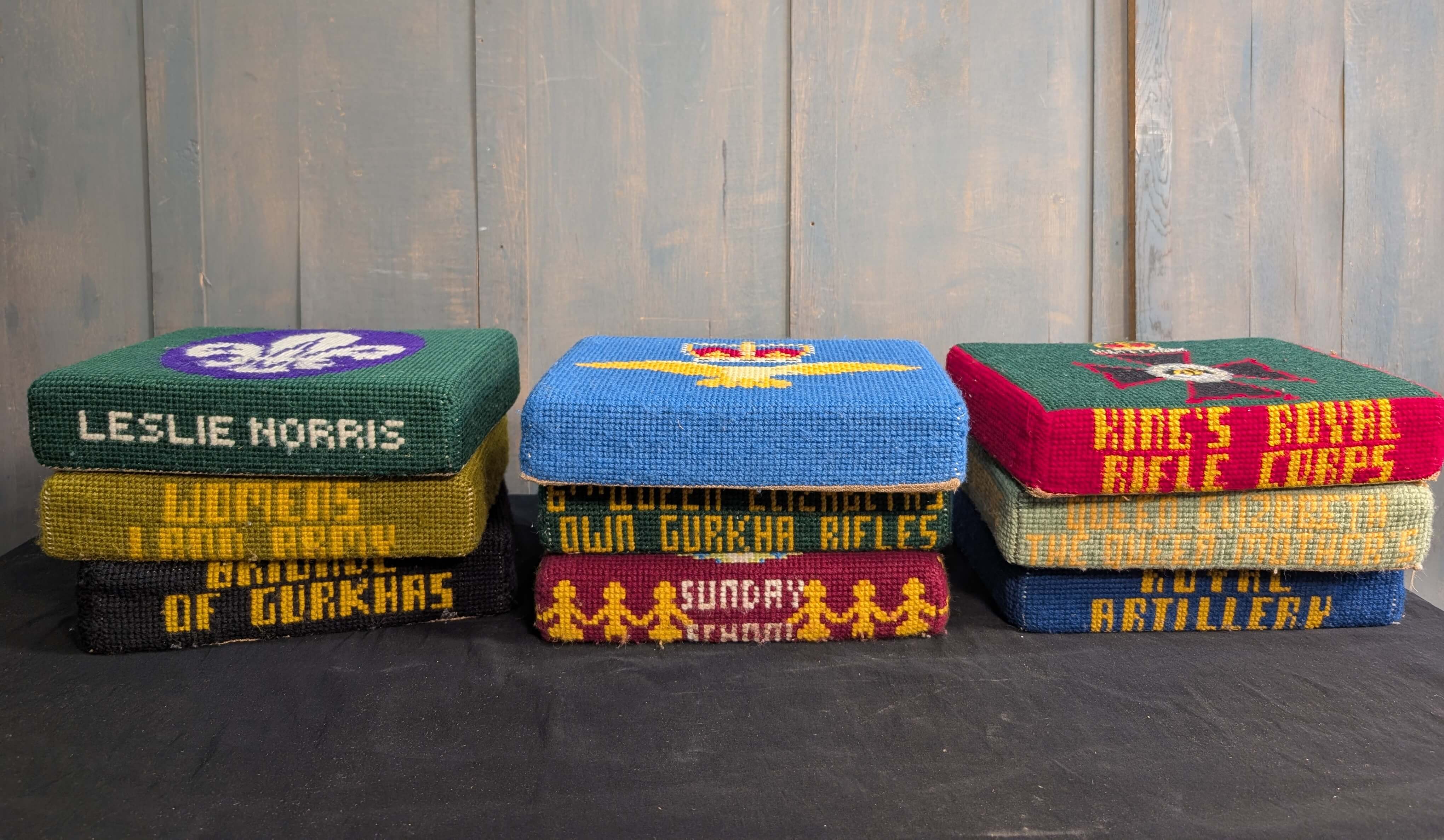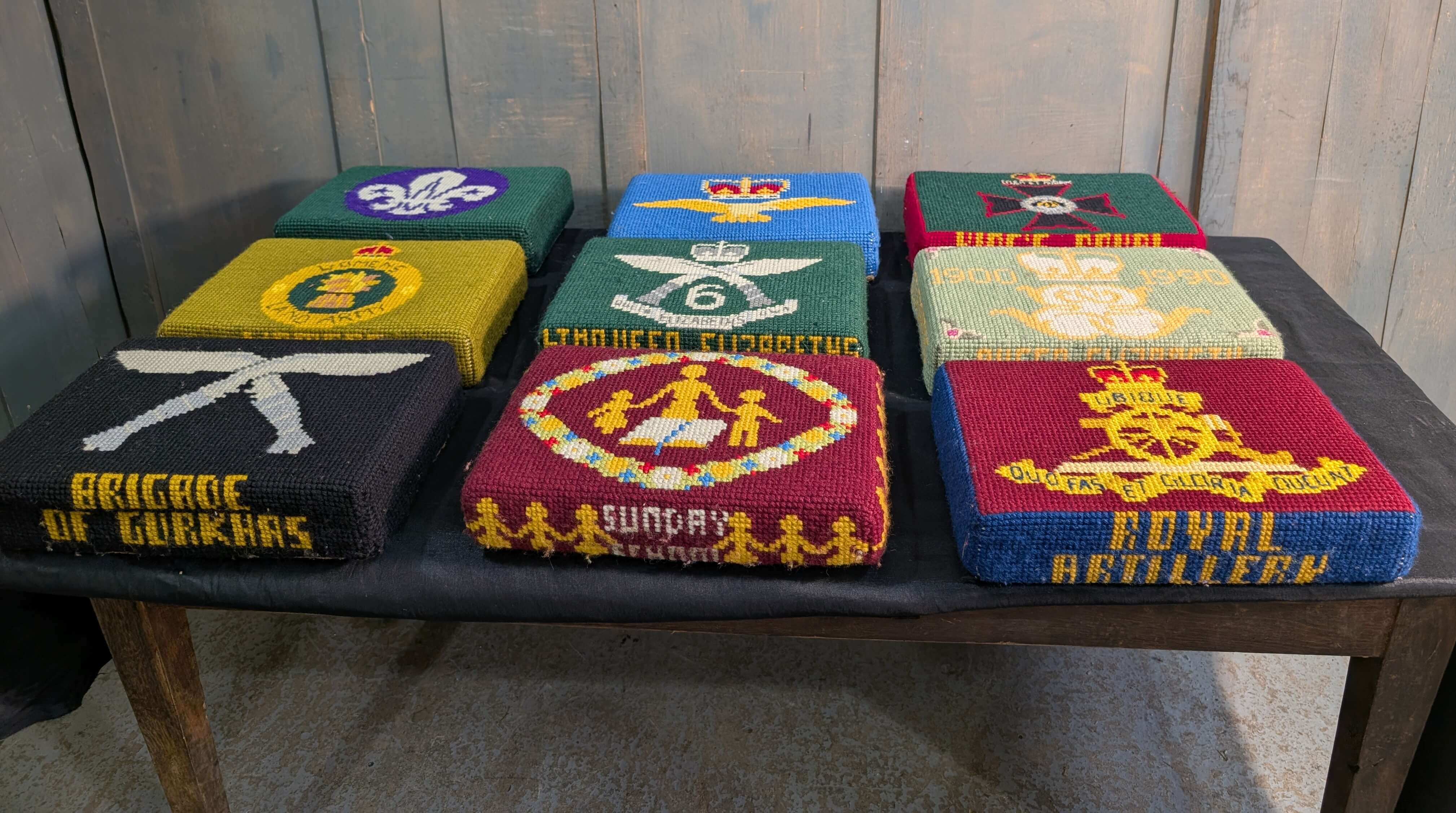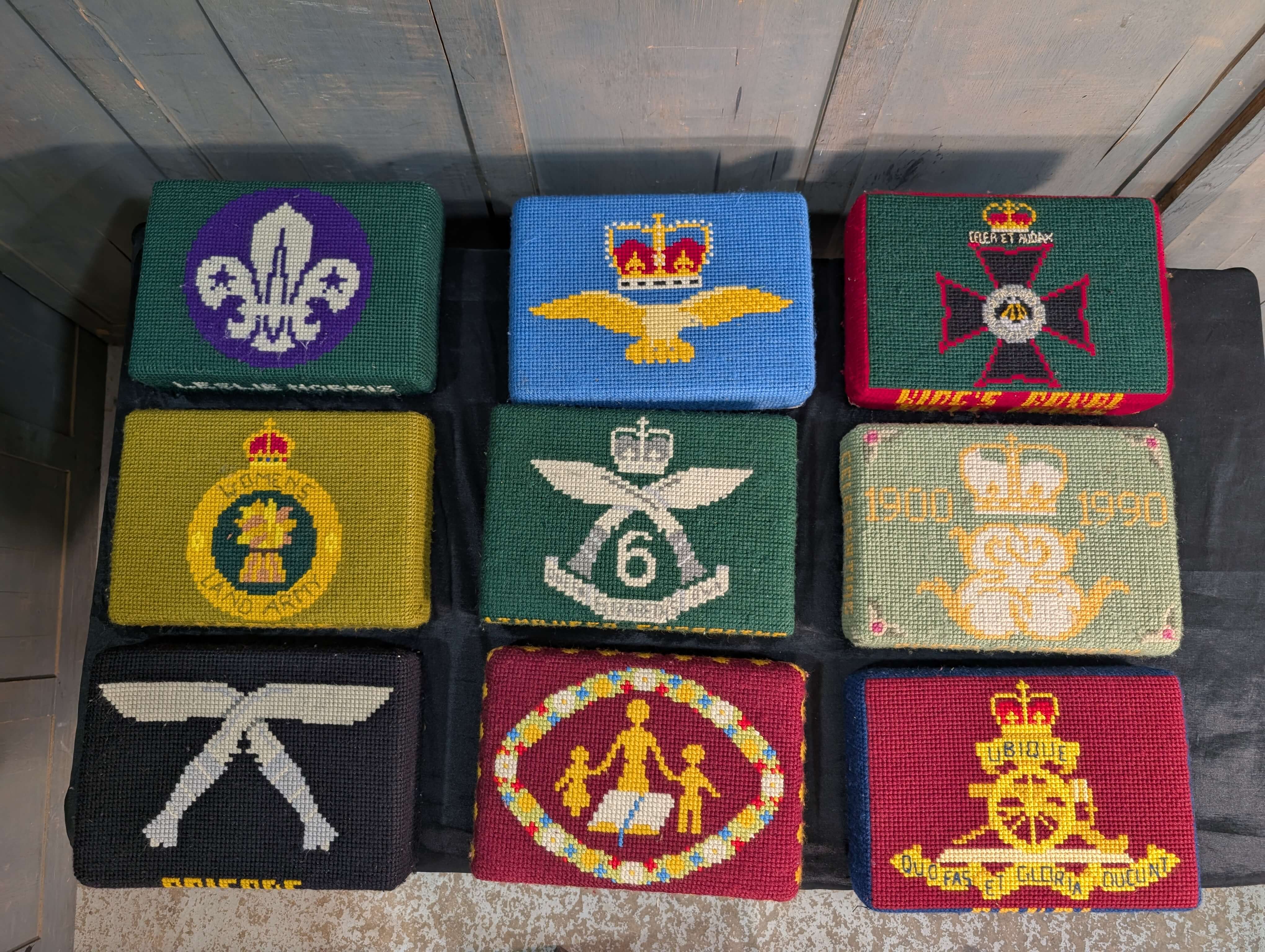 Our product shown on this page Set of Nine Military & Institution Themed Hand Embroidered Kneelers Hassocks Cushions #3 is currently available for hire.