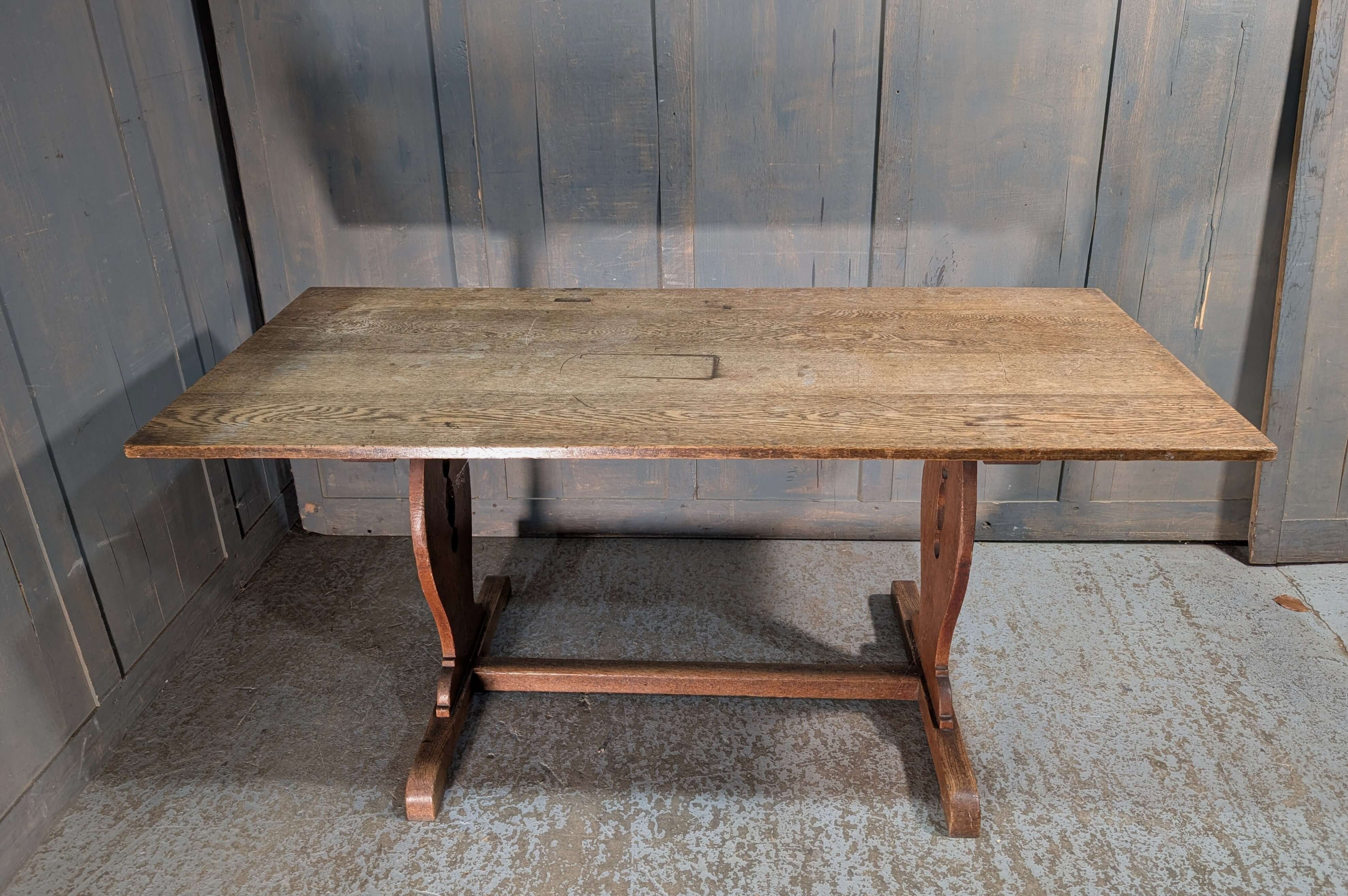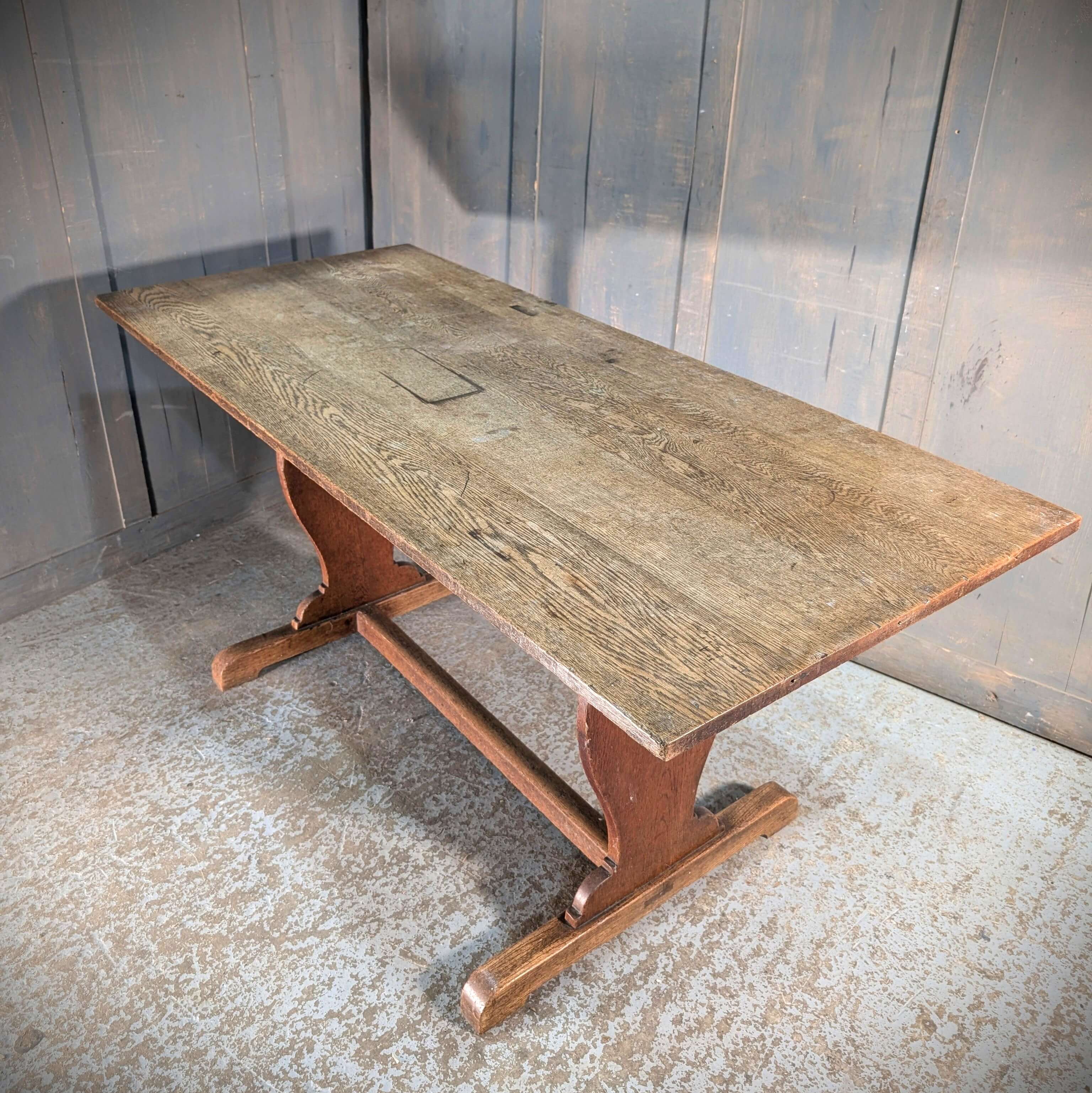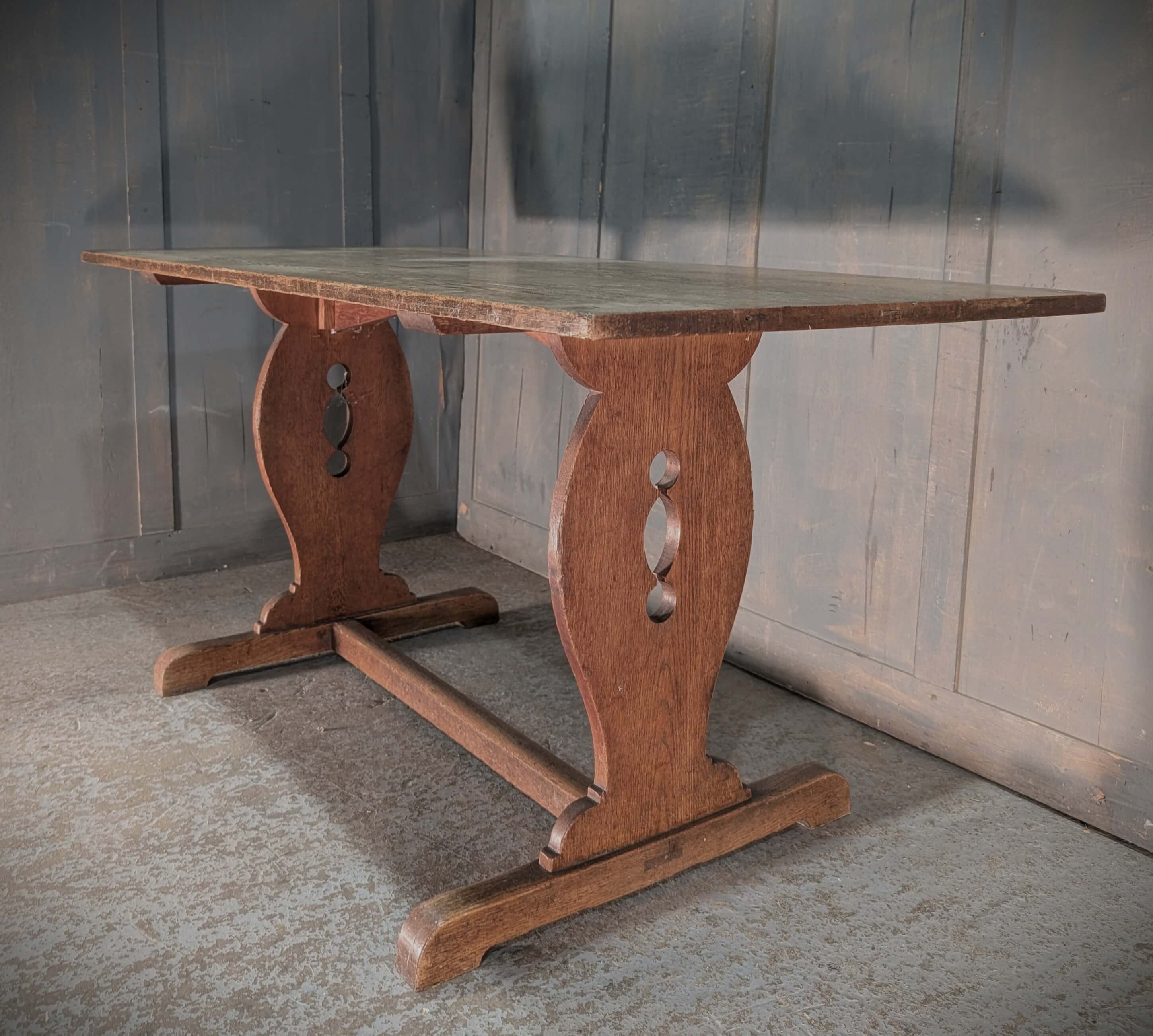 Our product shown on this page Simple 1930’s Vintage Oak Lyre Ended Dining Table is currently available for hire.
