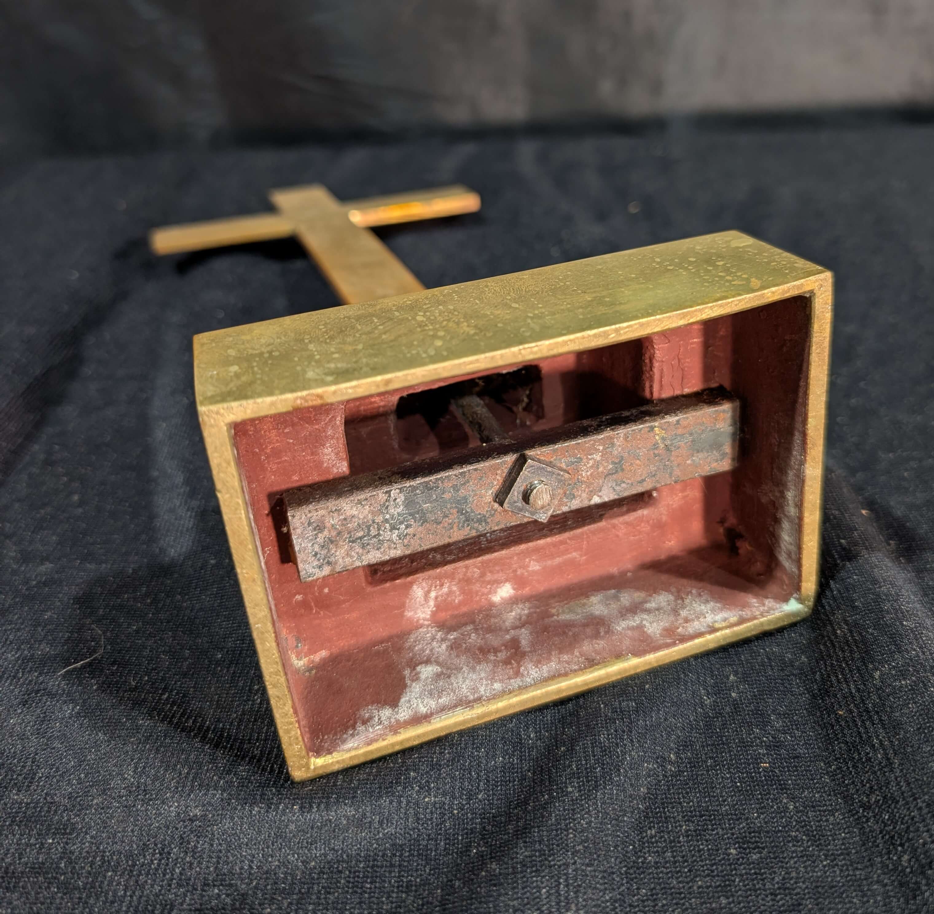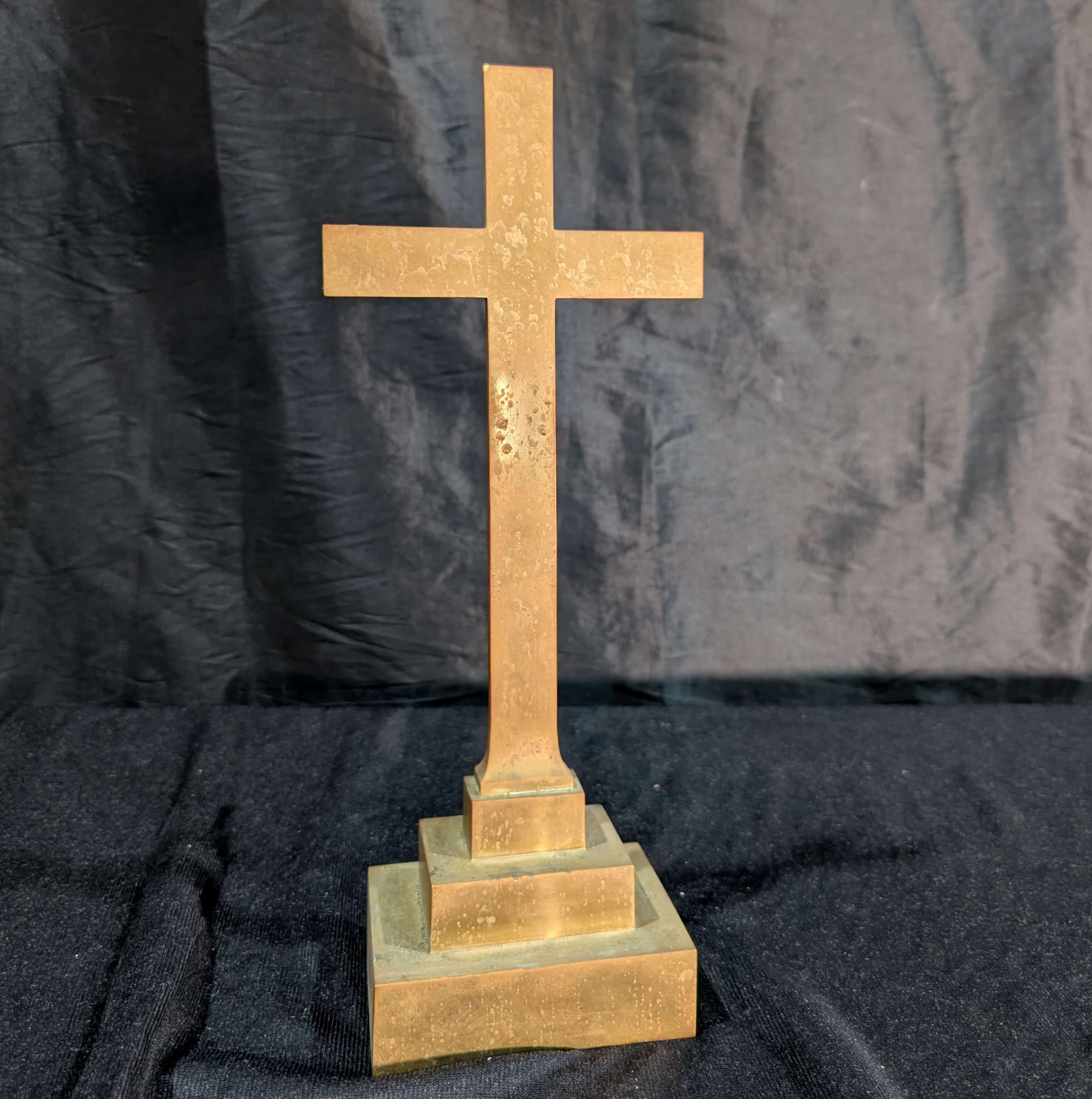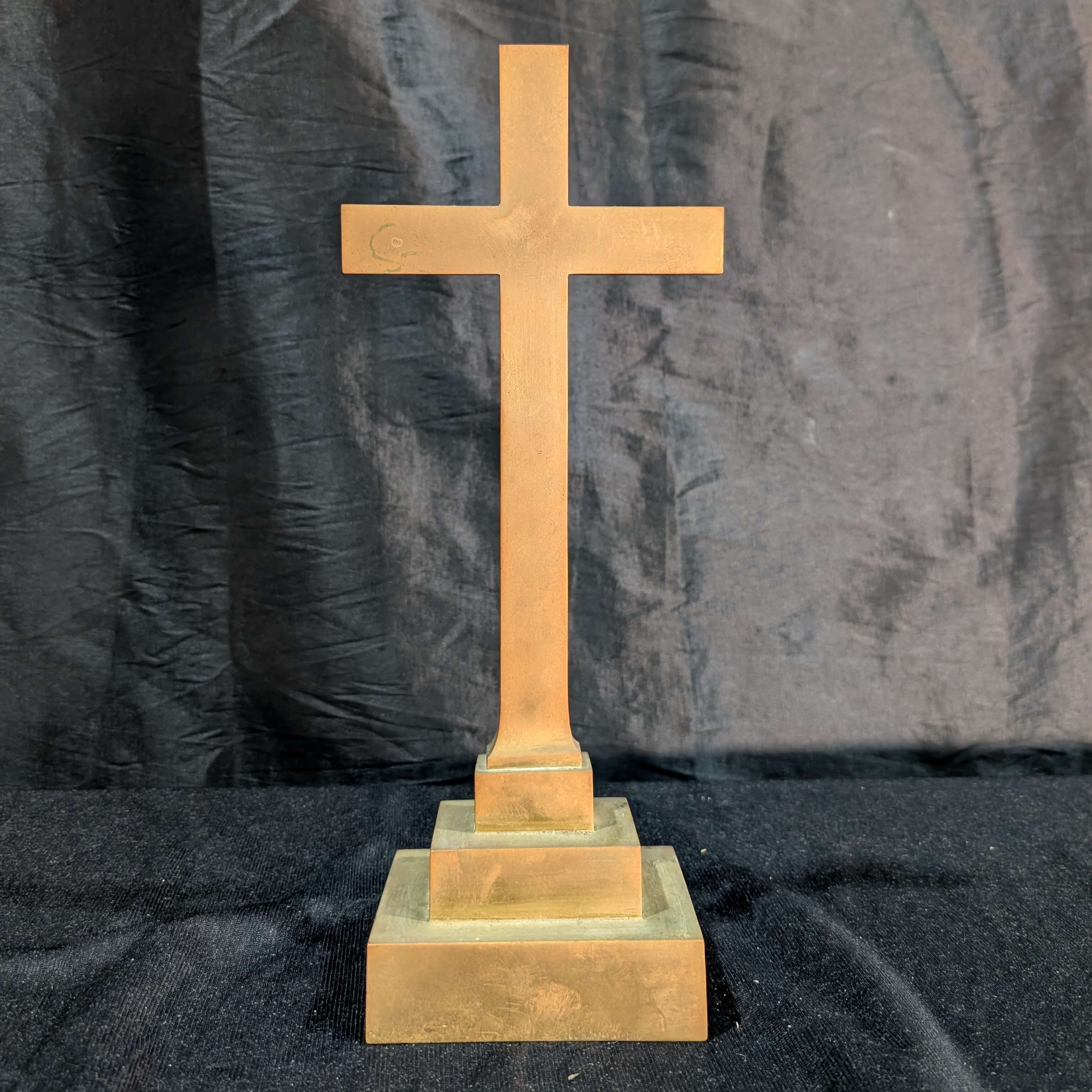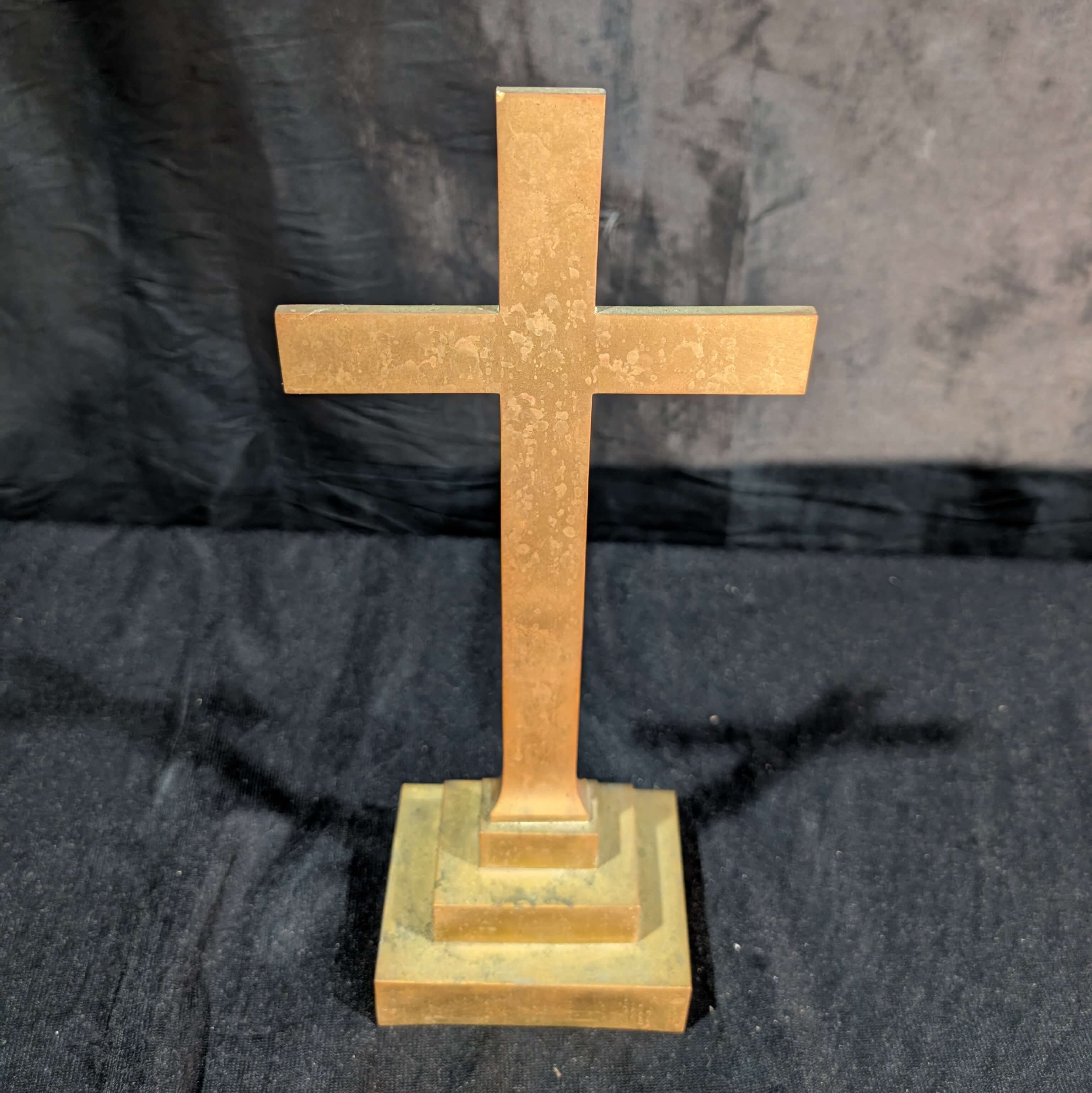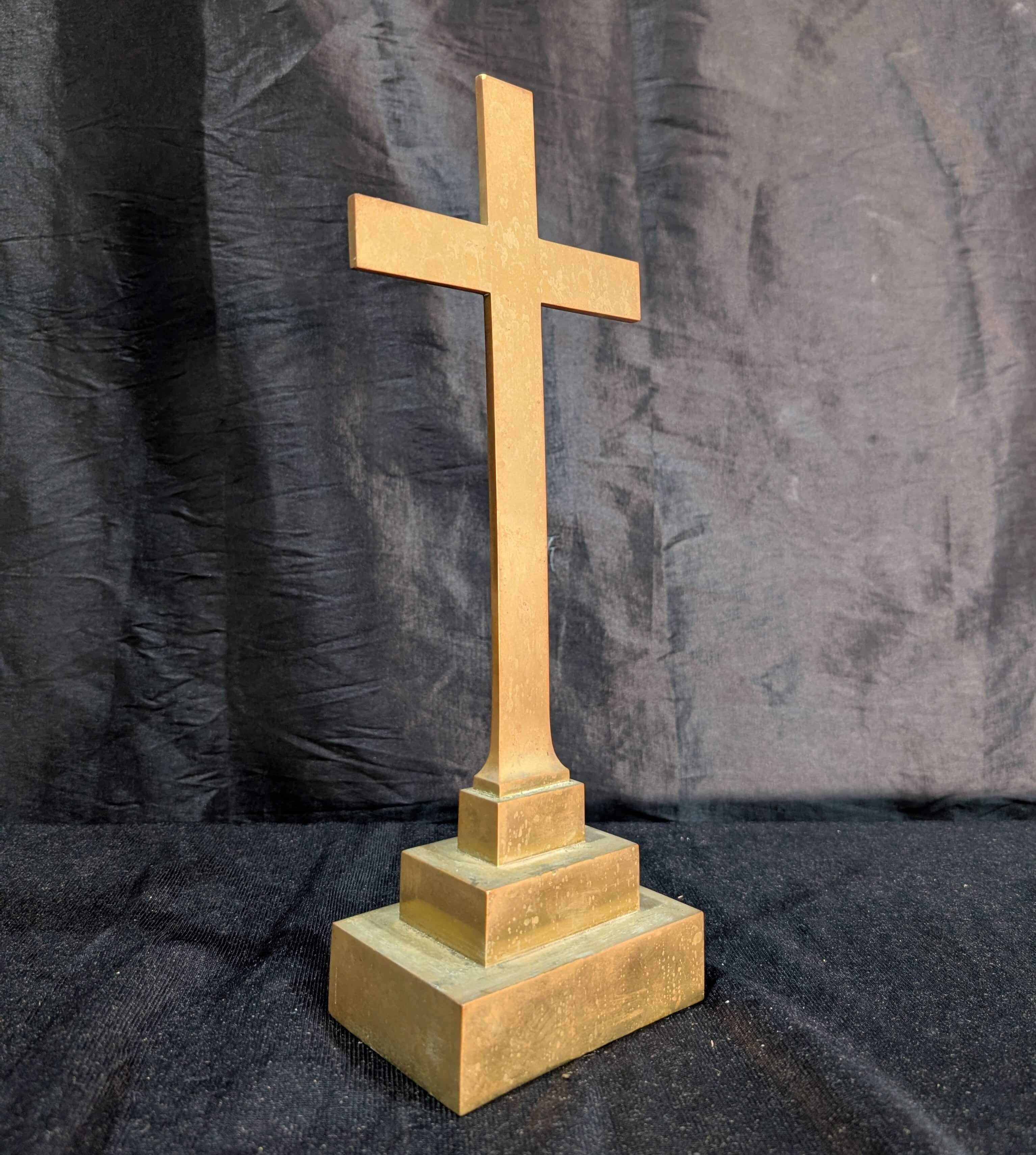 Our product shown on this page Simple Small Antique Solid Brass Table Cross From Crookham is currently available for hire.