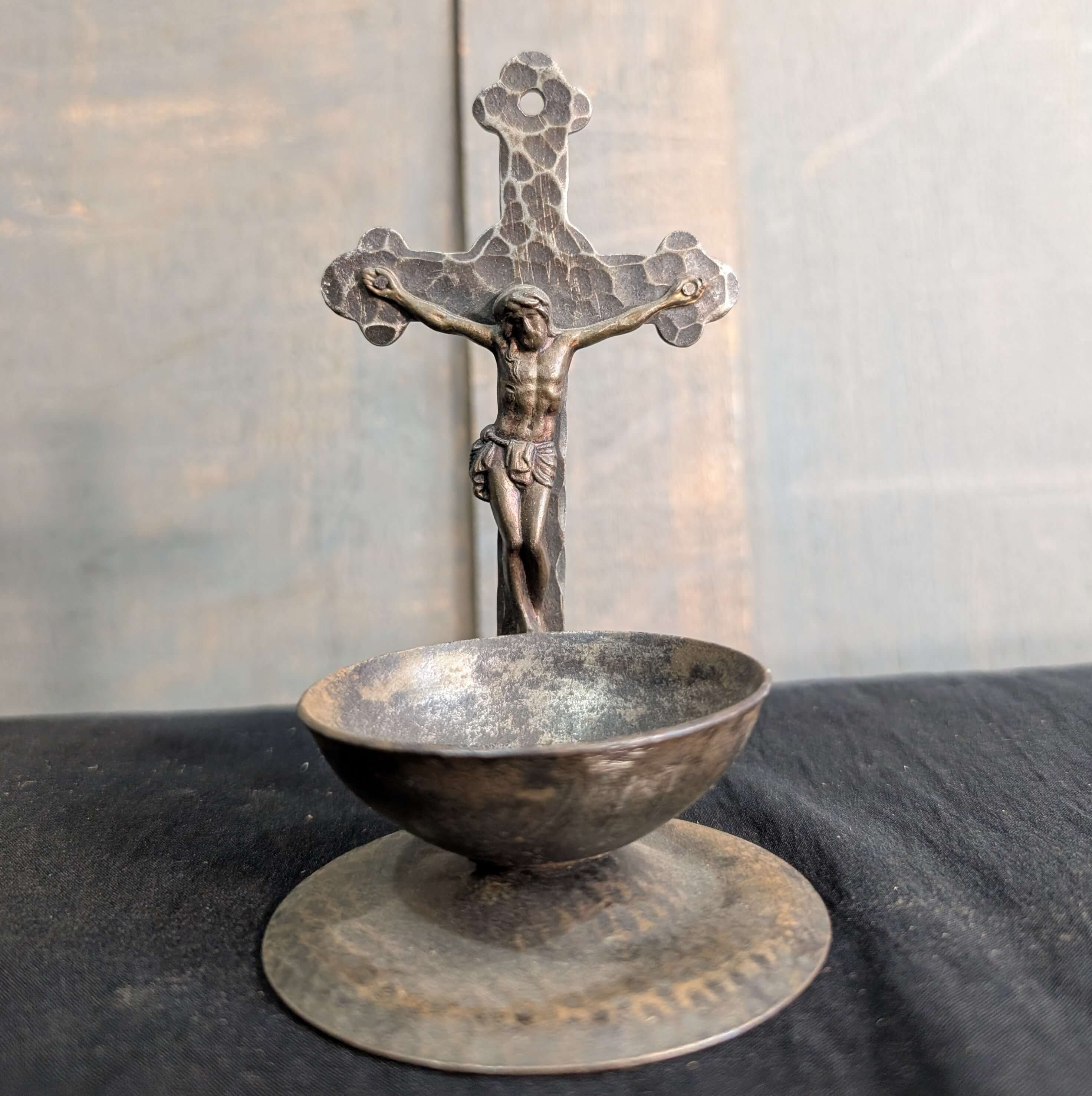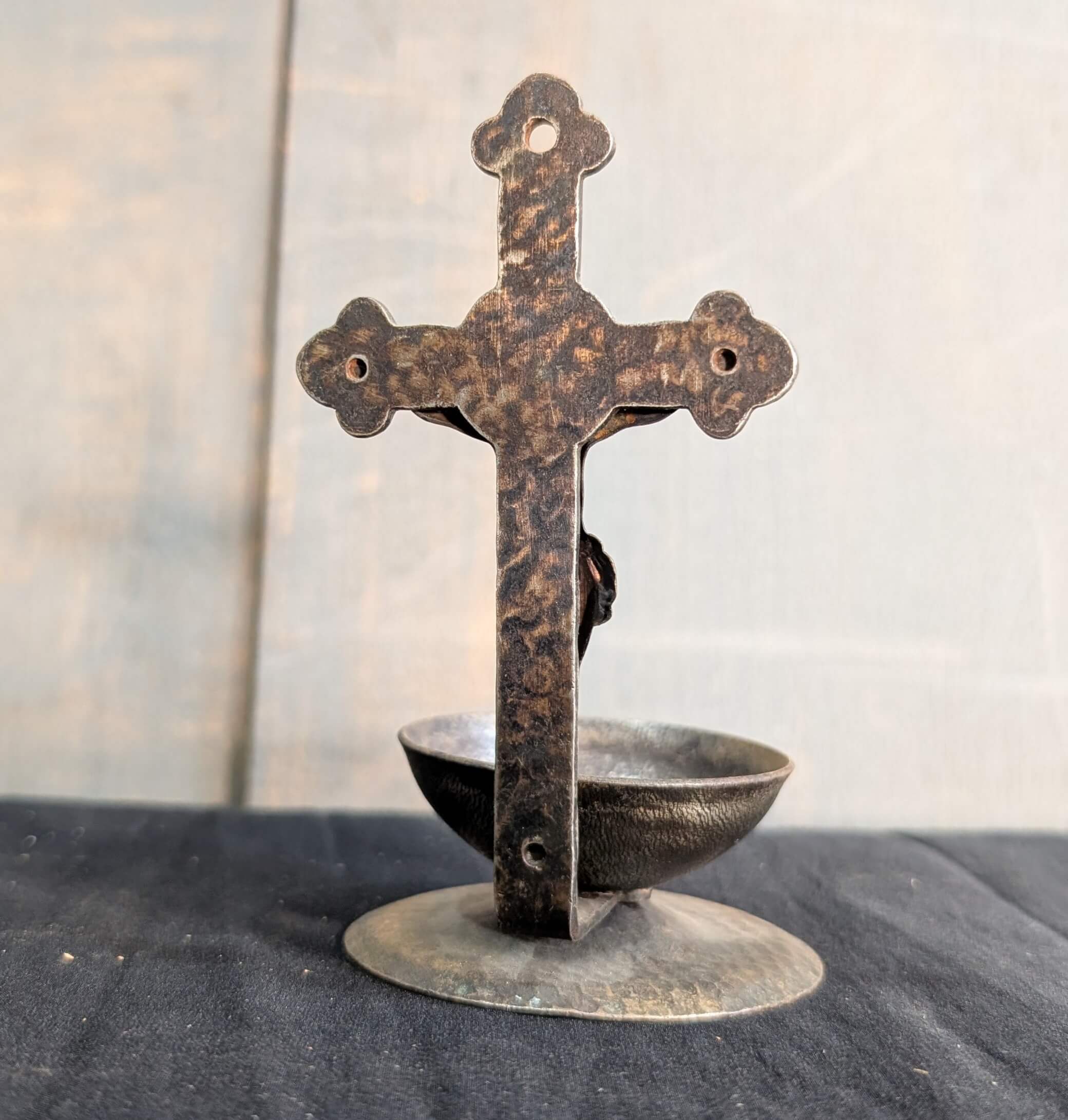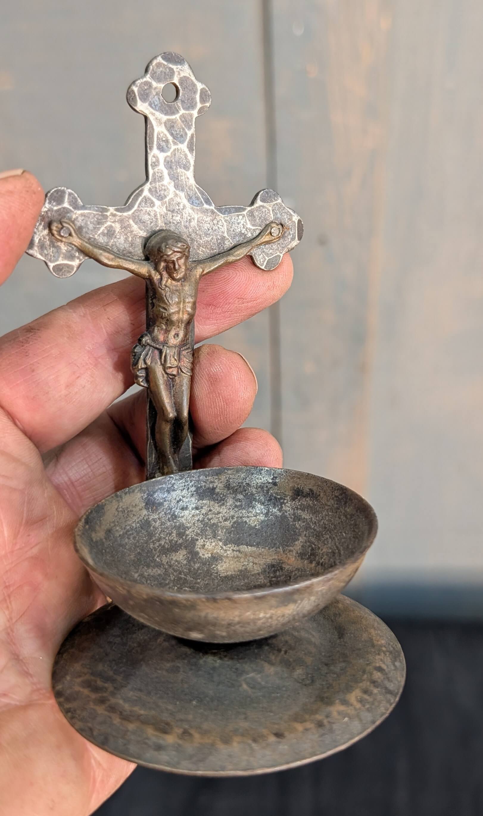 Simple yet Striking Small Vintage Flemish Crucifix Stoop Holy Water Font