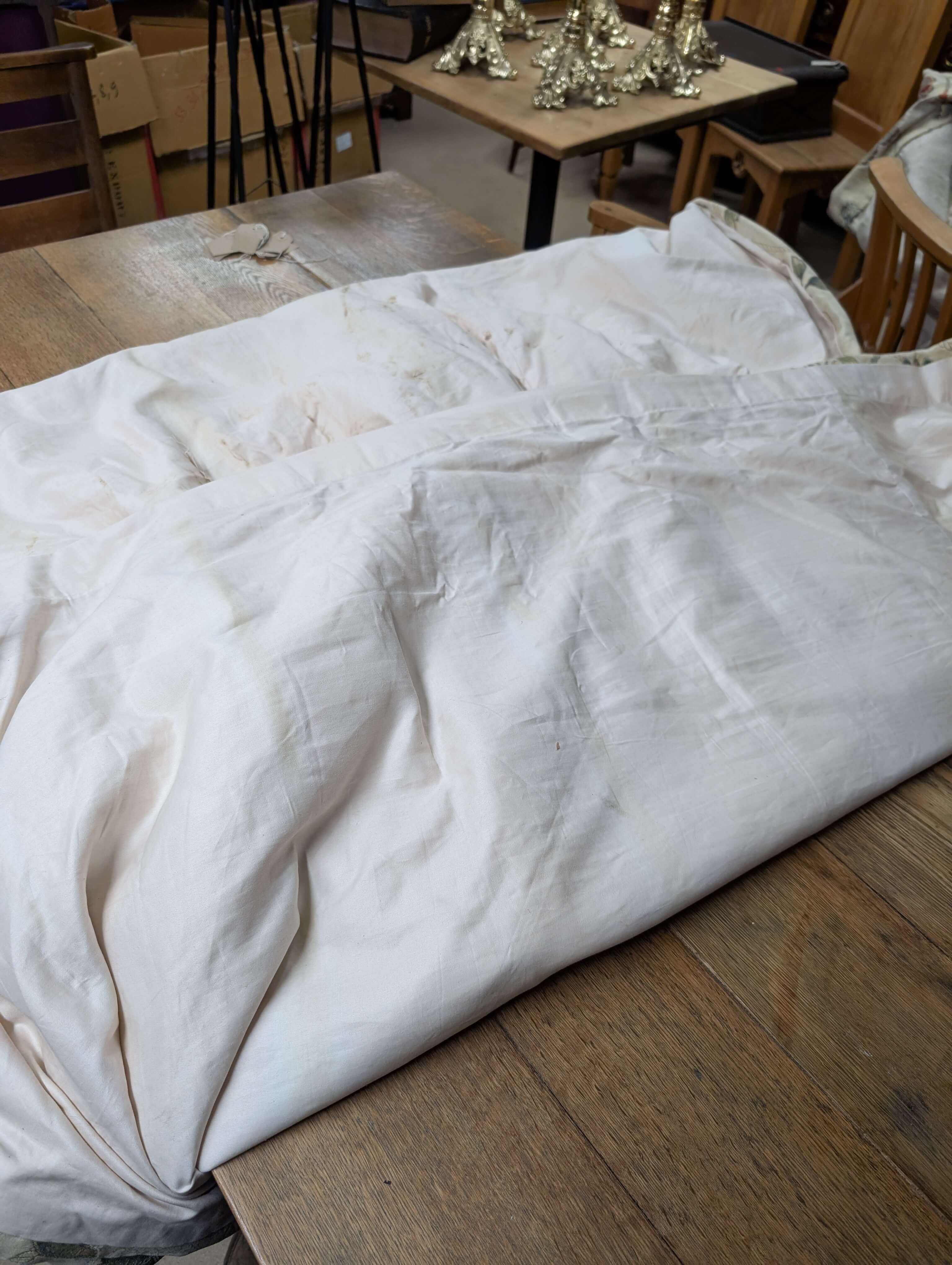 These are top end curtains that originally – probably the 1990’s – would have cost a great deal.  Since then there has been a certain amount of wear and tear, fading and damage and dirt caused by unsympathetic removal – not by us.  See the pictures for each listing and individual descriptions below.