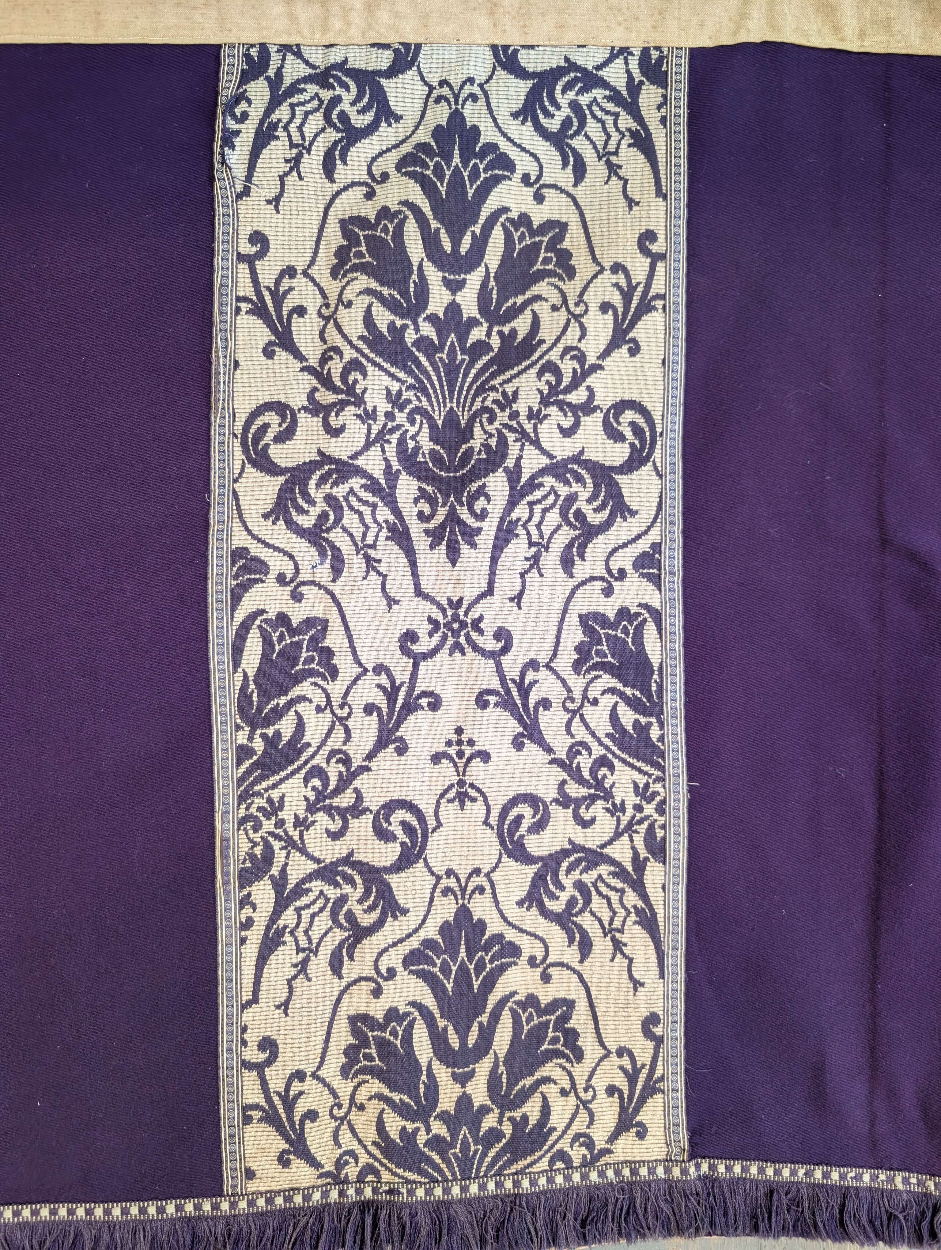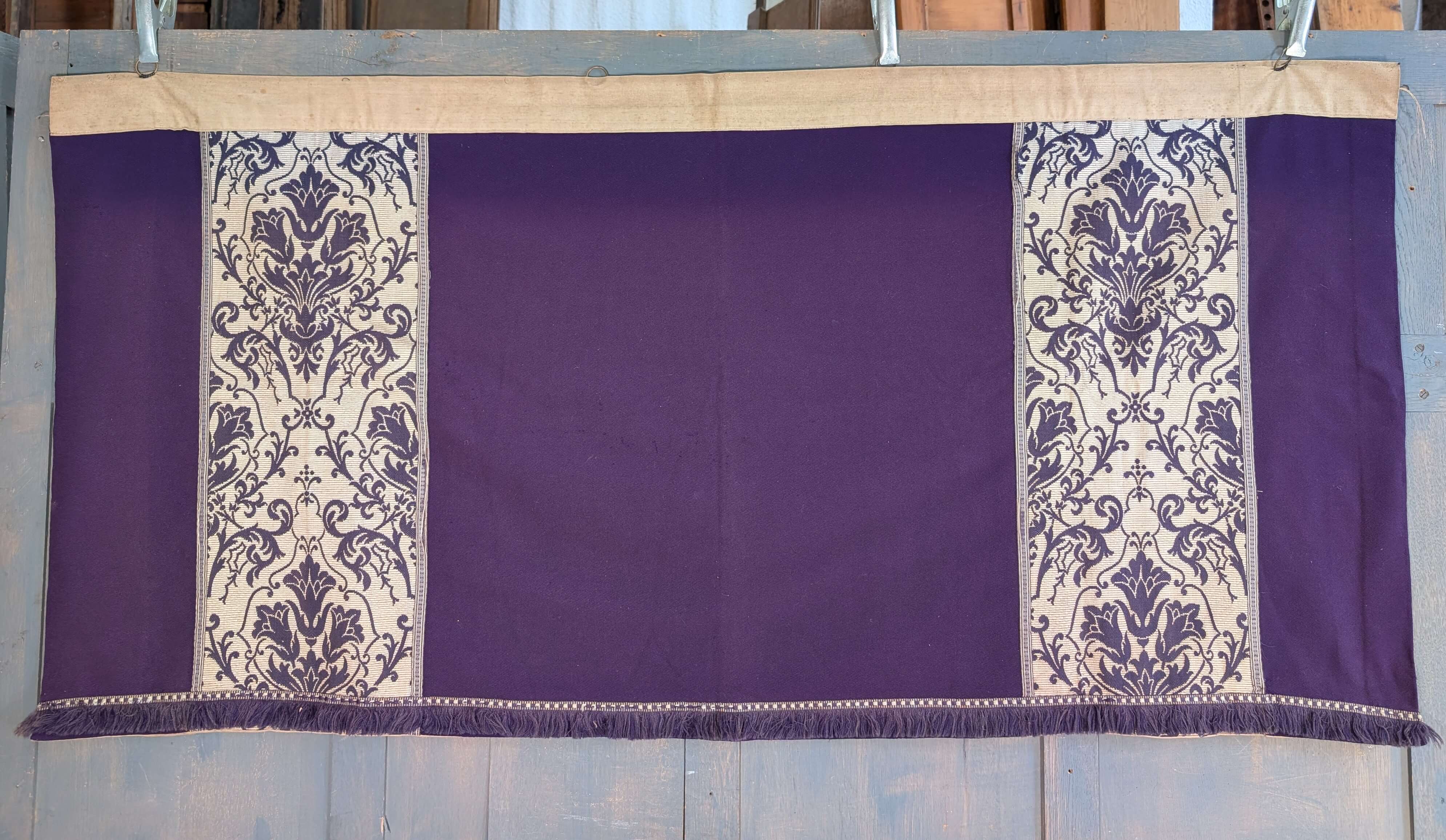 Our product shown on this page Small Mid Century Lenten Hued Purple Altar Frontal is currently available for hire.
