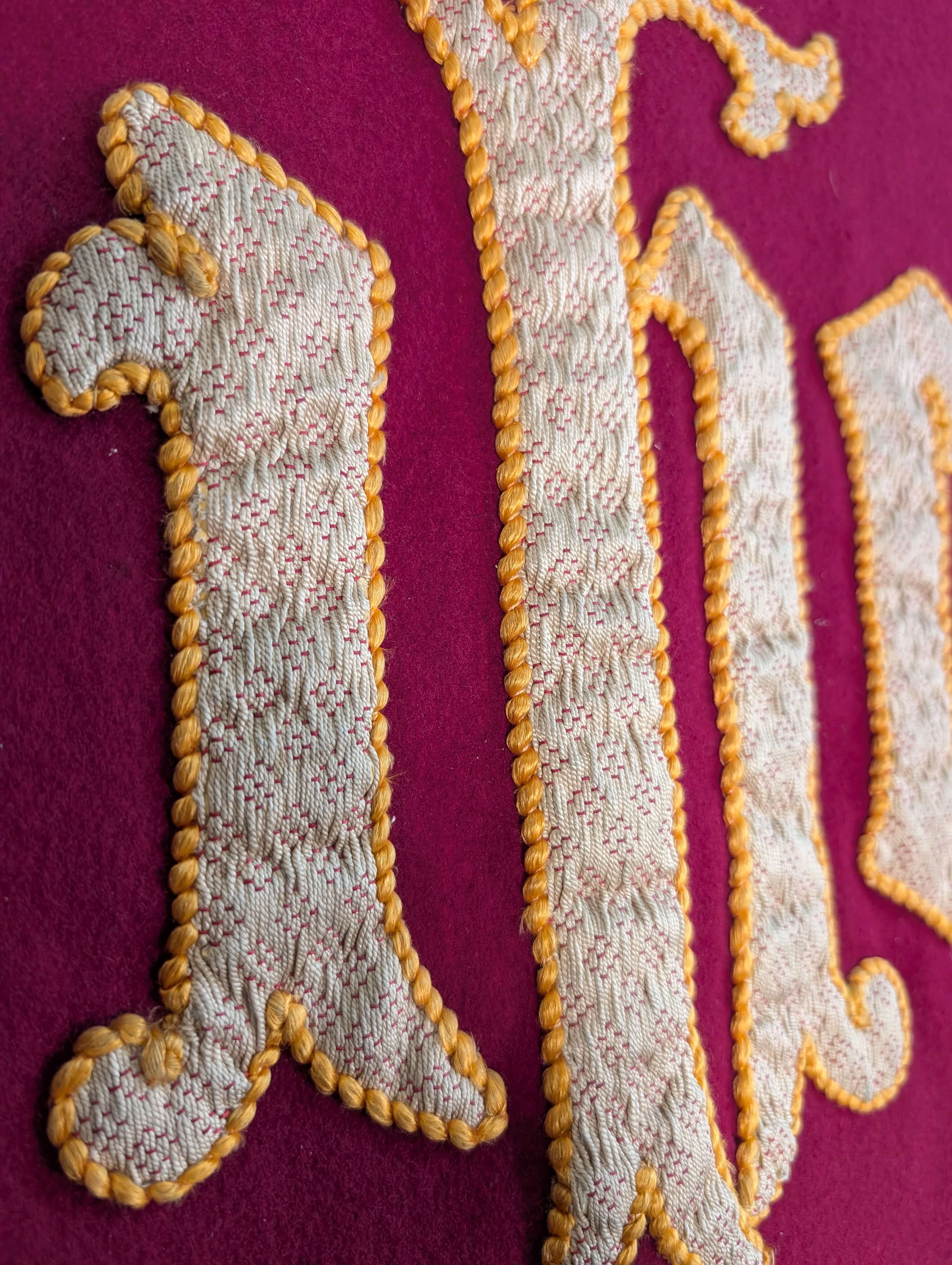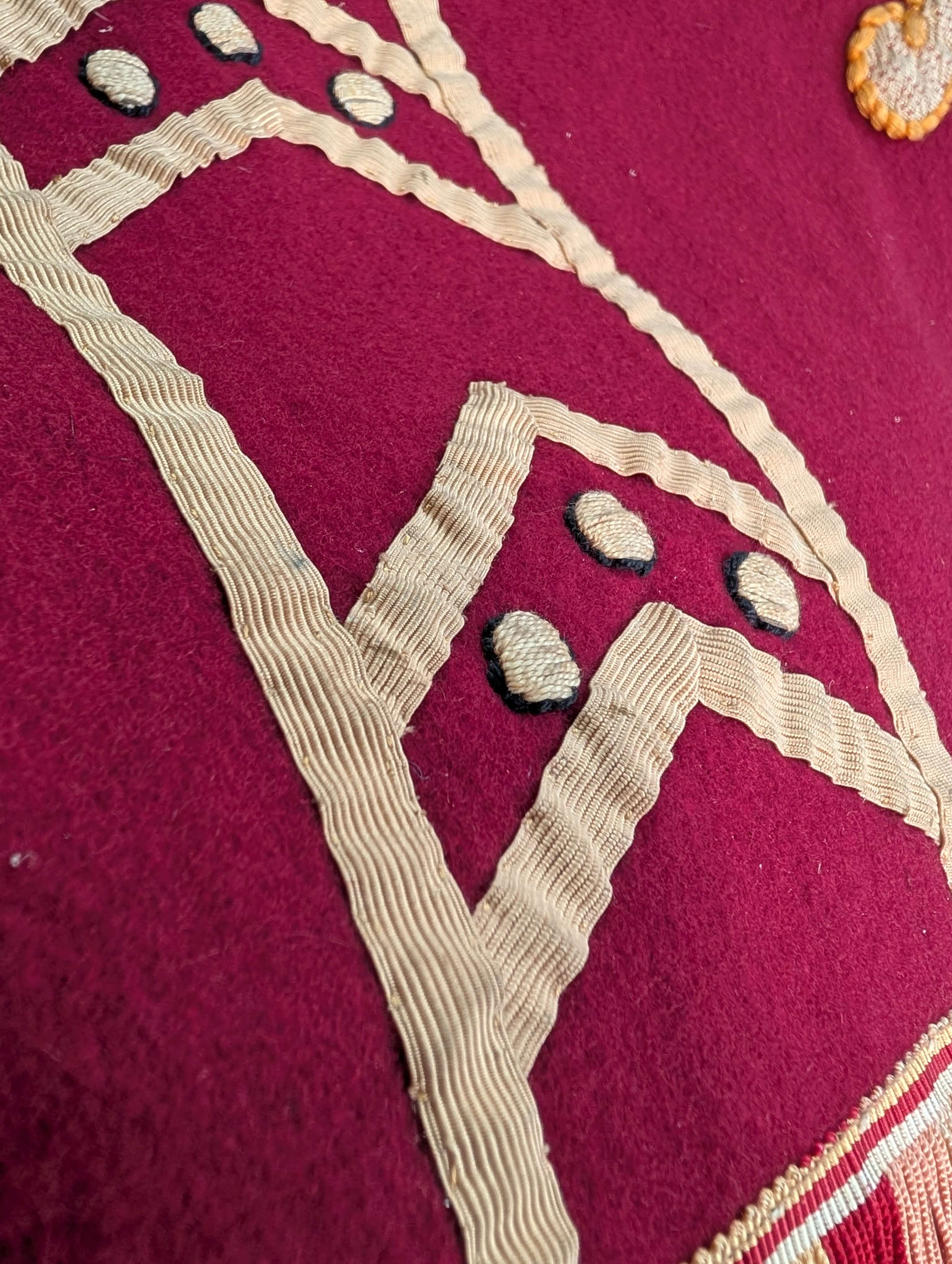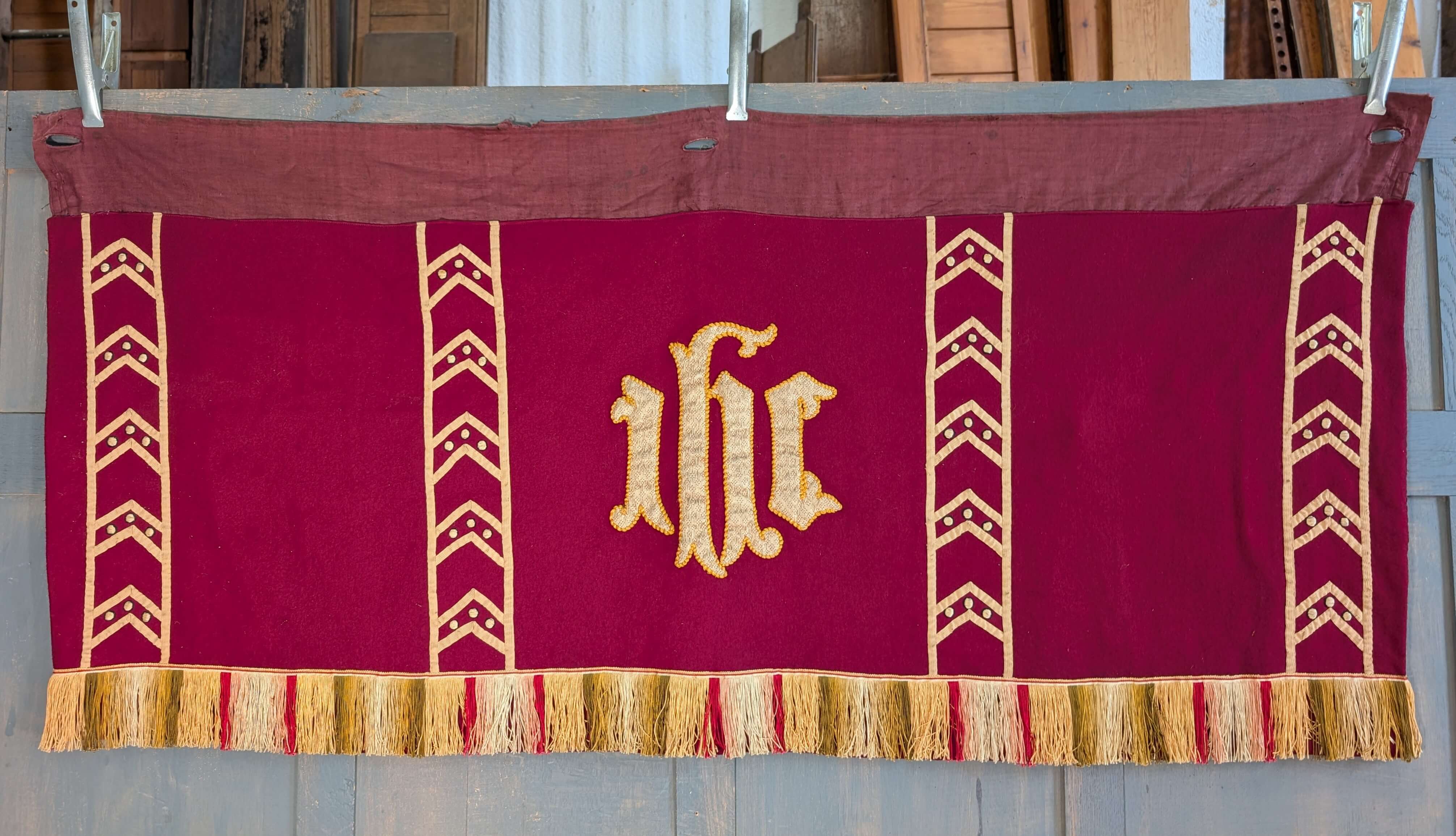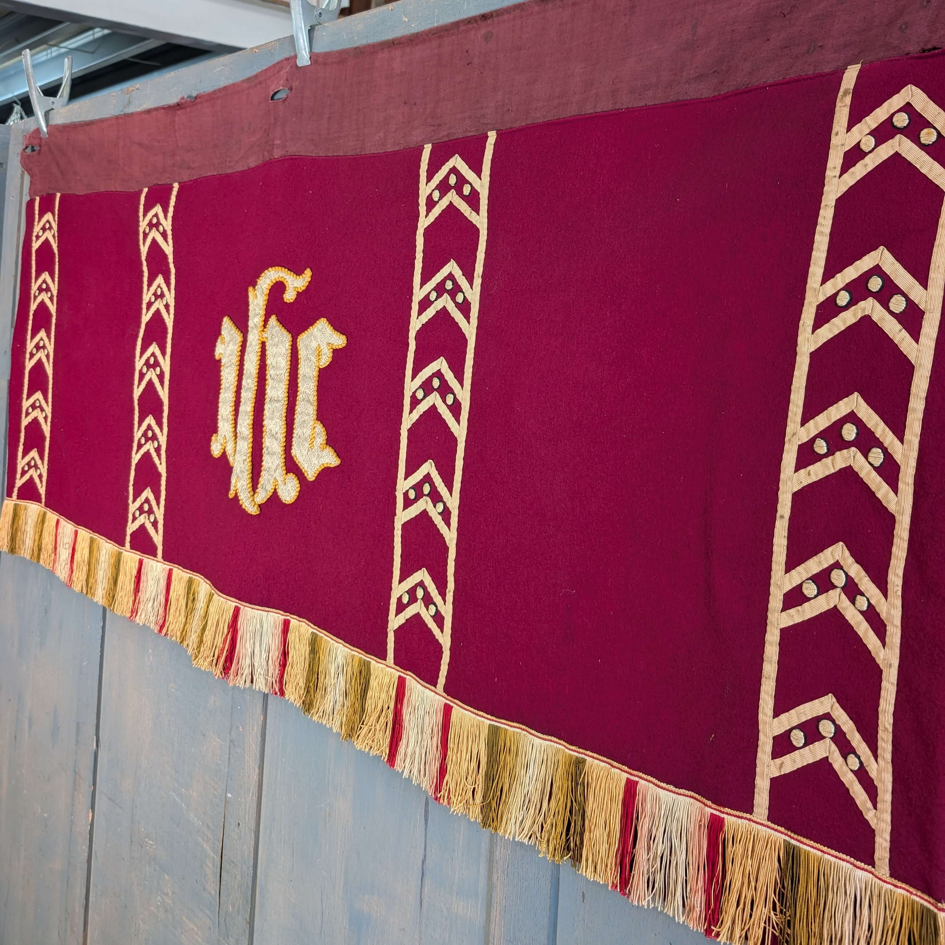 Small Mid Century Red Felt Altar Frontal with Chevrons & IHS