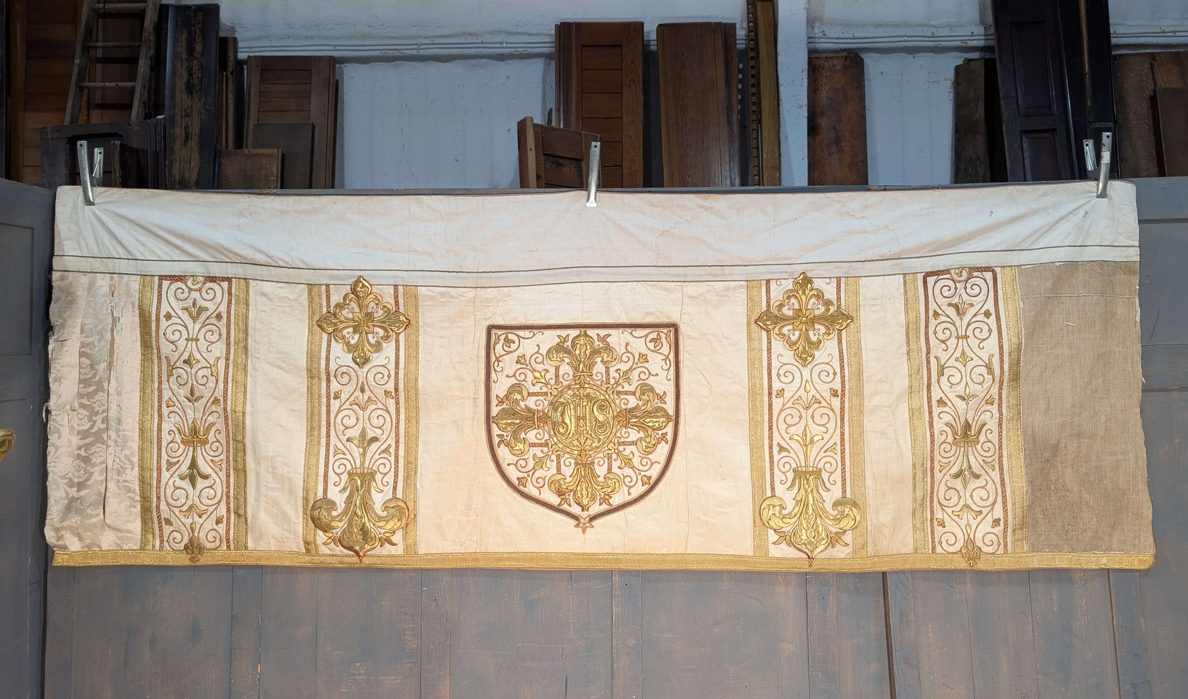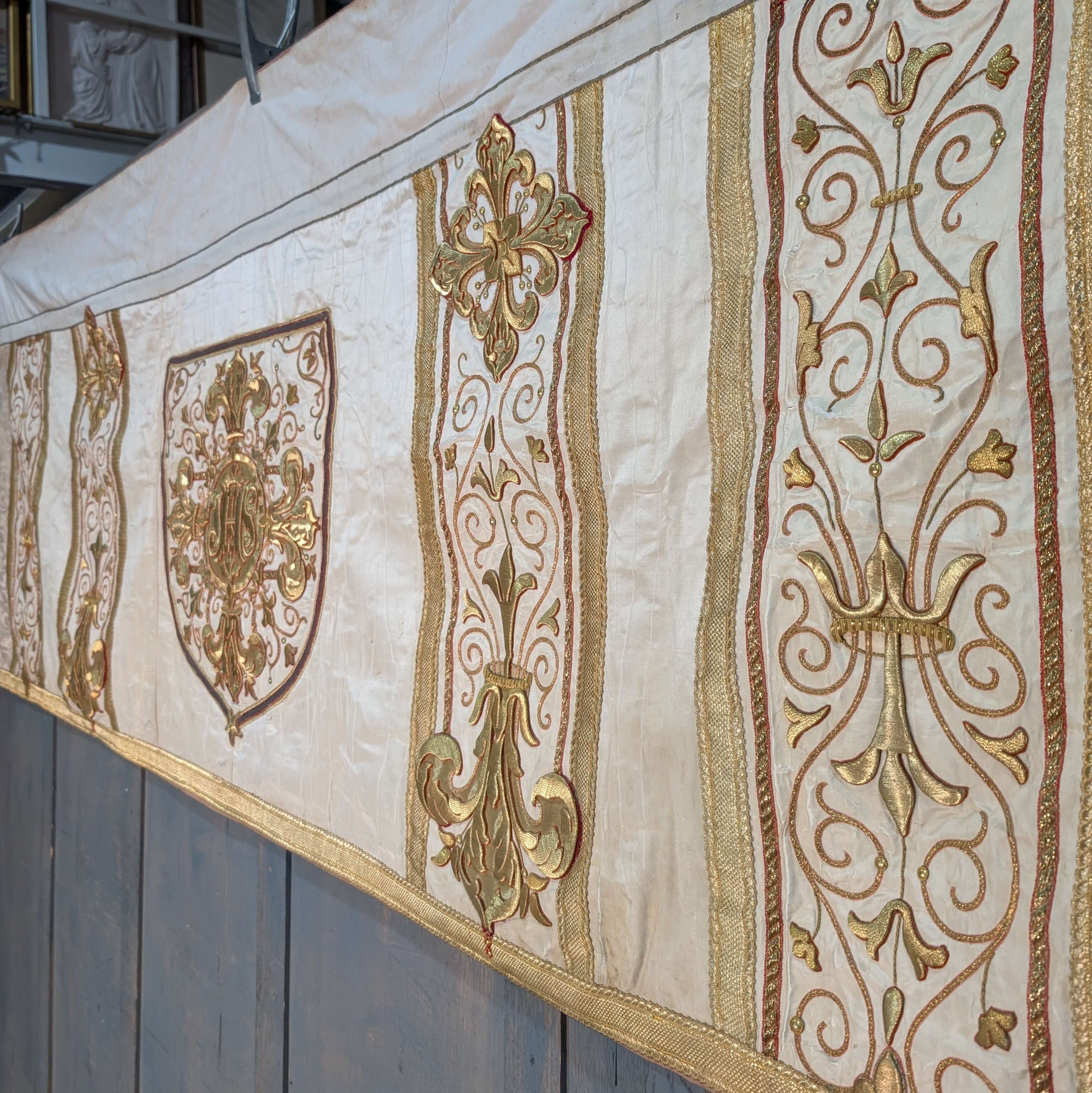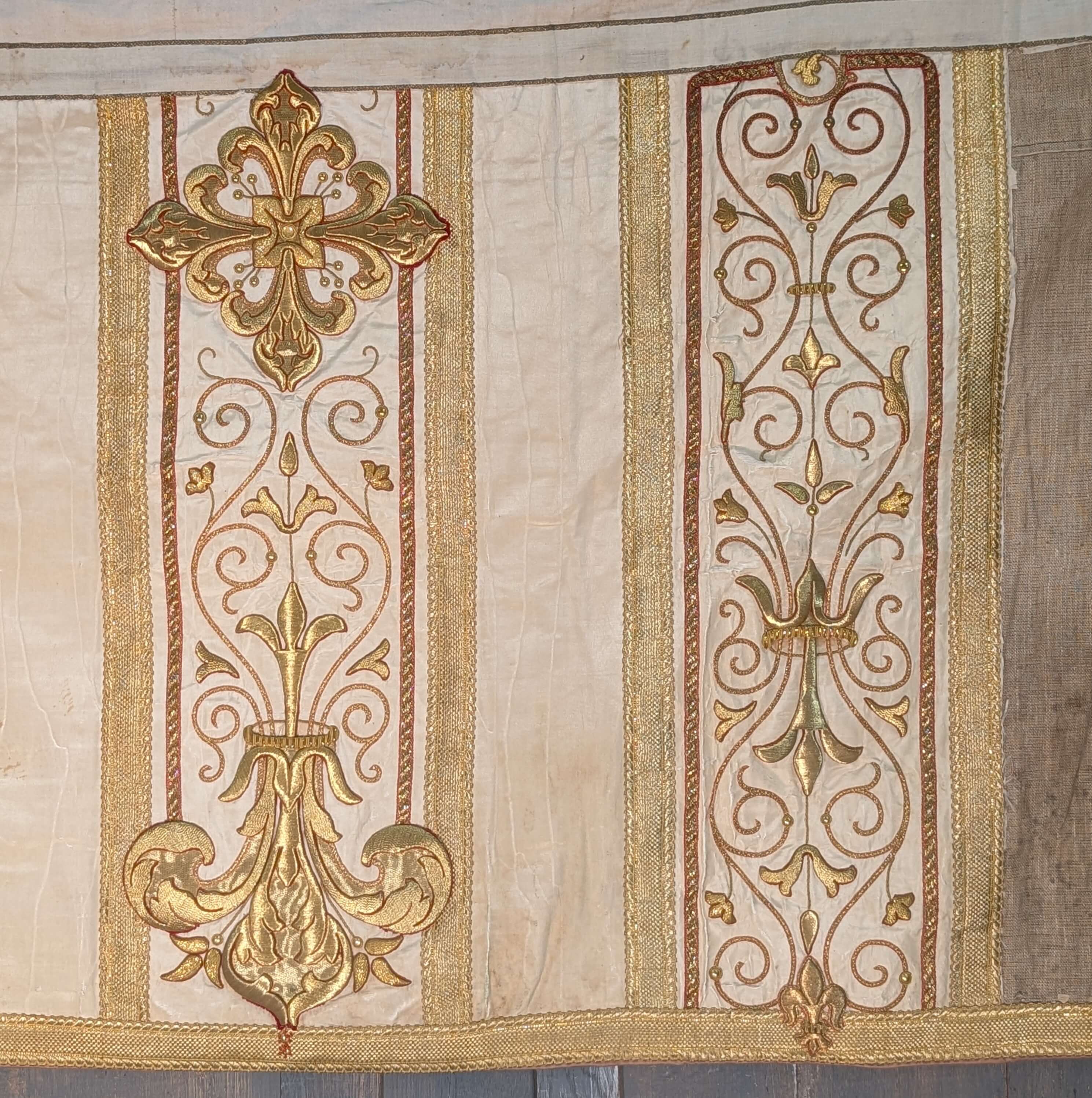 Our product shown on this page Stunning Antique Embroidered Bullion Work Altar Frontal Cope Chasuble Project is currently available for hire.