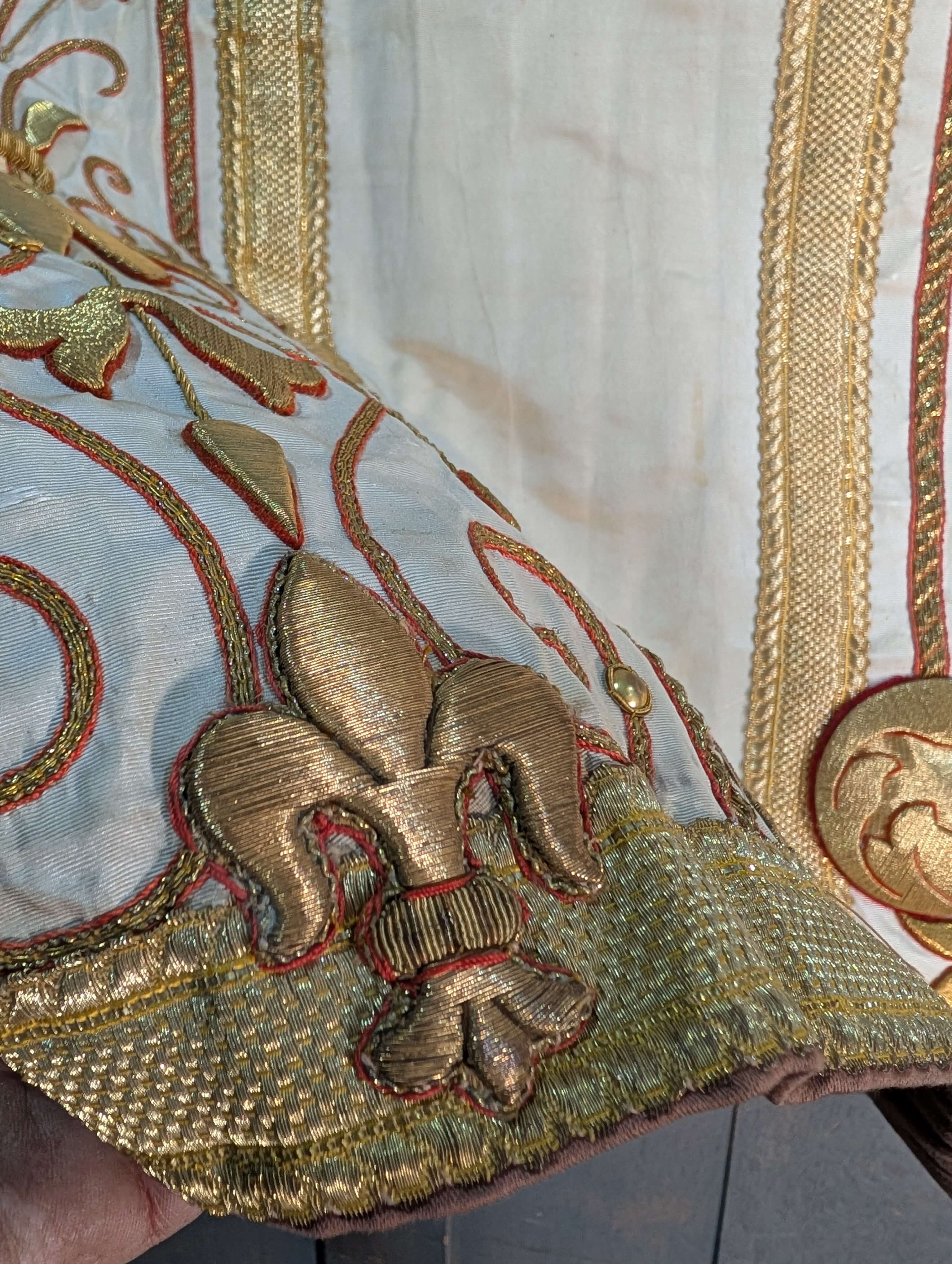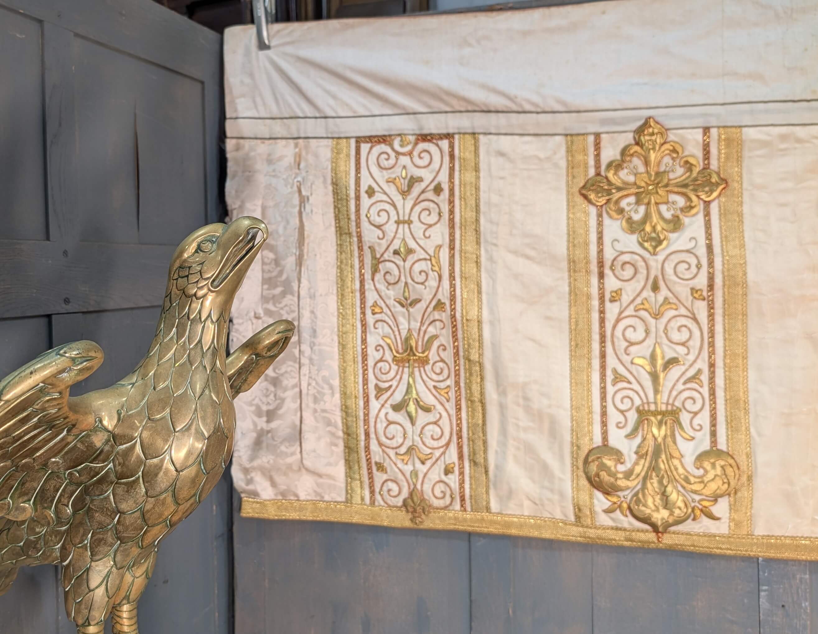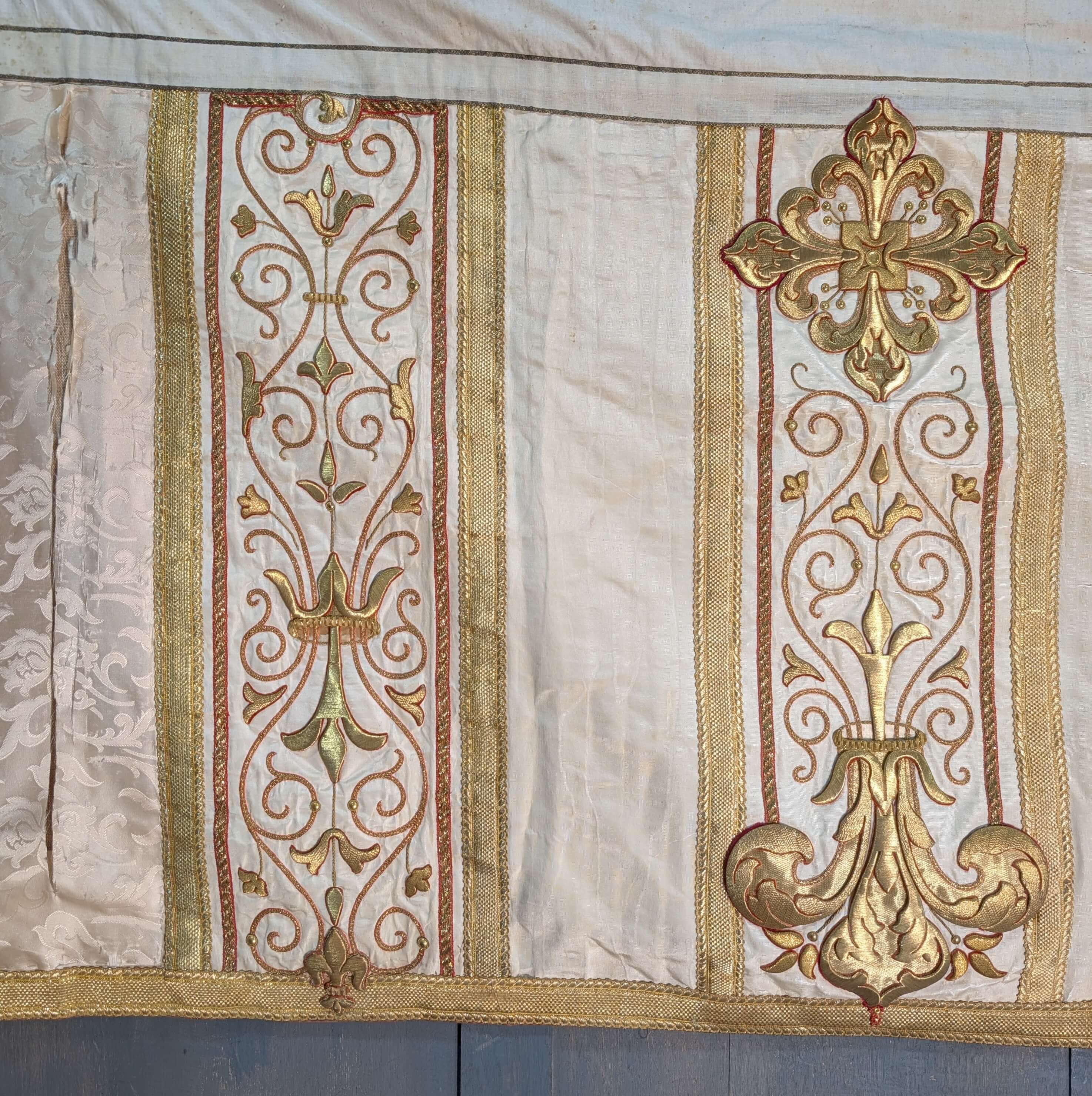 Our product shown on this page Stunning Antique Embroidered Bullion Work Altar Frontal Cope Chasuble Project is currently available for hire.