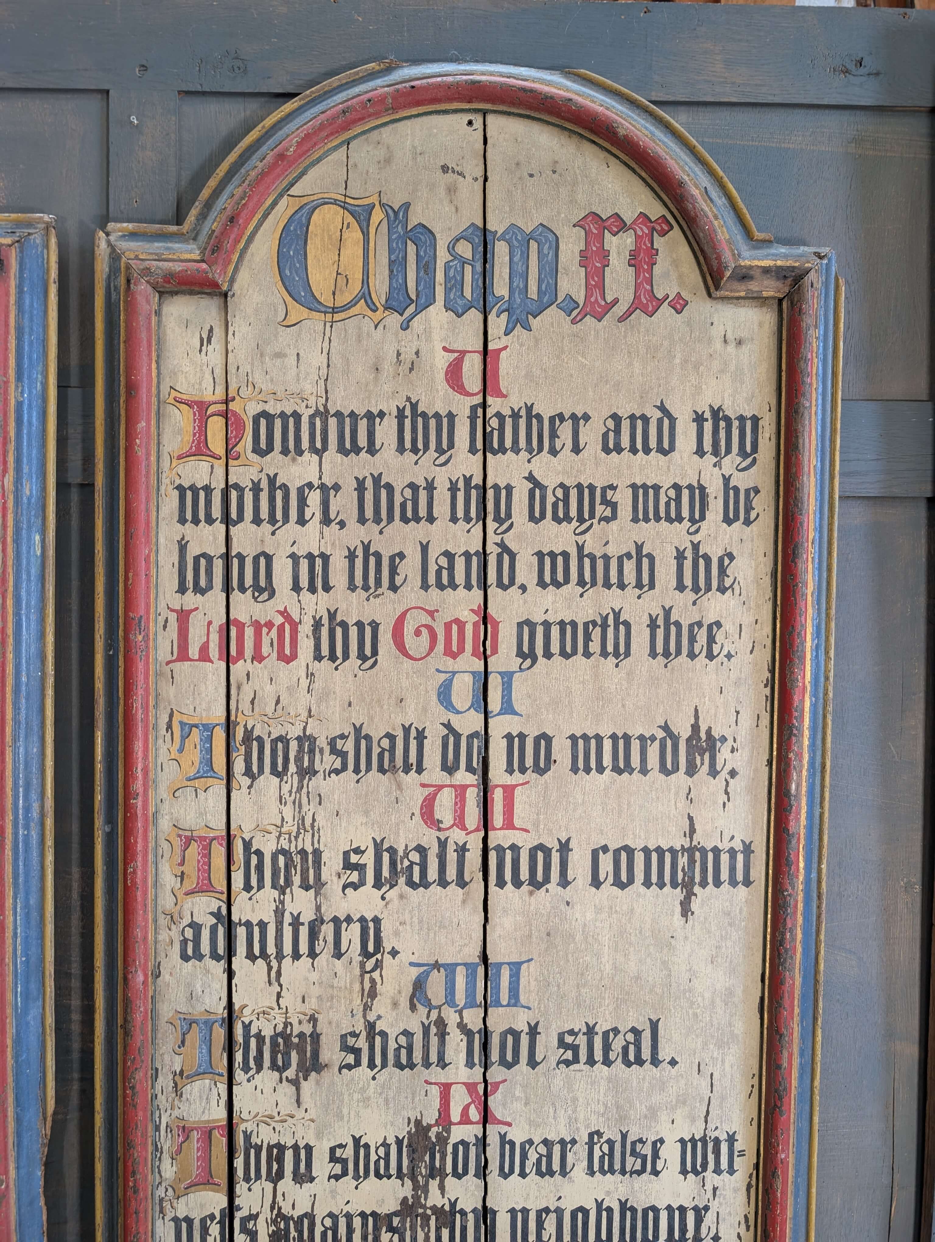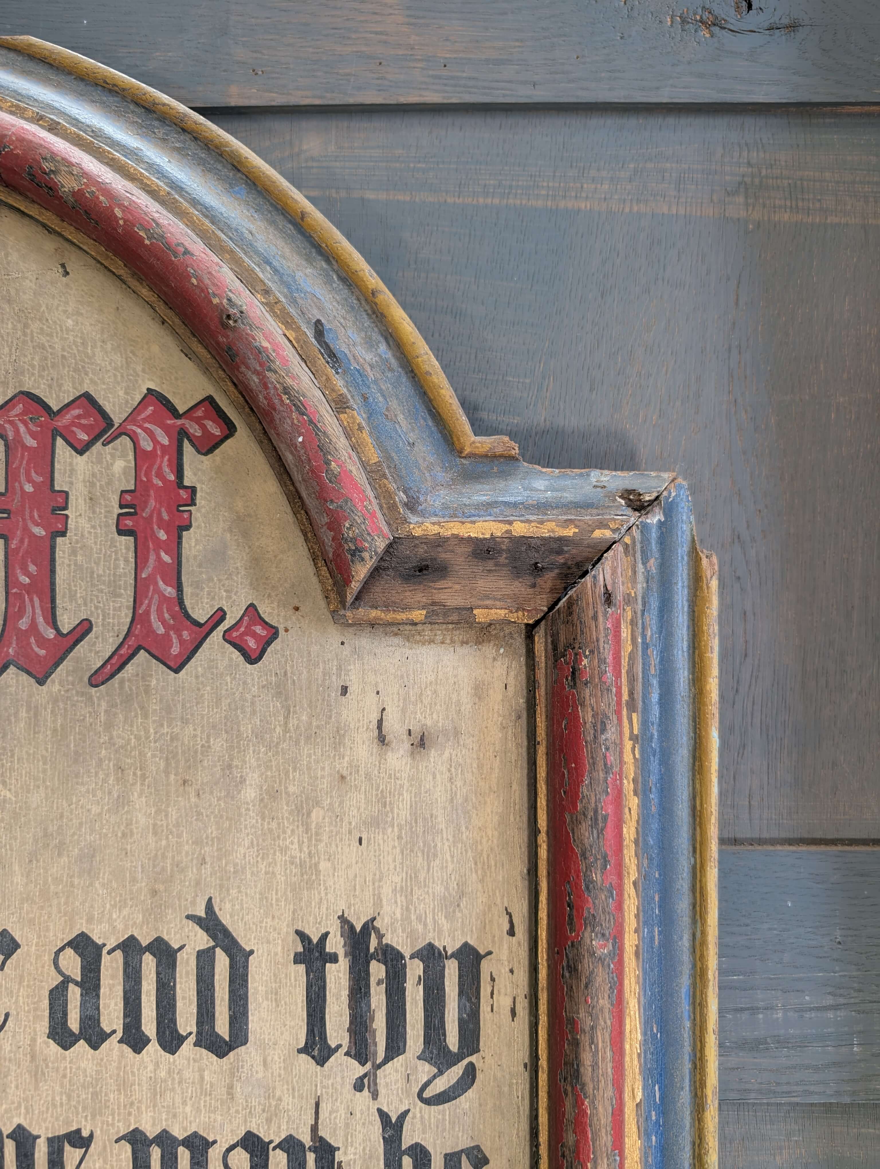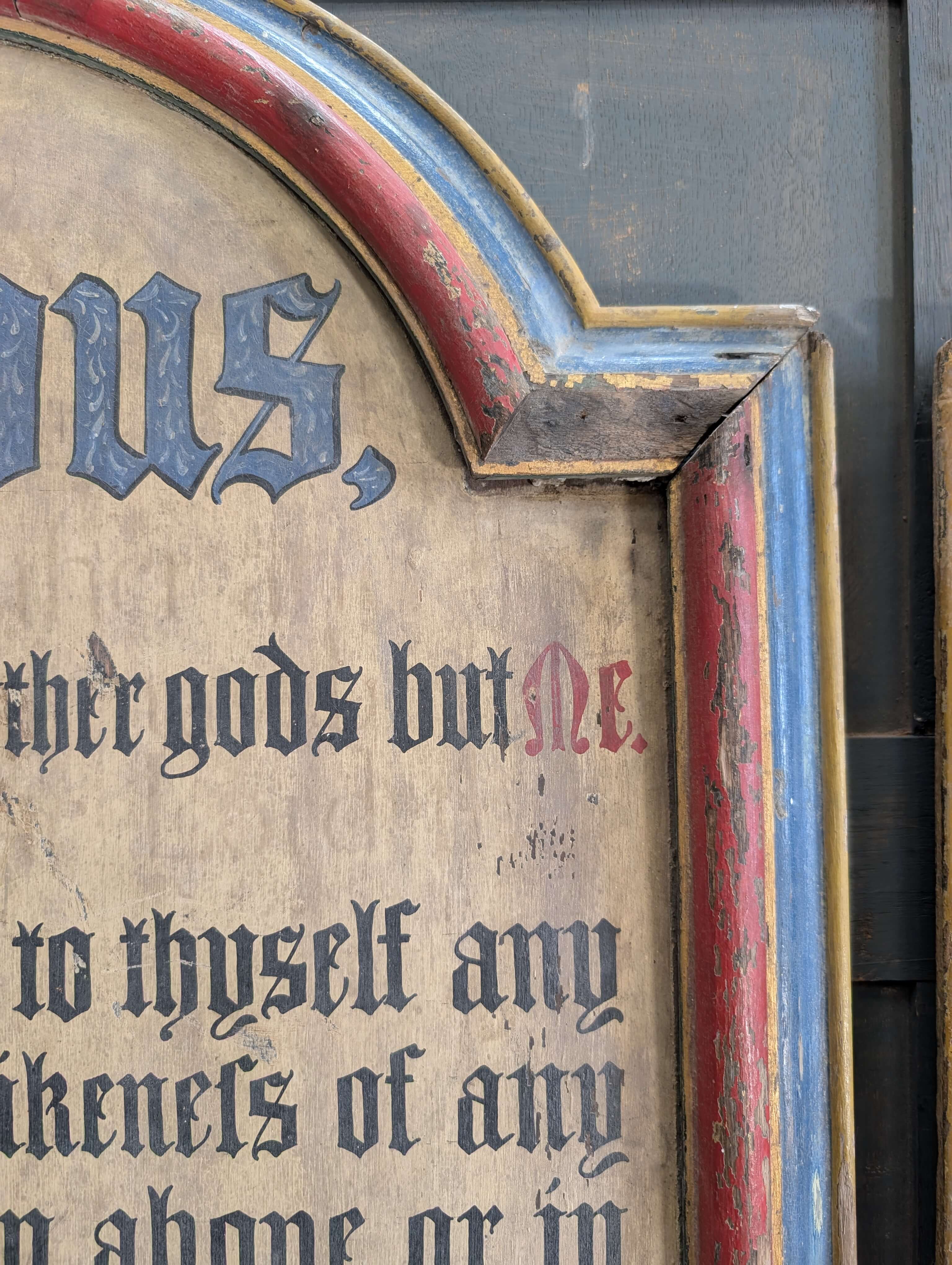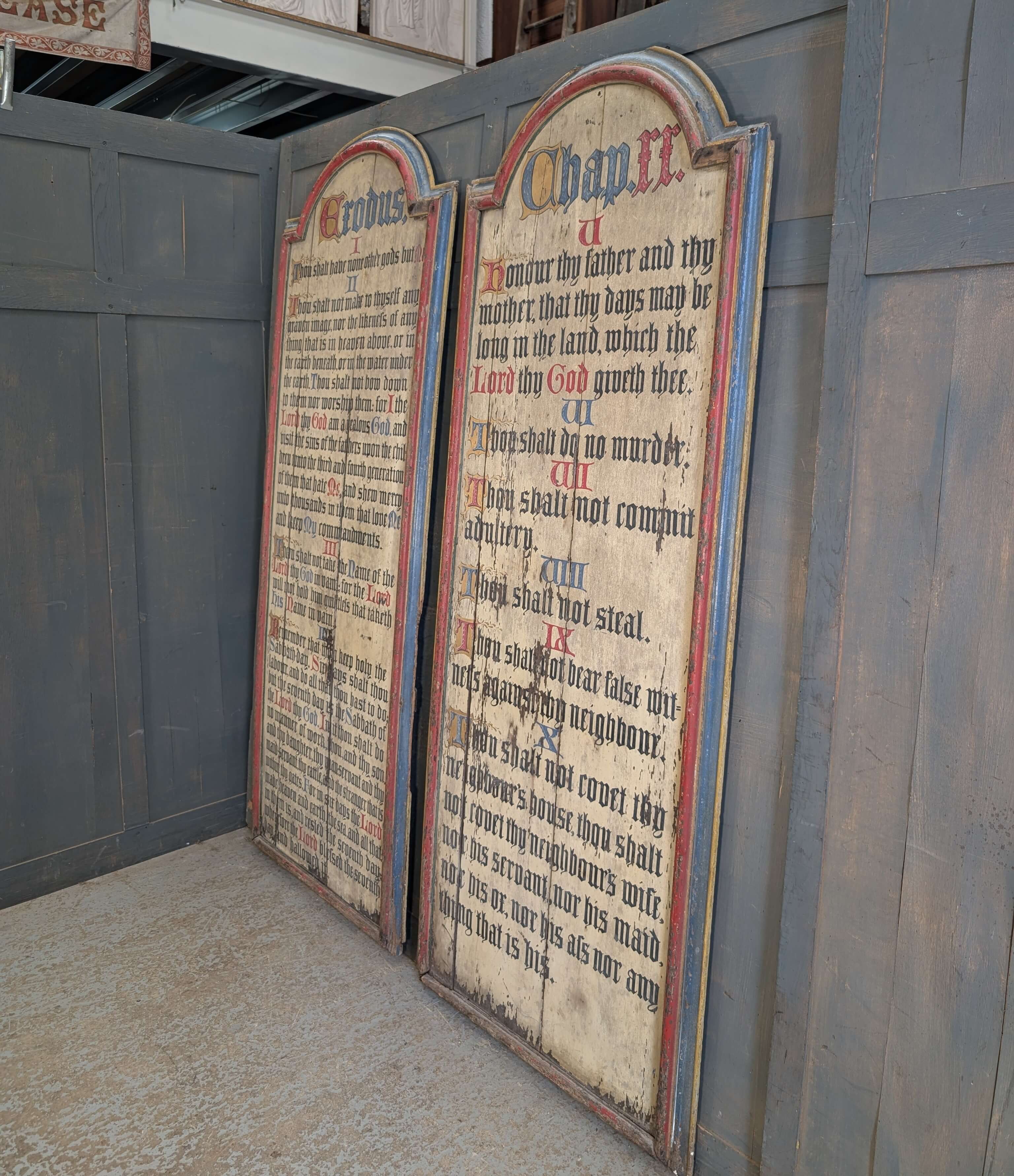 Our product shown on this page Two Large Antique 1850’s Painted Oak Commandment Boards is currently available for hire.