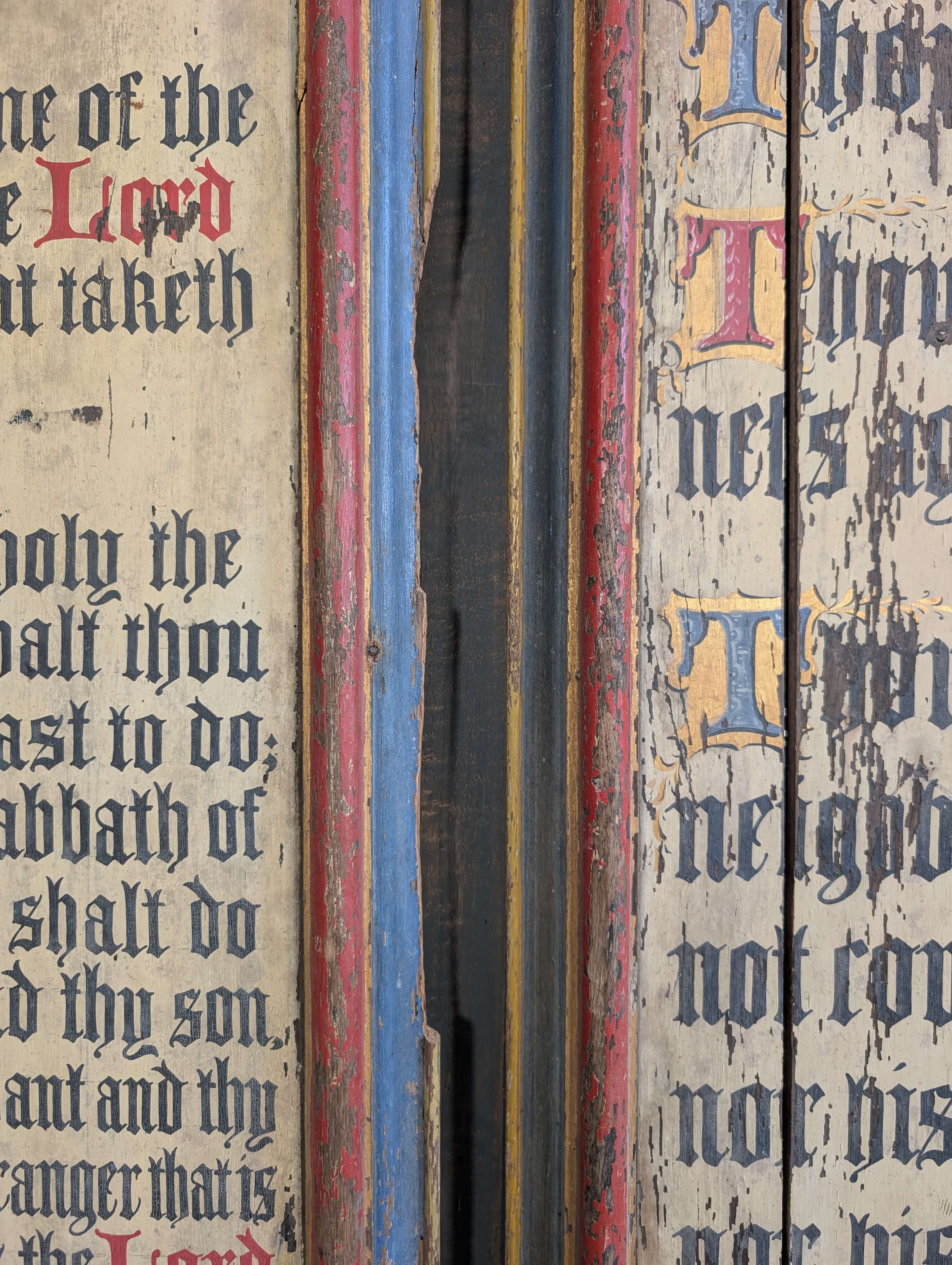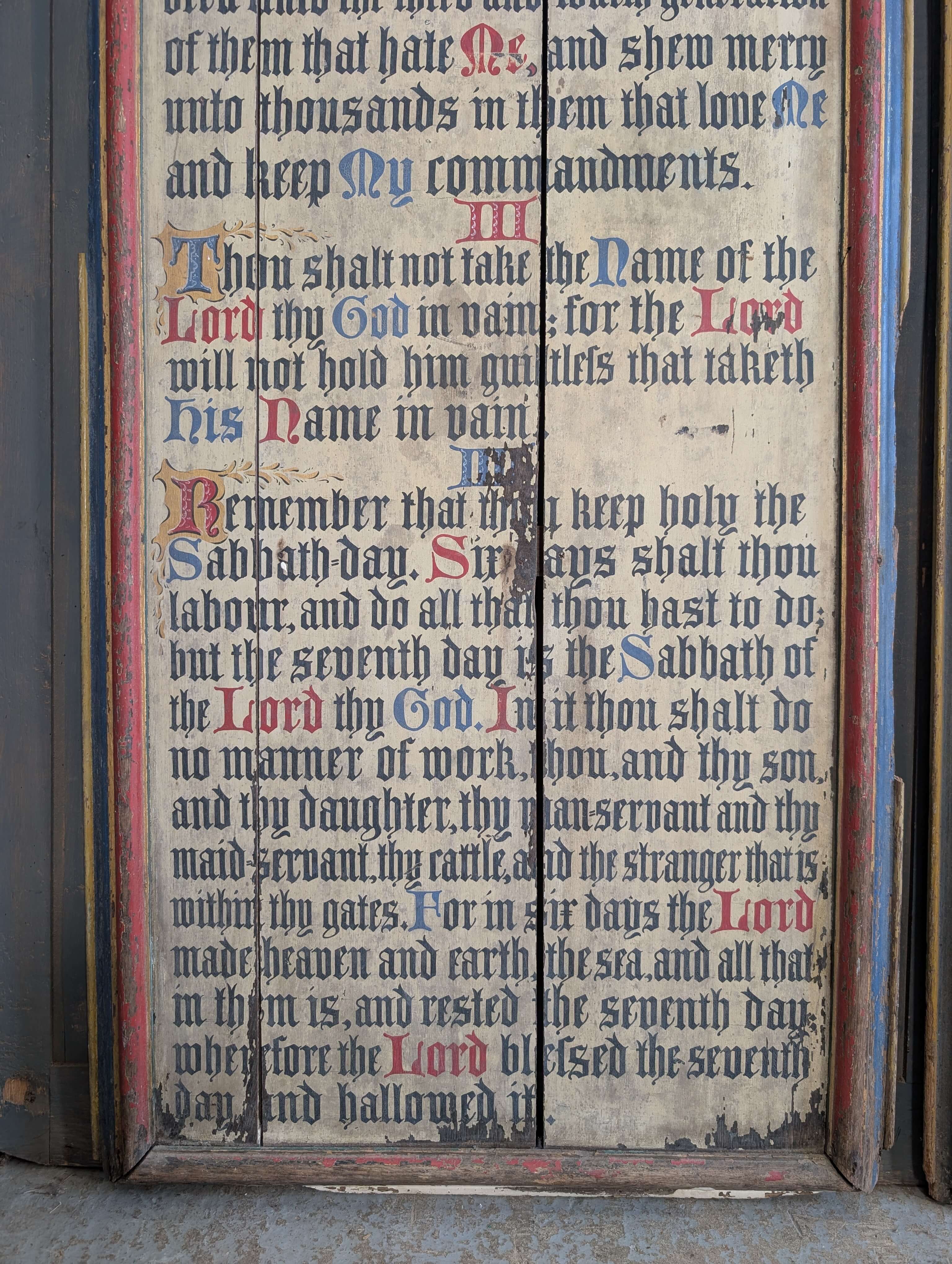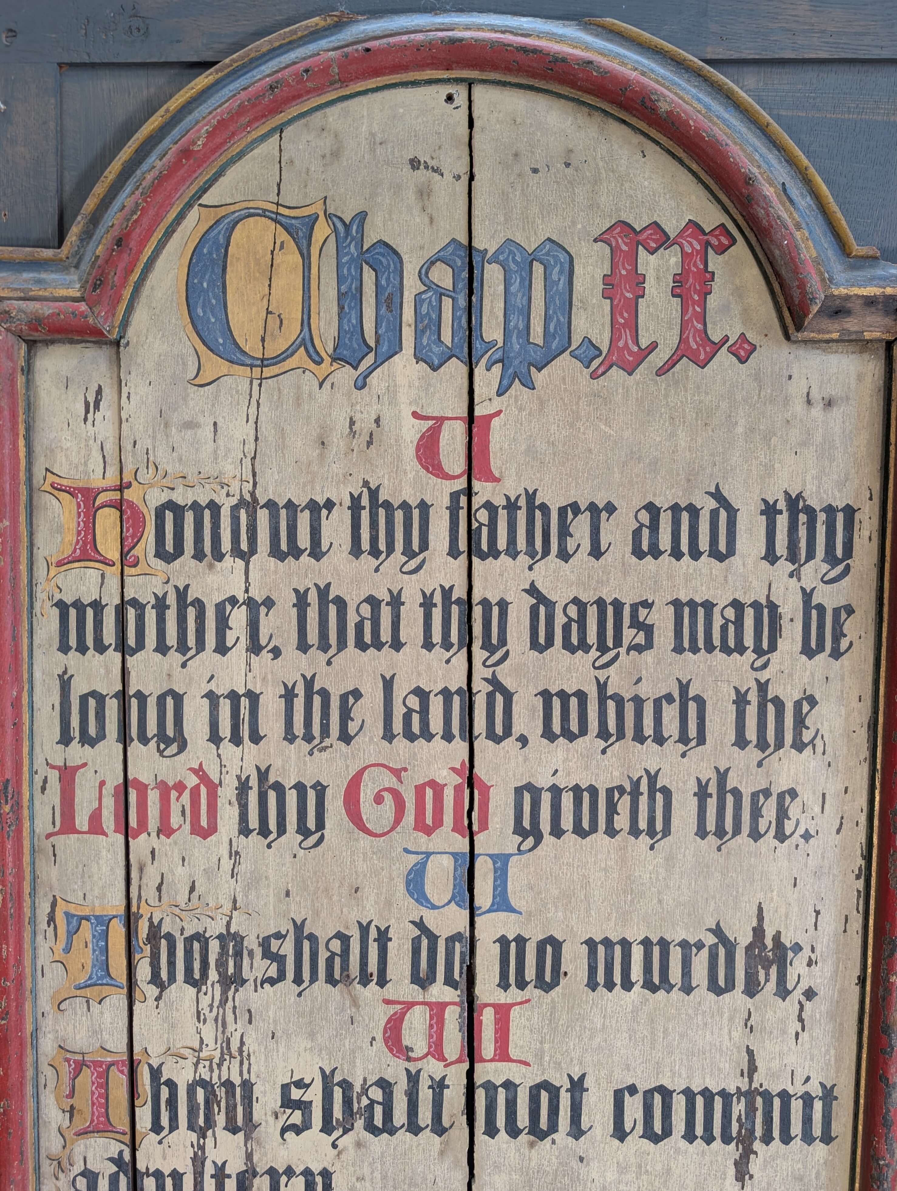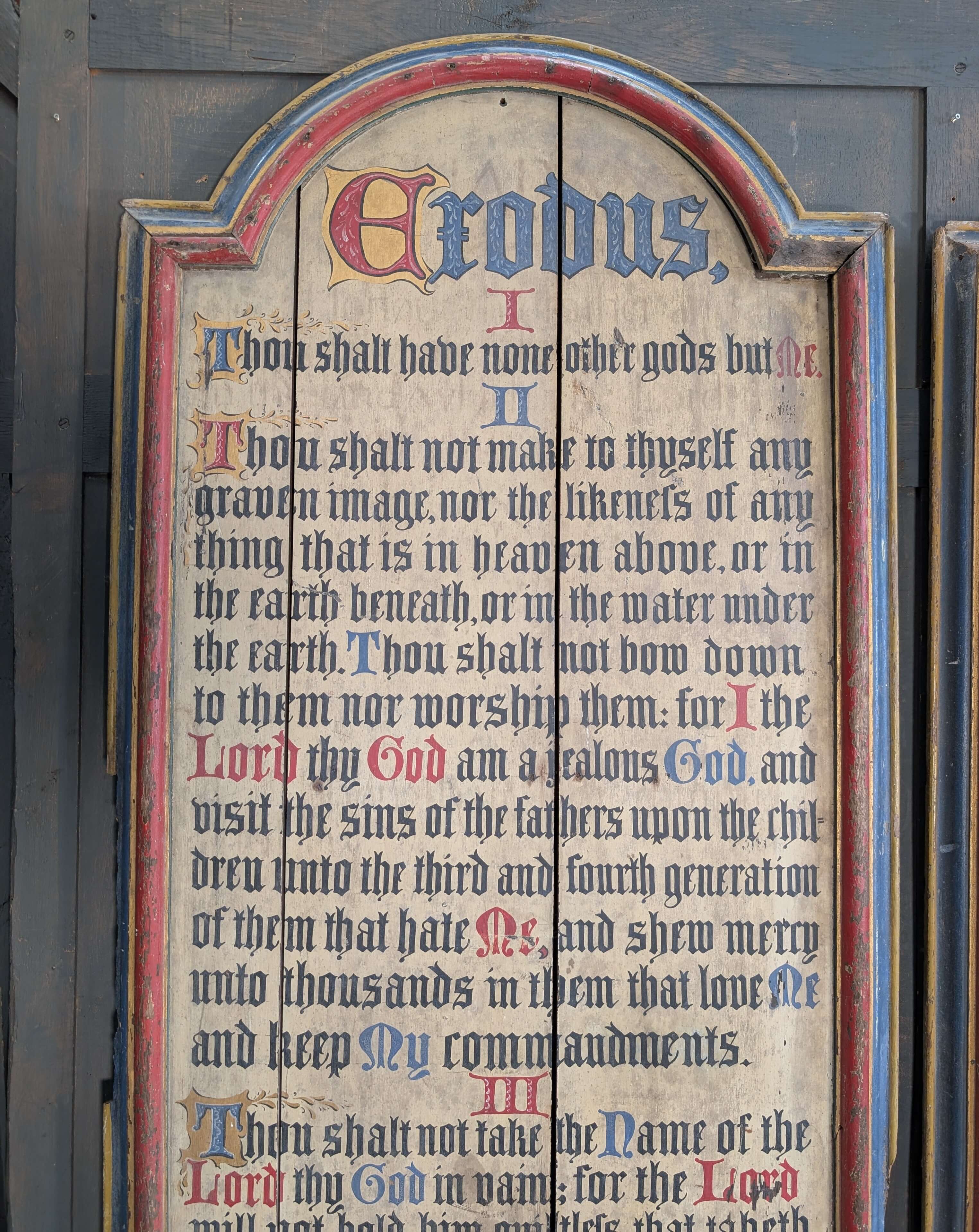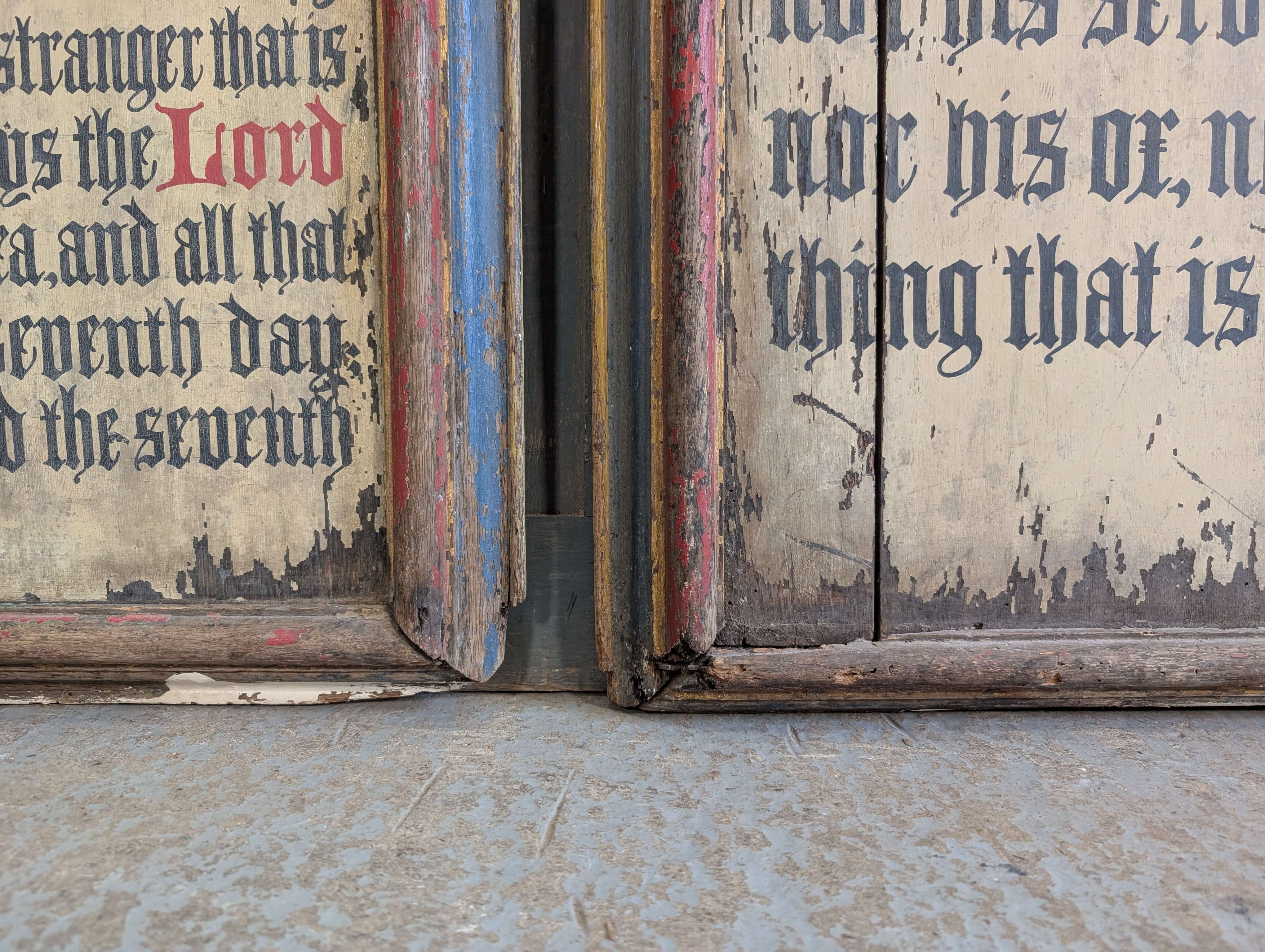 Our product shown on this page Two Large Antique 1850’s Painted Oak Commandment Boards is currently available for hire.