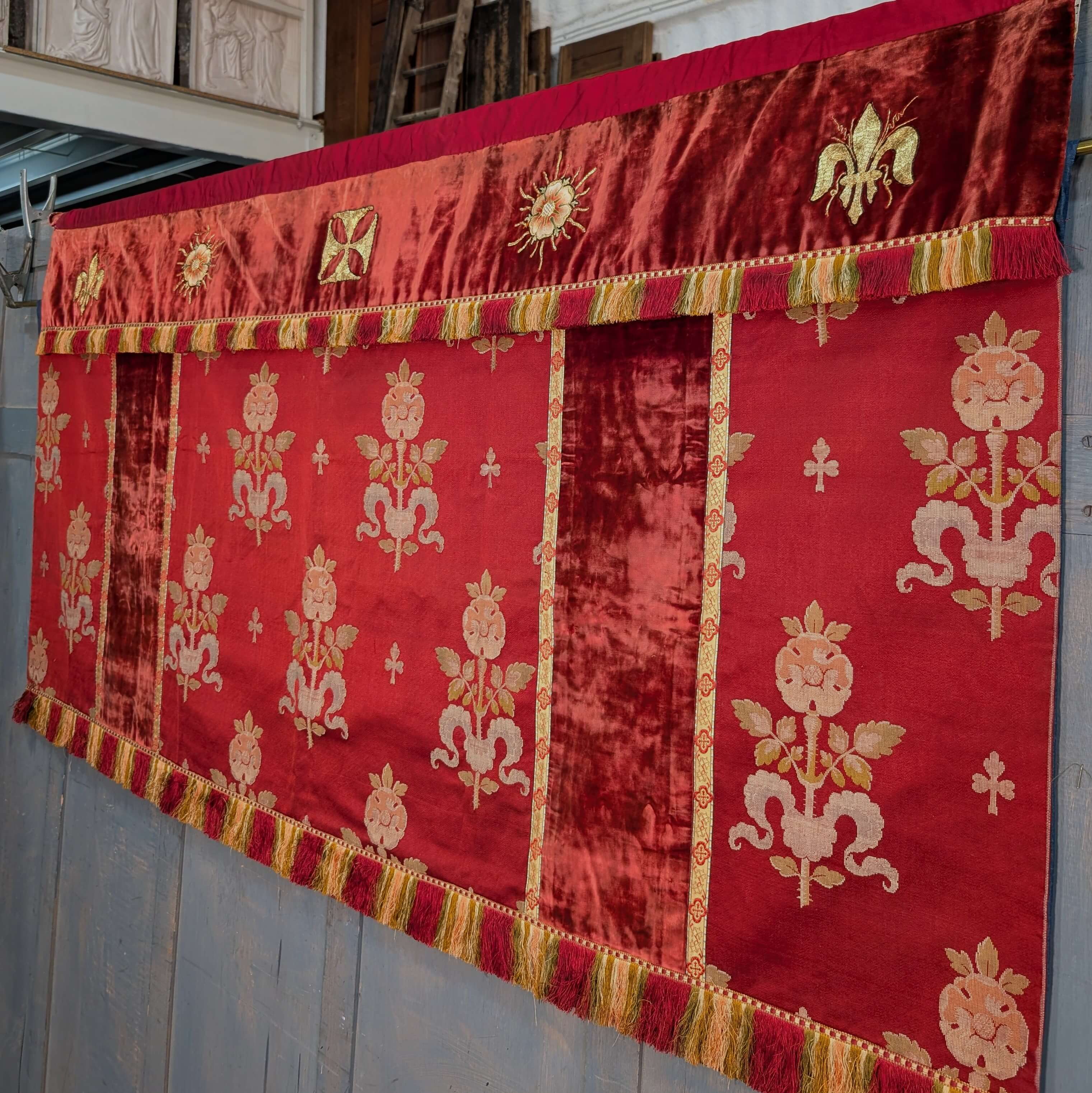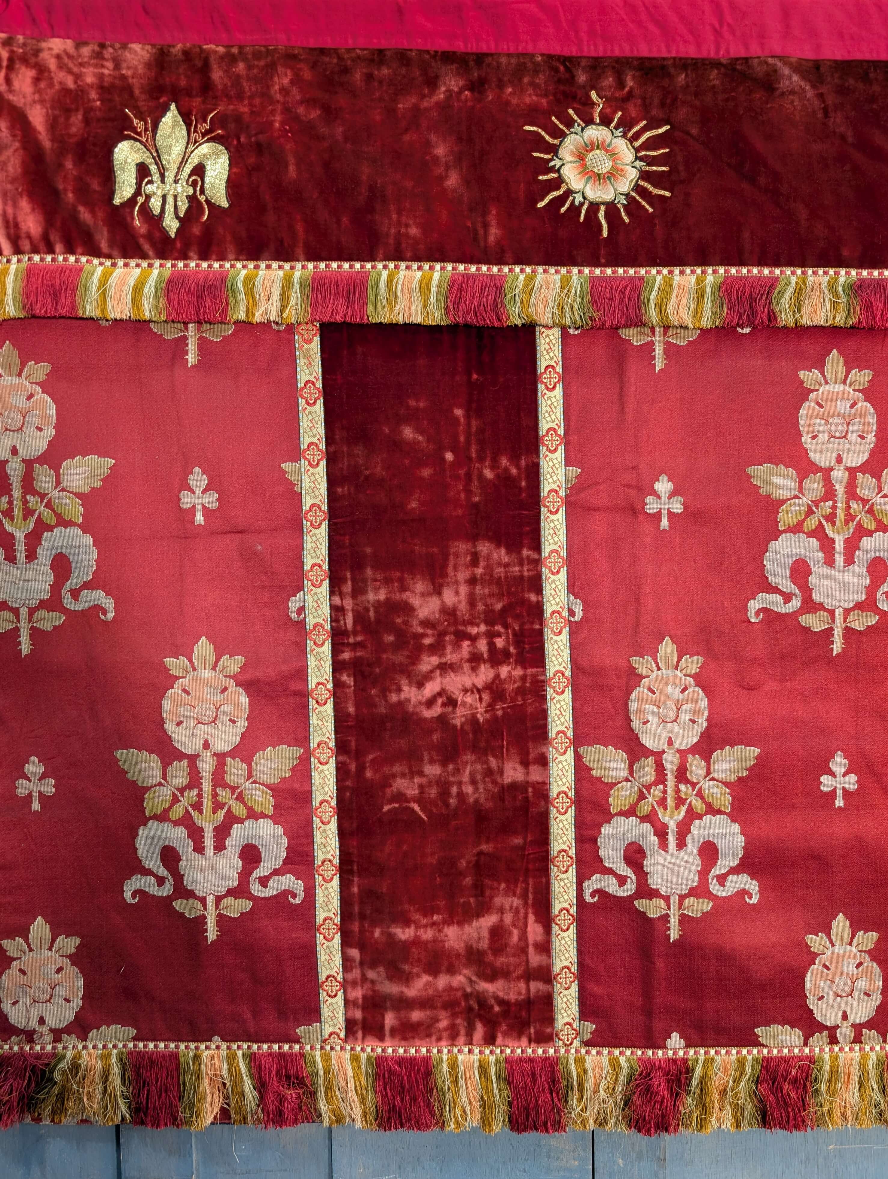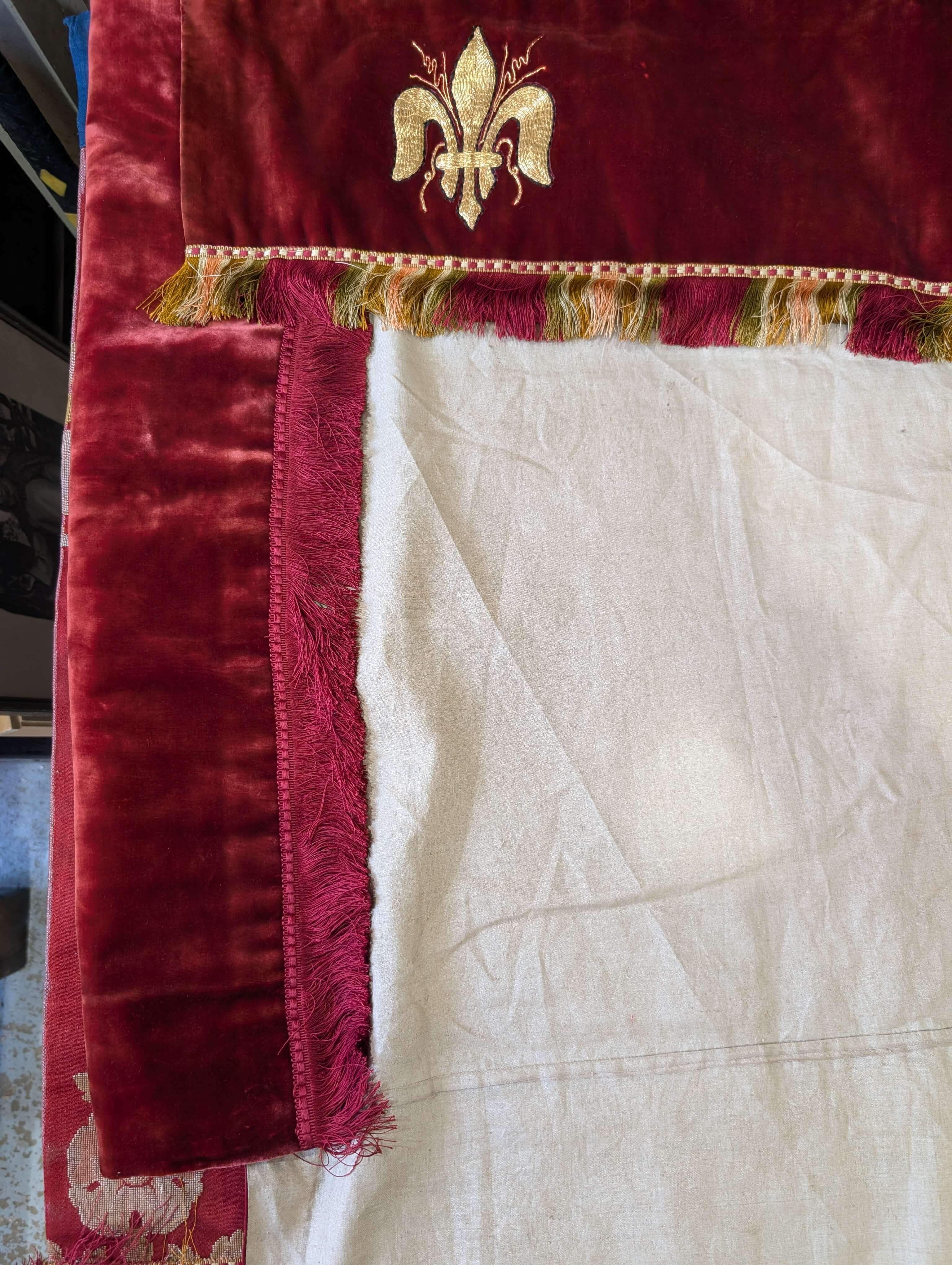 Our product shown on this page Unusual High Quality Two Part 1920’s Vintage Red Velvet Altar Frontal is currently available for hire.