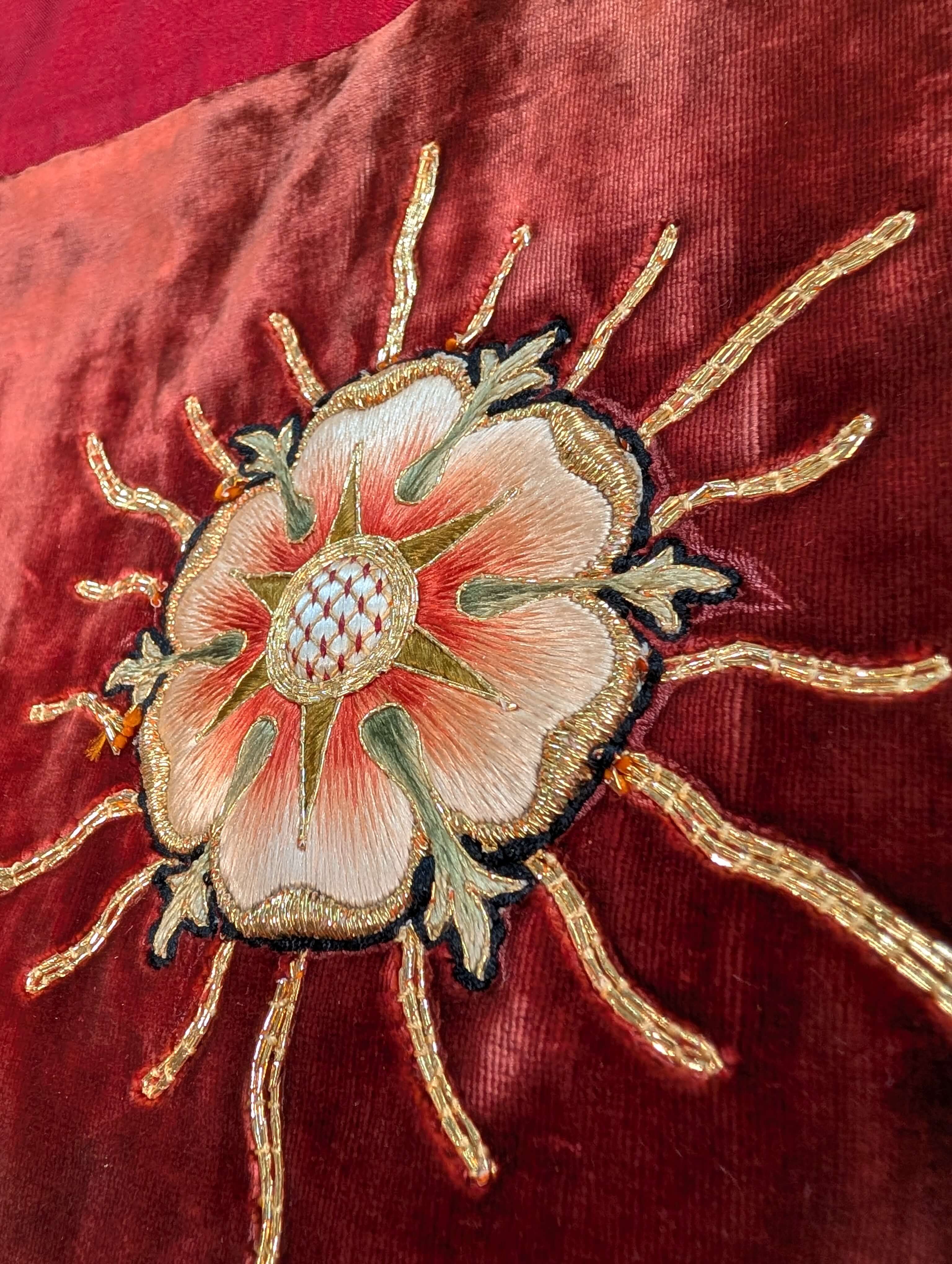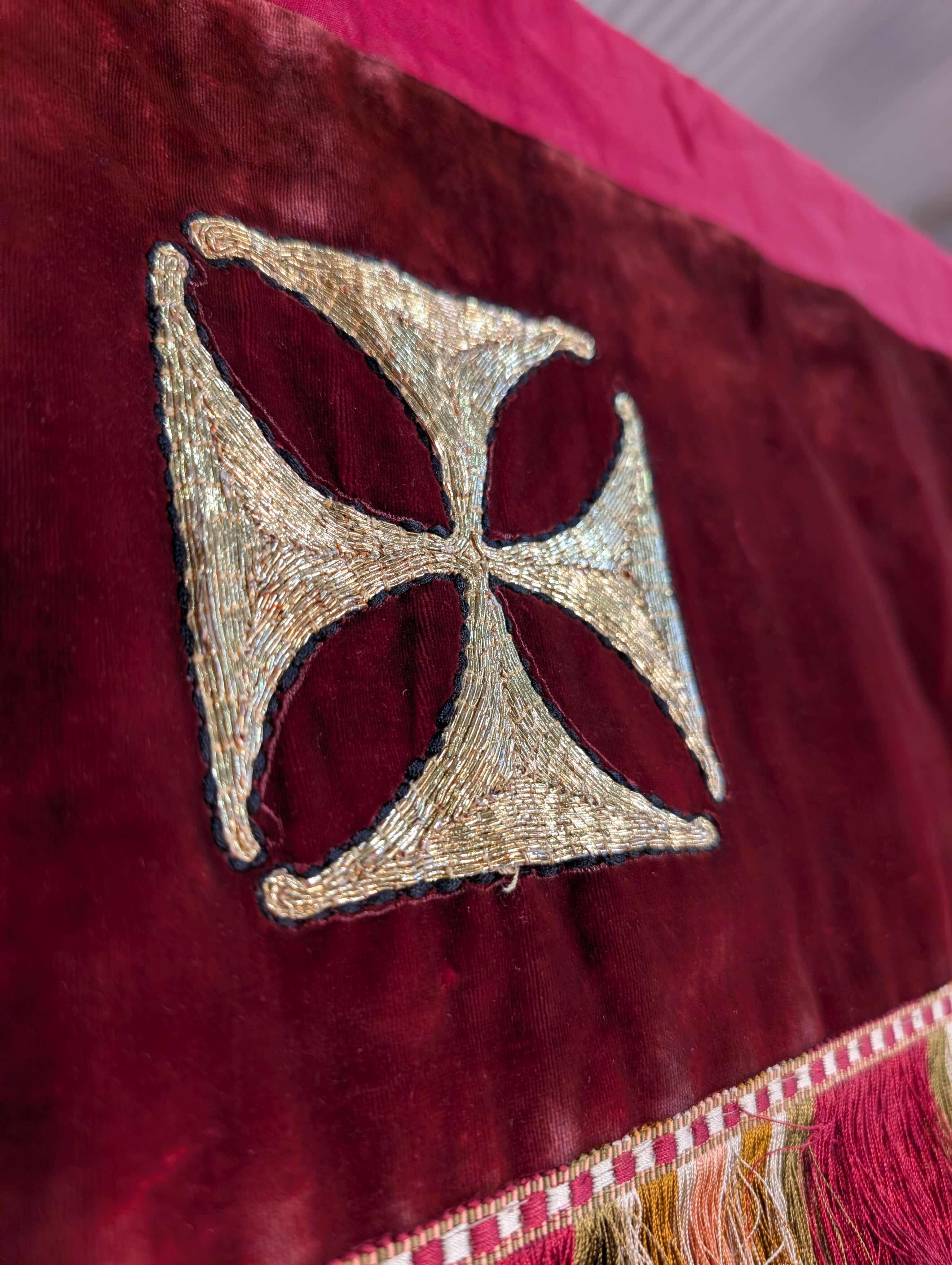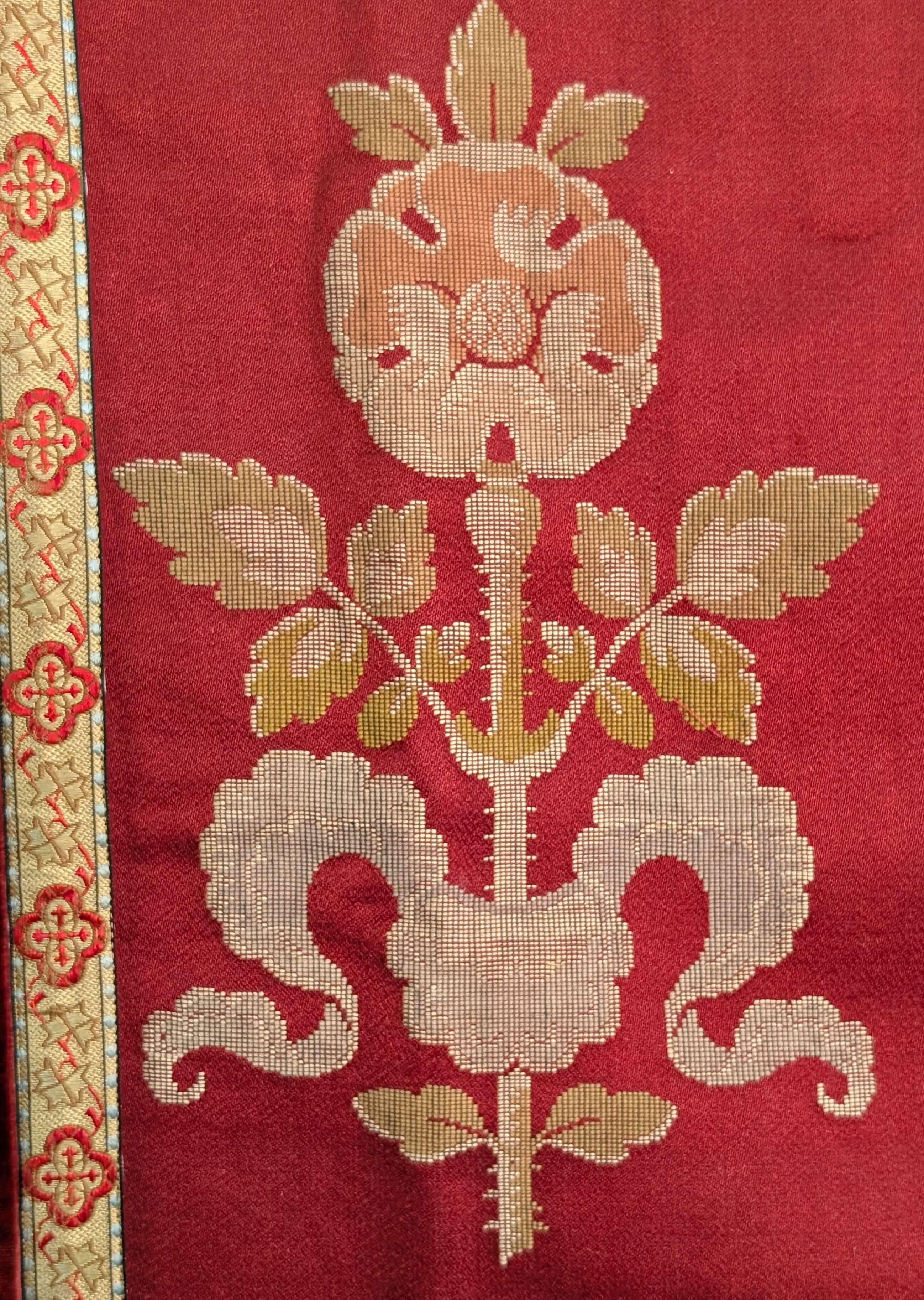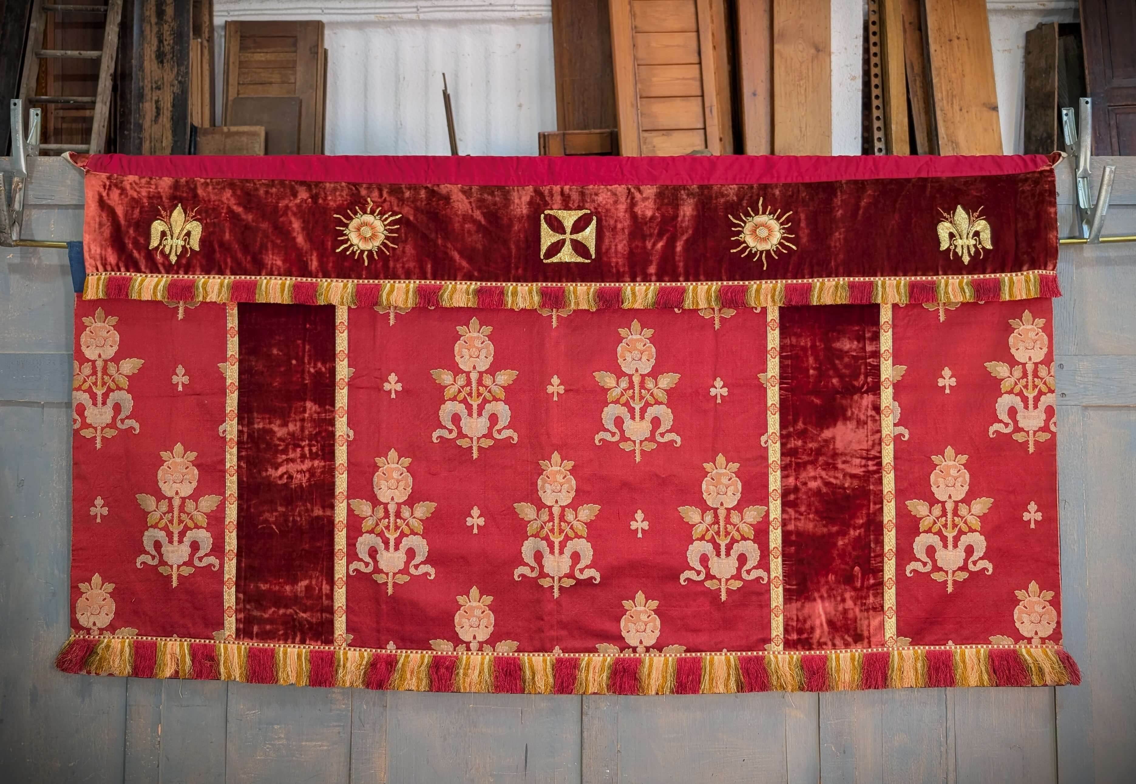Our product shown on this page Unusual High Quality Two Part 1920’s Vintage Red Velvet Altar Frontal is currently available for hire.