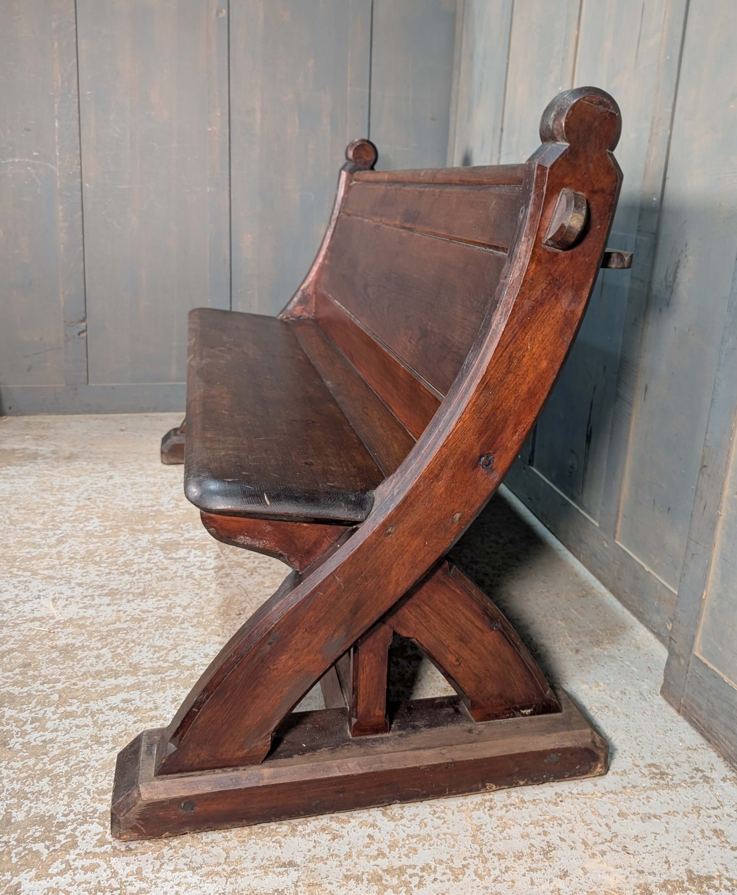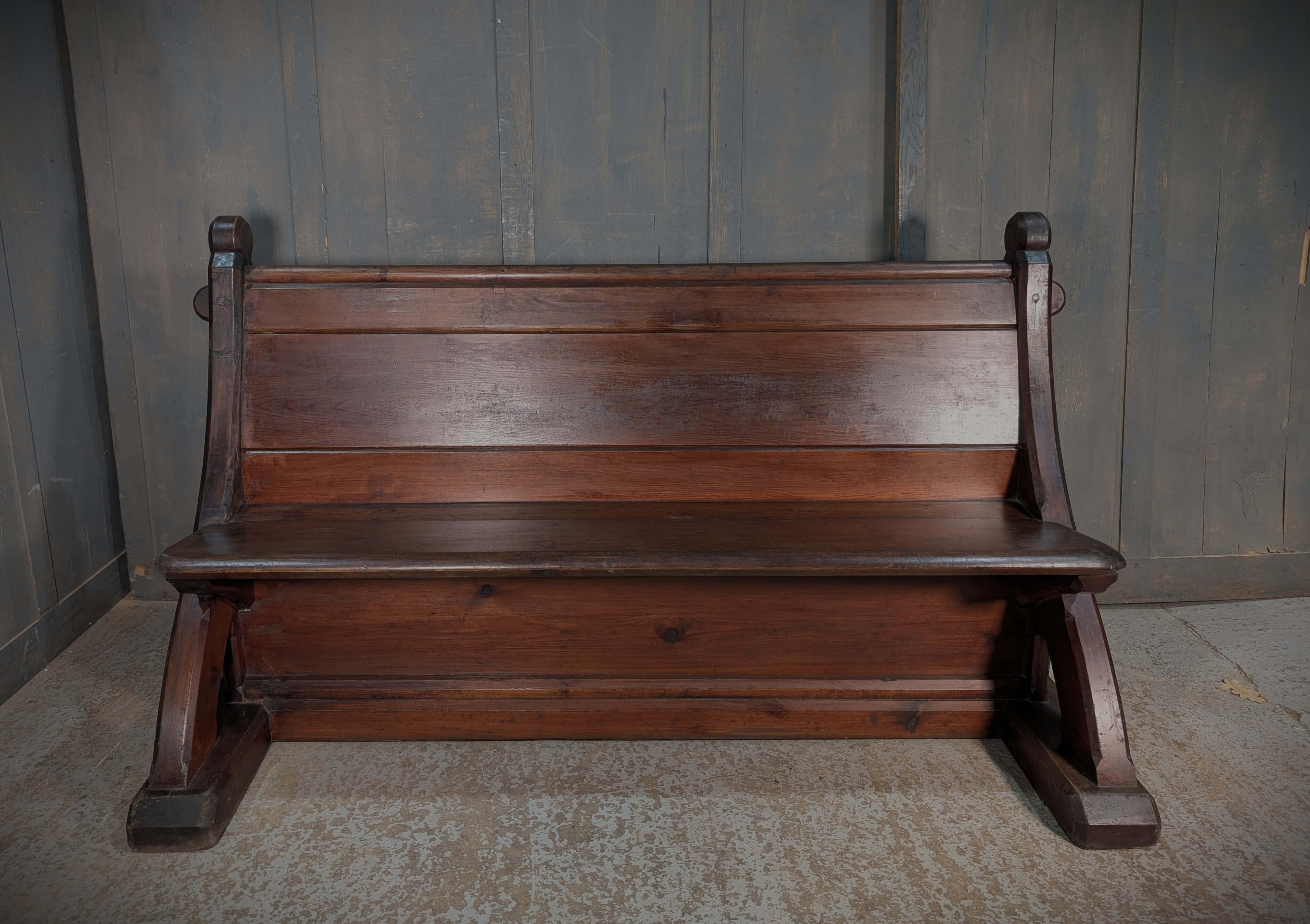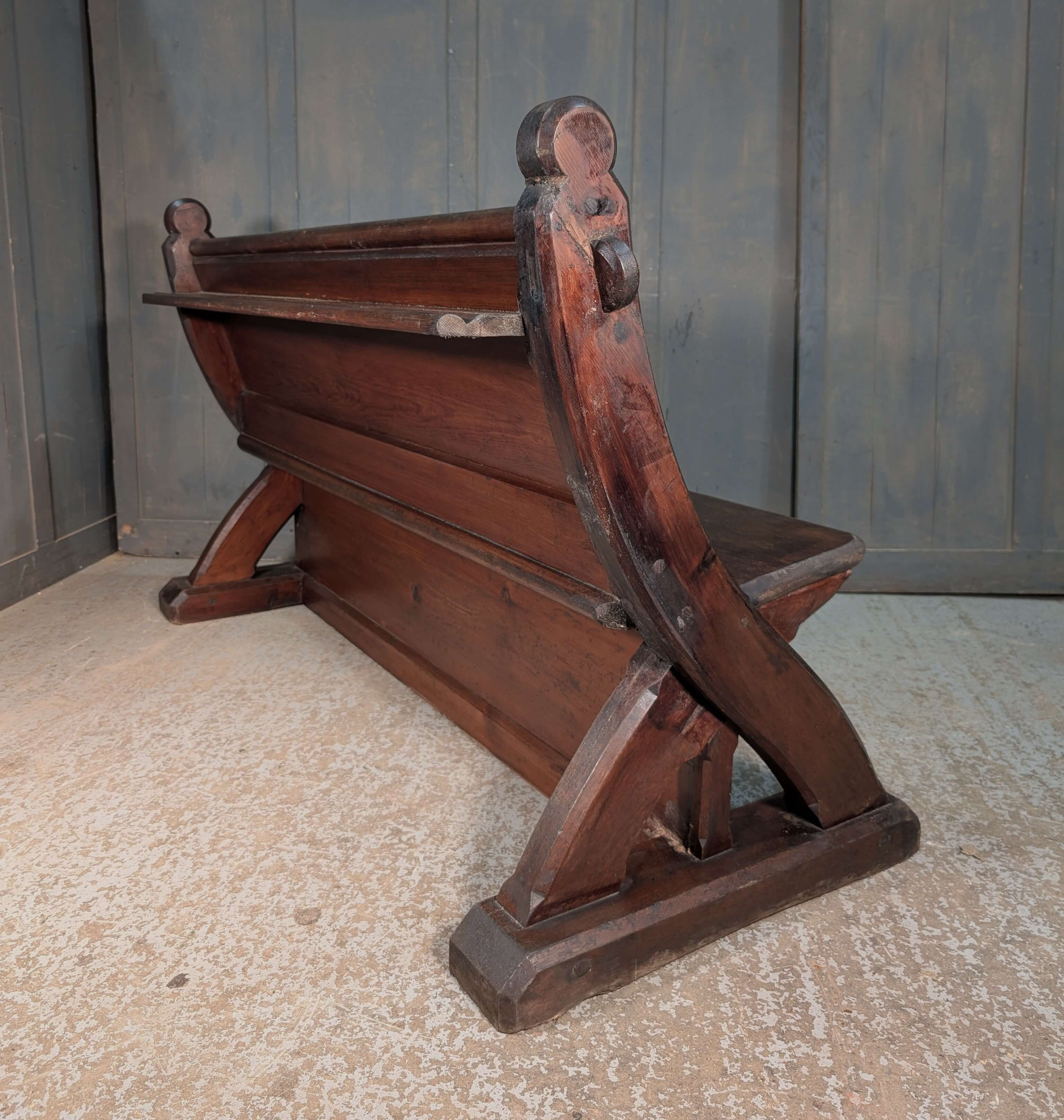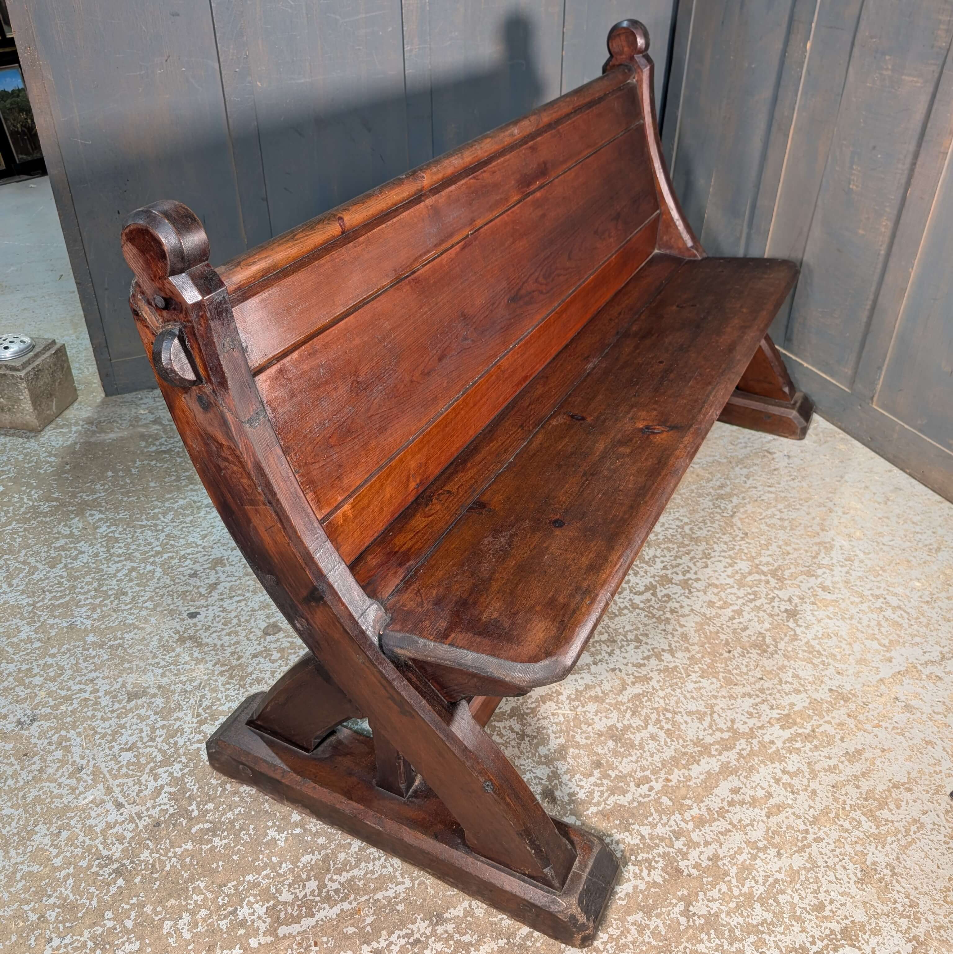 Our product shown on this page Unusual & Stylish Swept Back 1860’s ‘Y’ Ended Pine Church Pew Bench is currently available for hire.