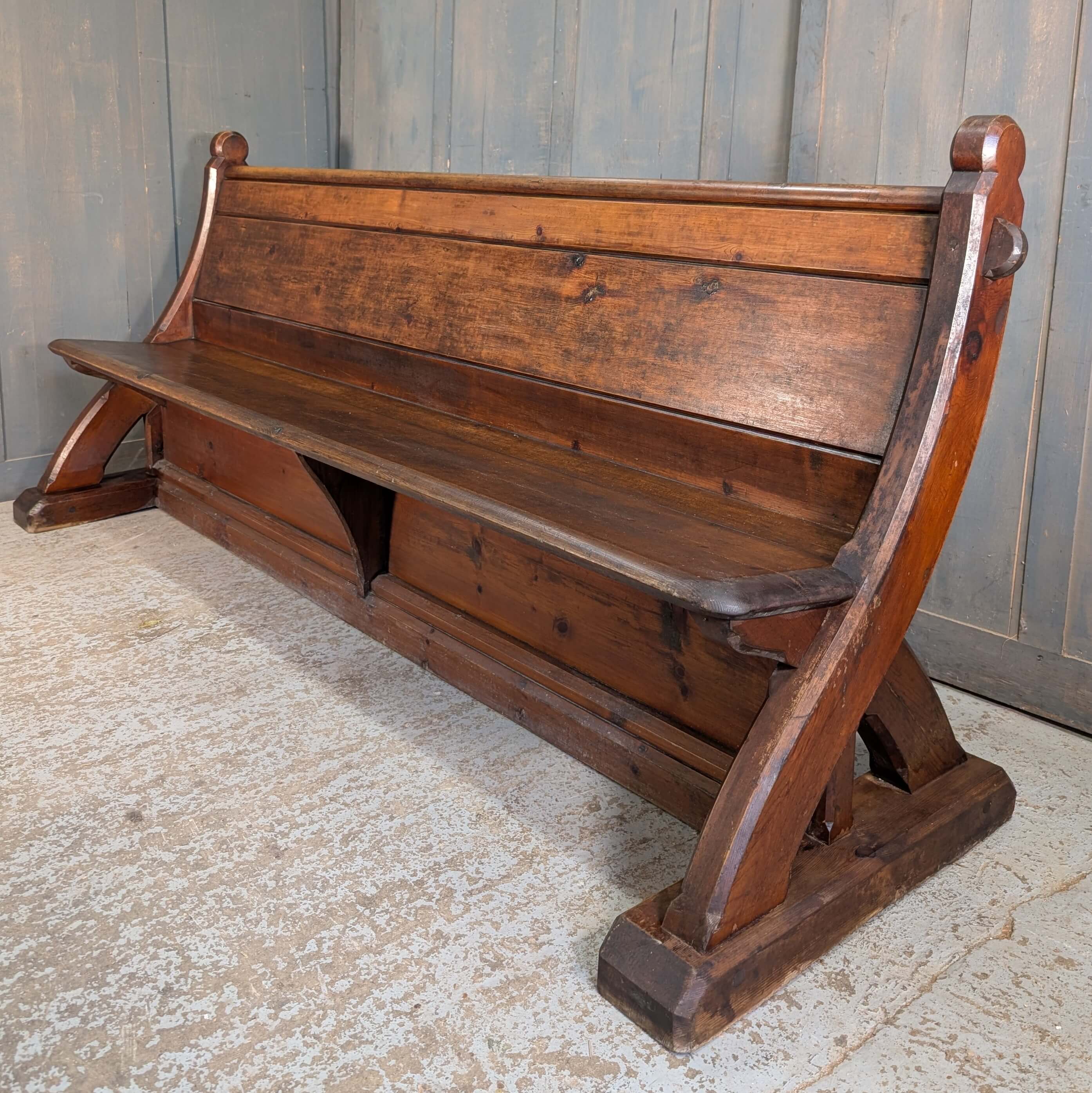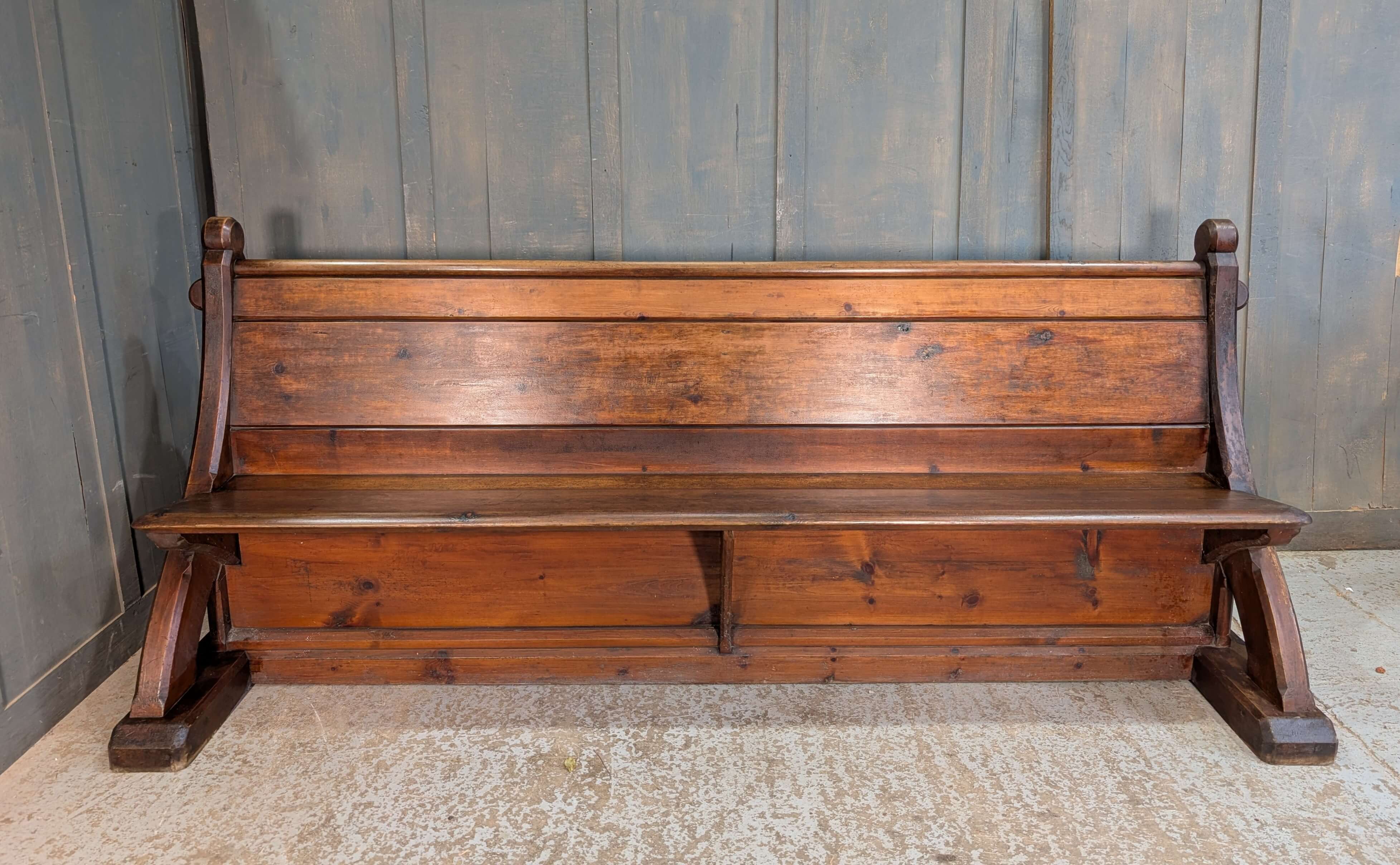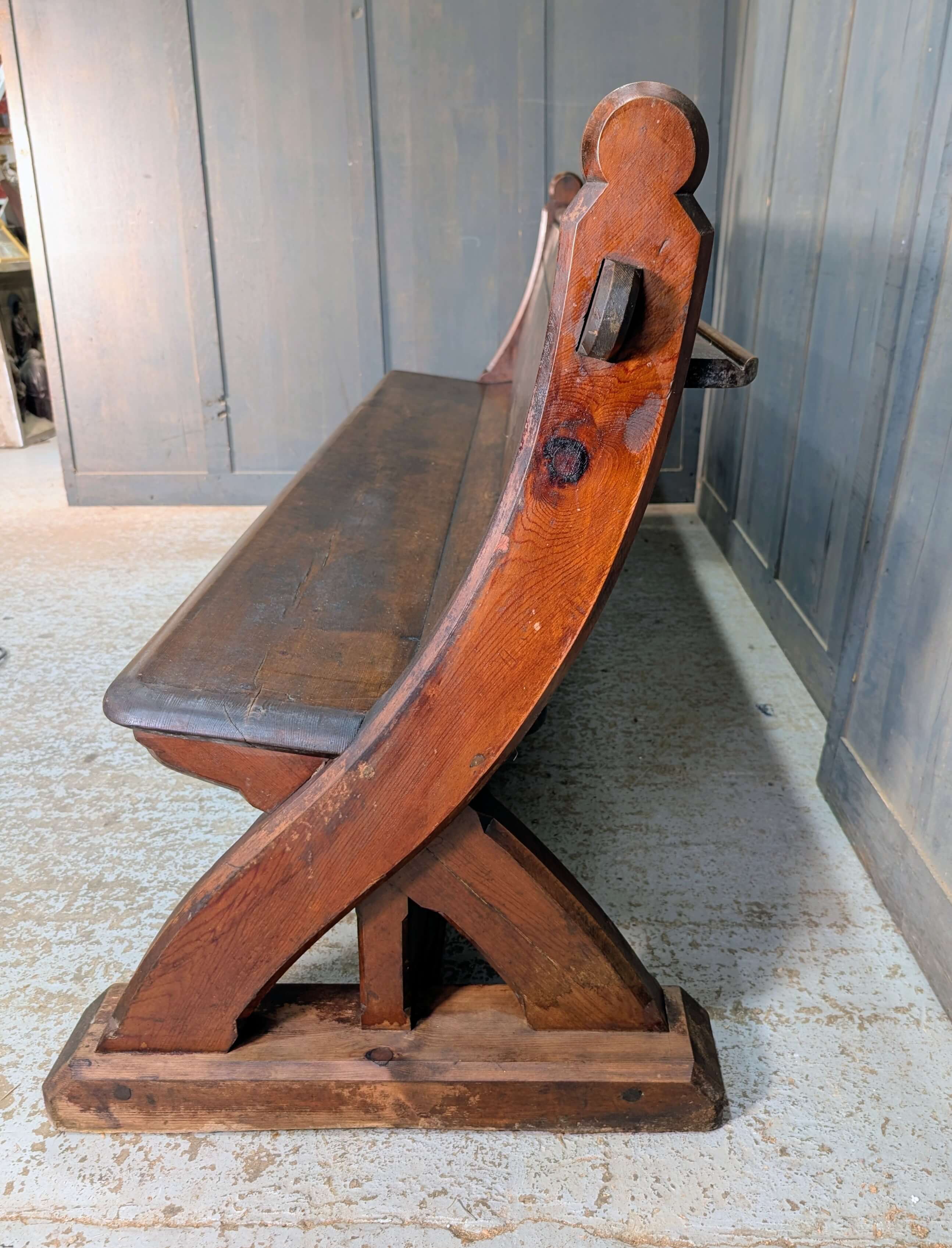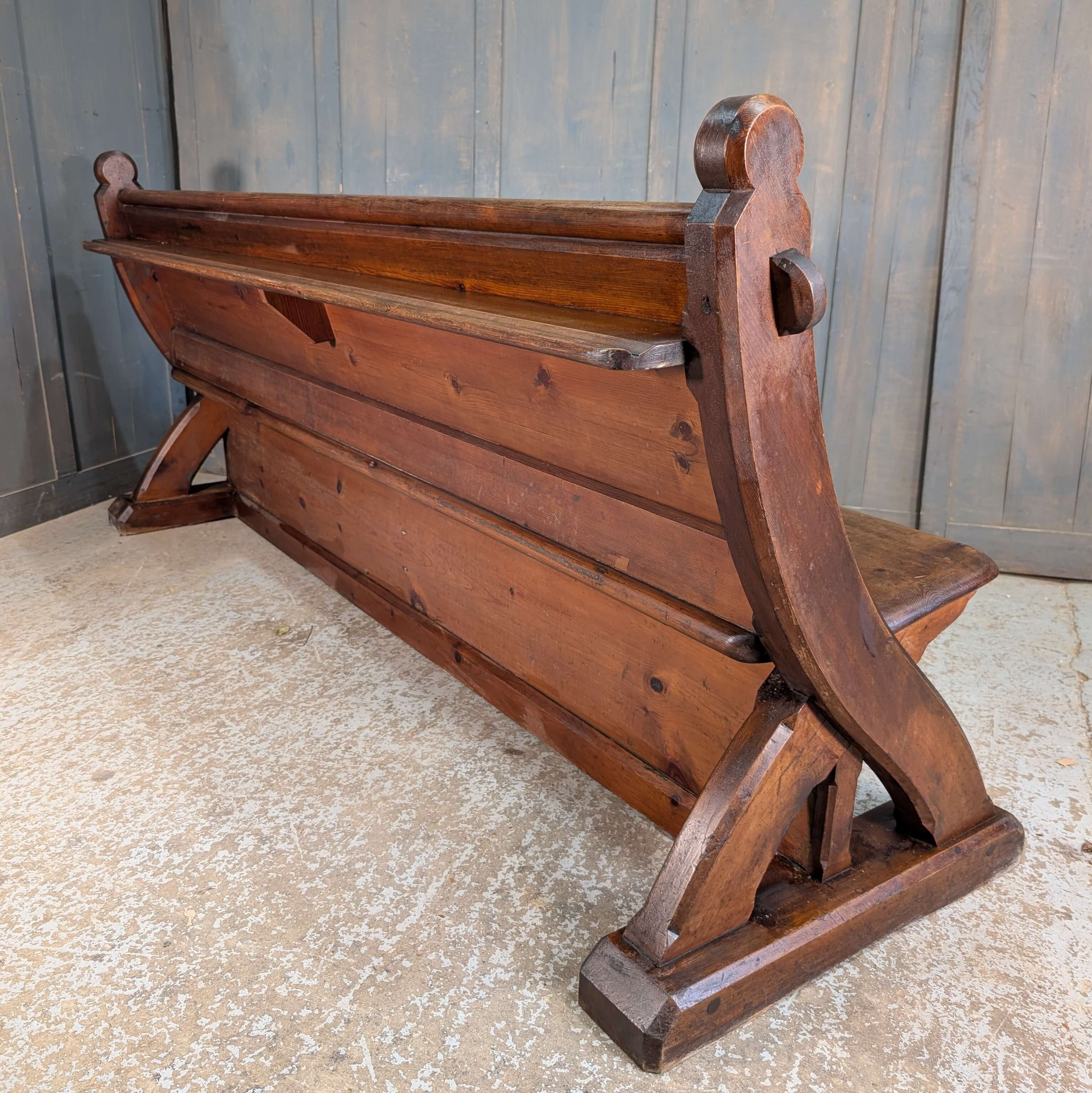 Our product shown on this page Unusual & Stylish Swept Back 1860’s ‘Y’ Ended Pine Church Pews Benches is currently available for hire.