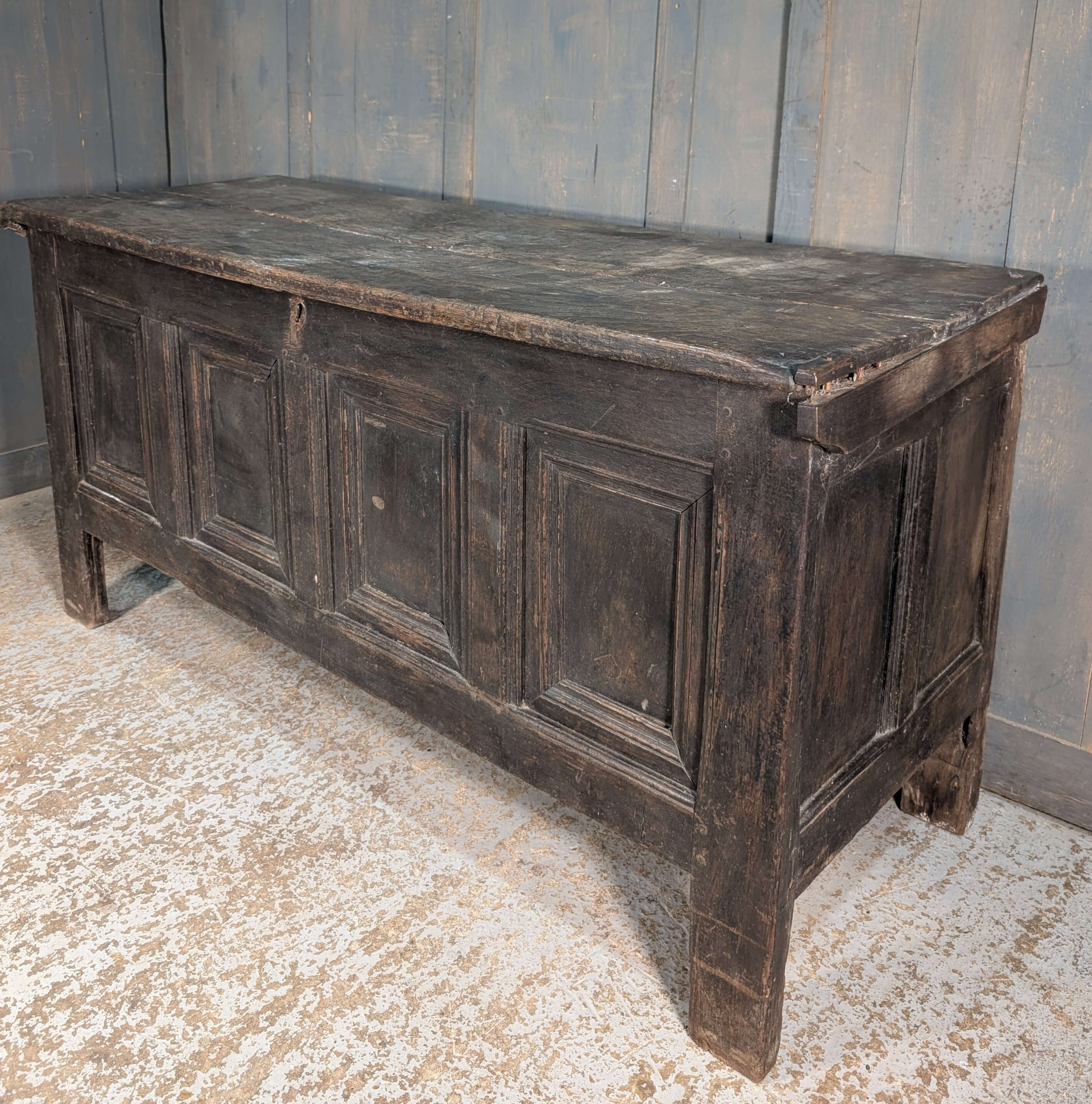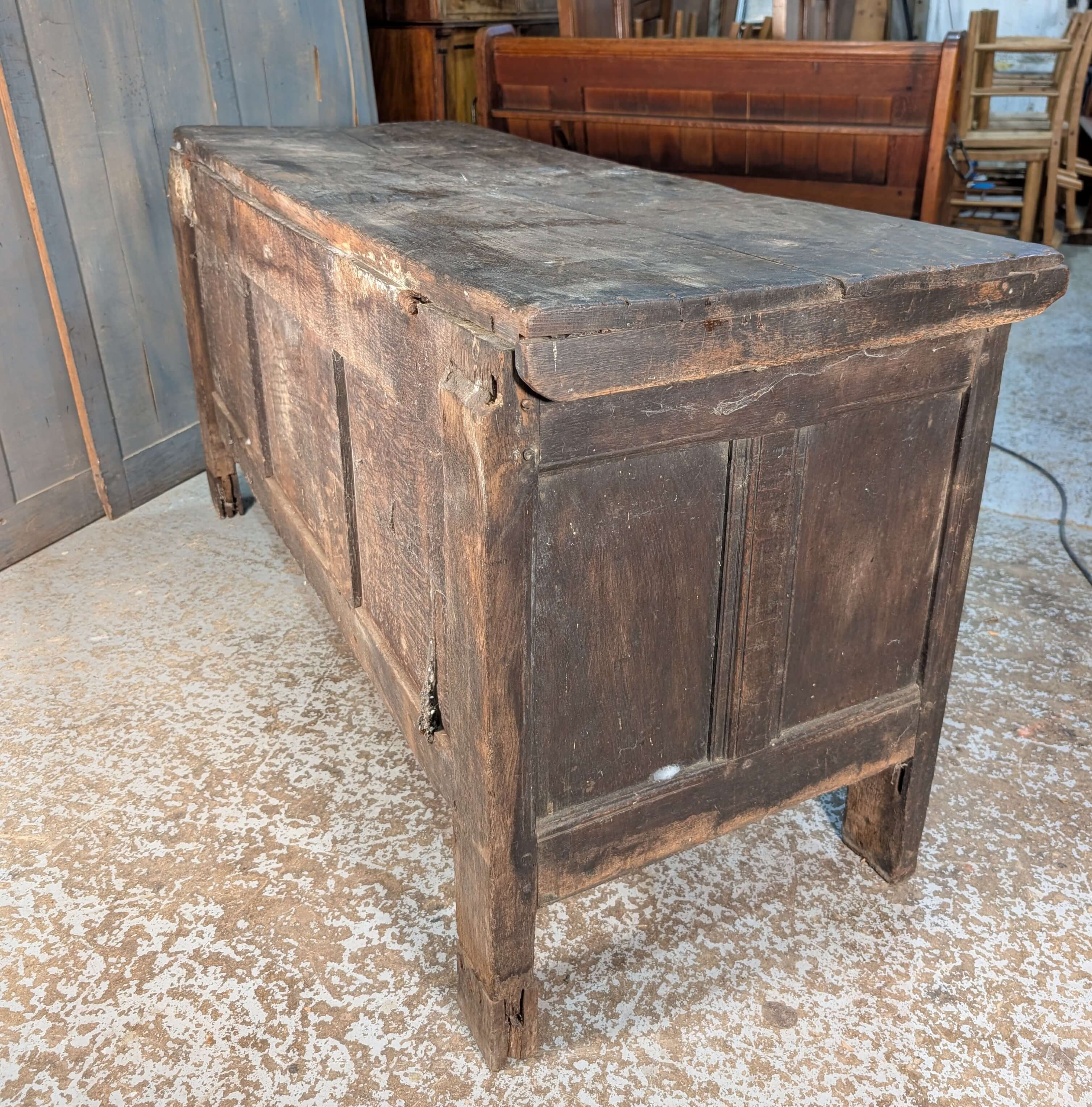 Our product shown on this page Very Aged 18th Century Panelled Oak Coffer is currently available for hire.