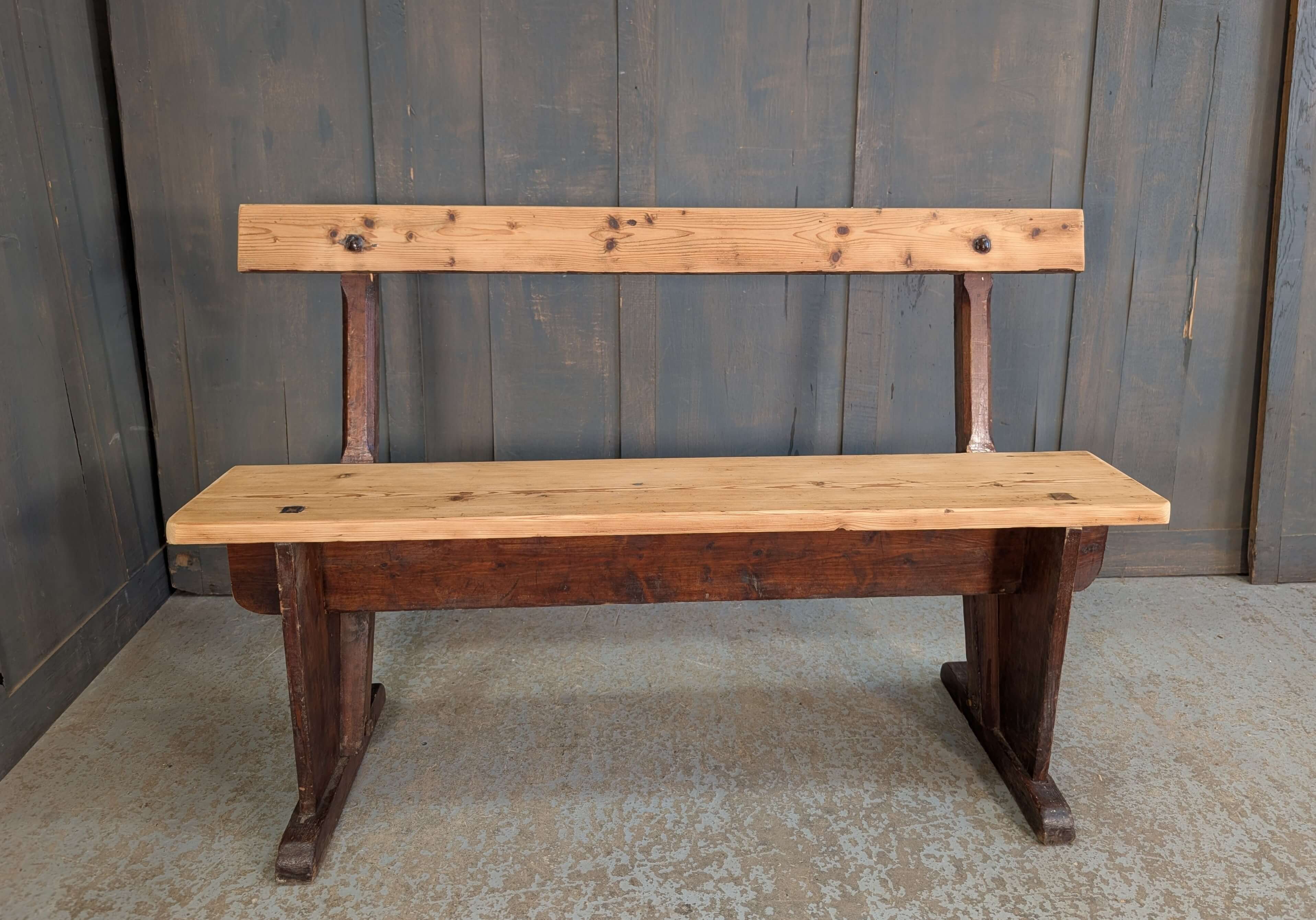 Very Simple 1910’s Vintage Pine Bar Back Church Bench