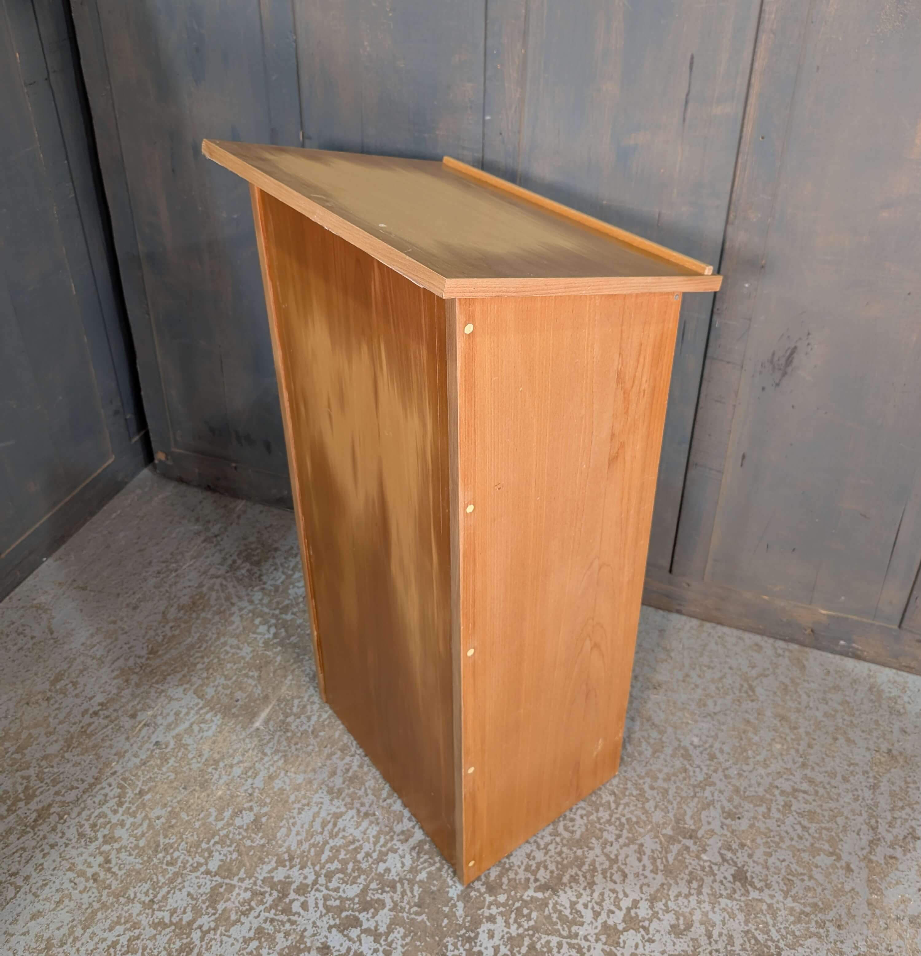 Our product shown on this page Very Simple 1970’s Vintage Box Lectern Reading Desk from Charlwood MC is currently available for hire.
