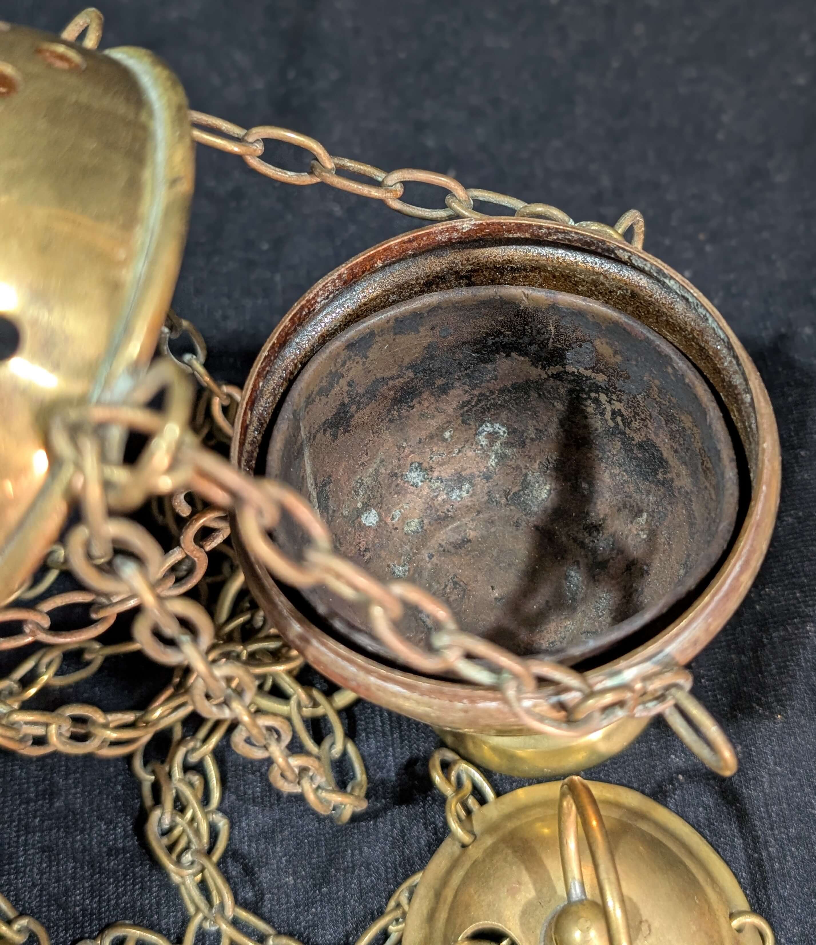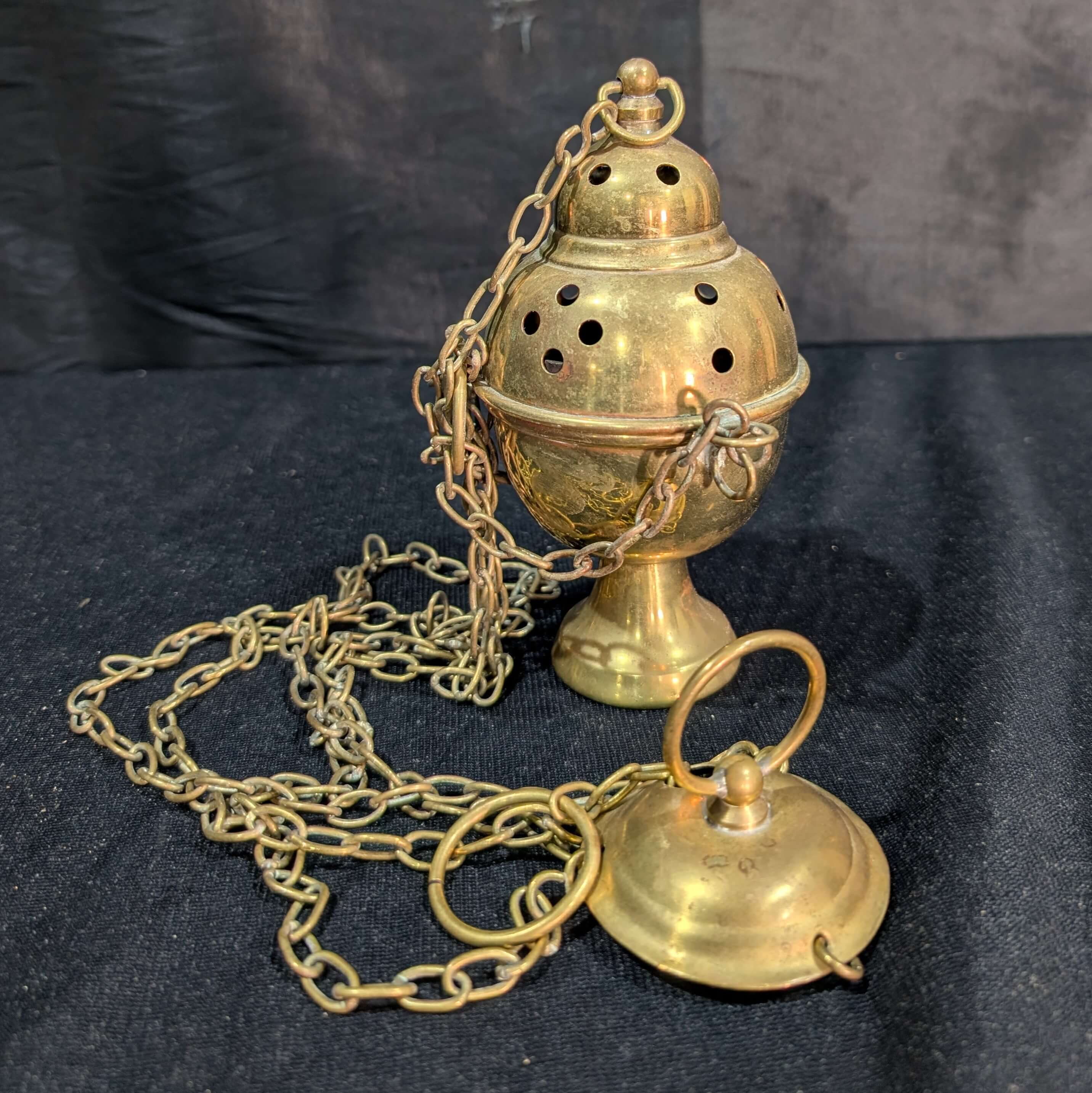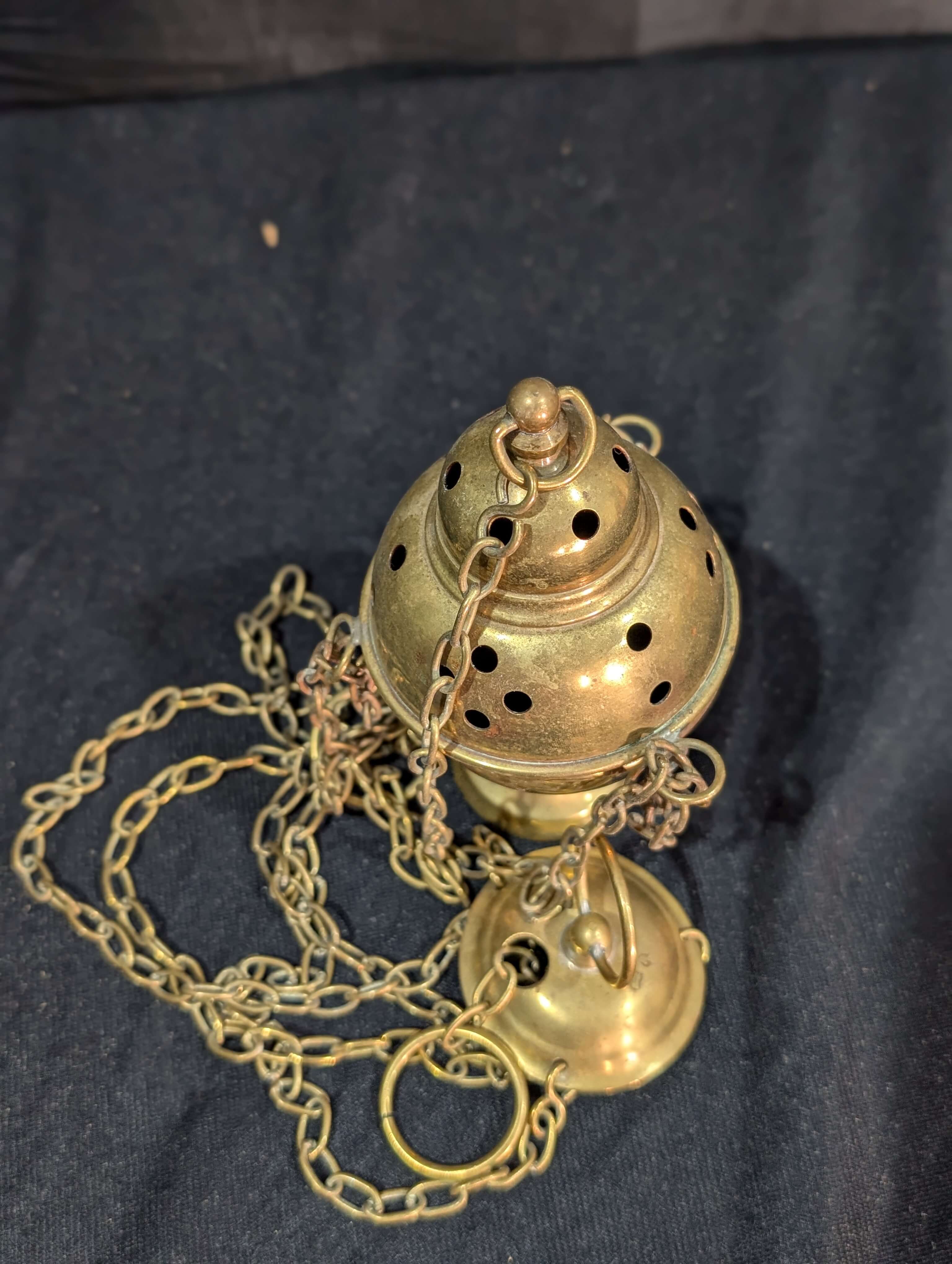Used not that long ago in the church during a failed attempt to bring back smells and bells, hence reasonable state of polish. Too many of the older congregation found the smoke too much.