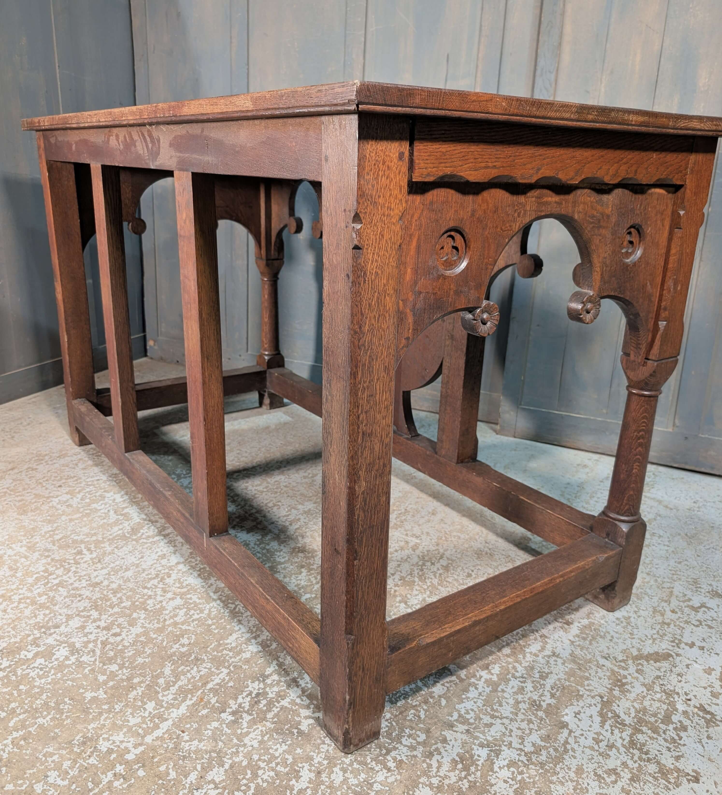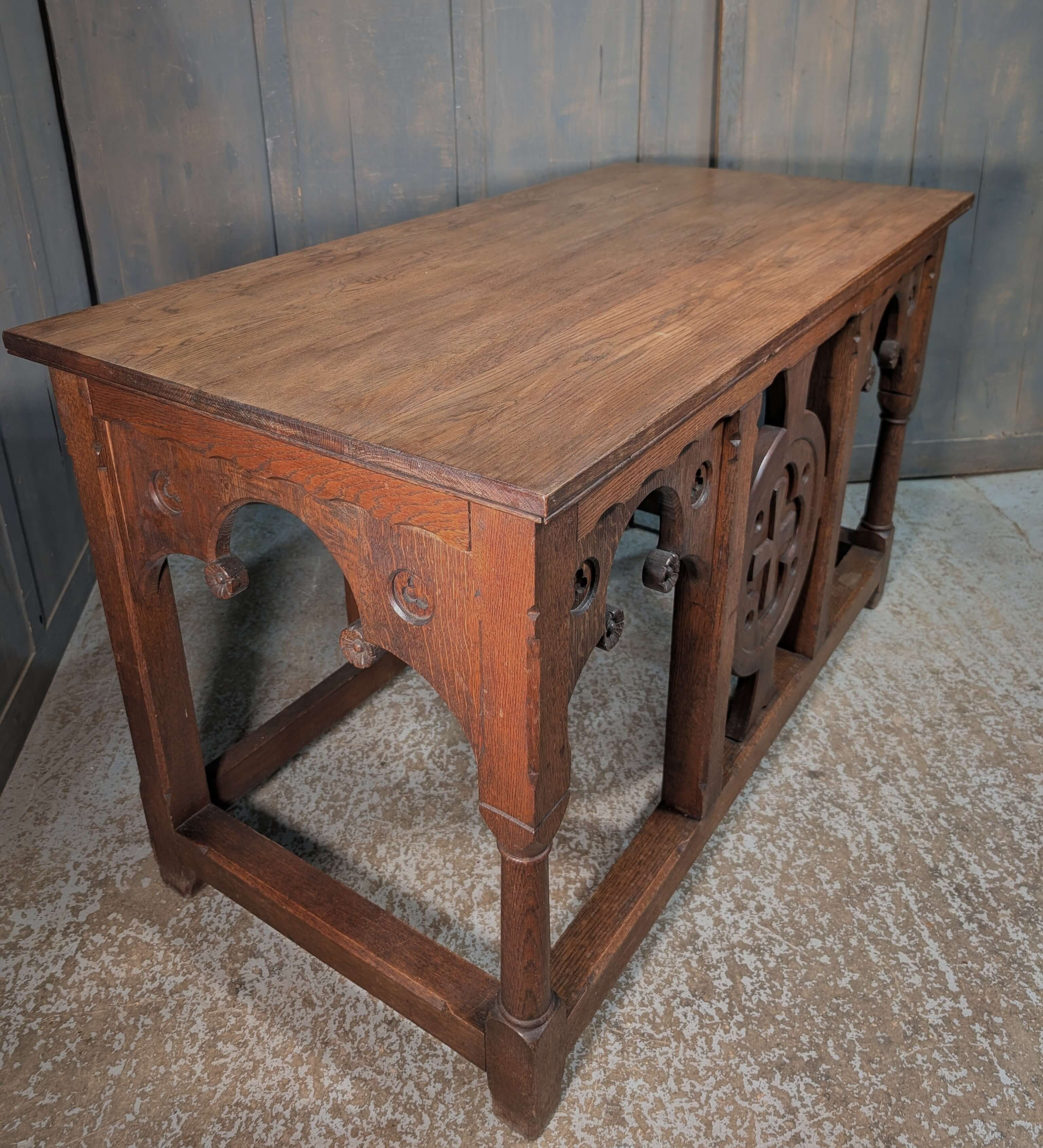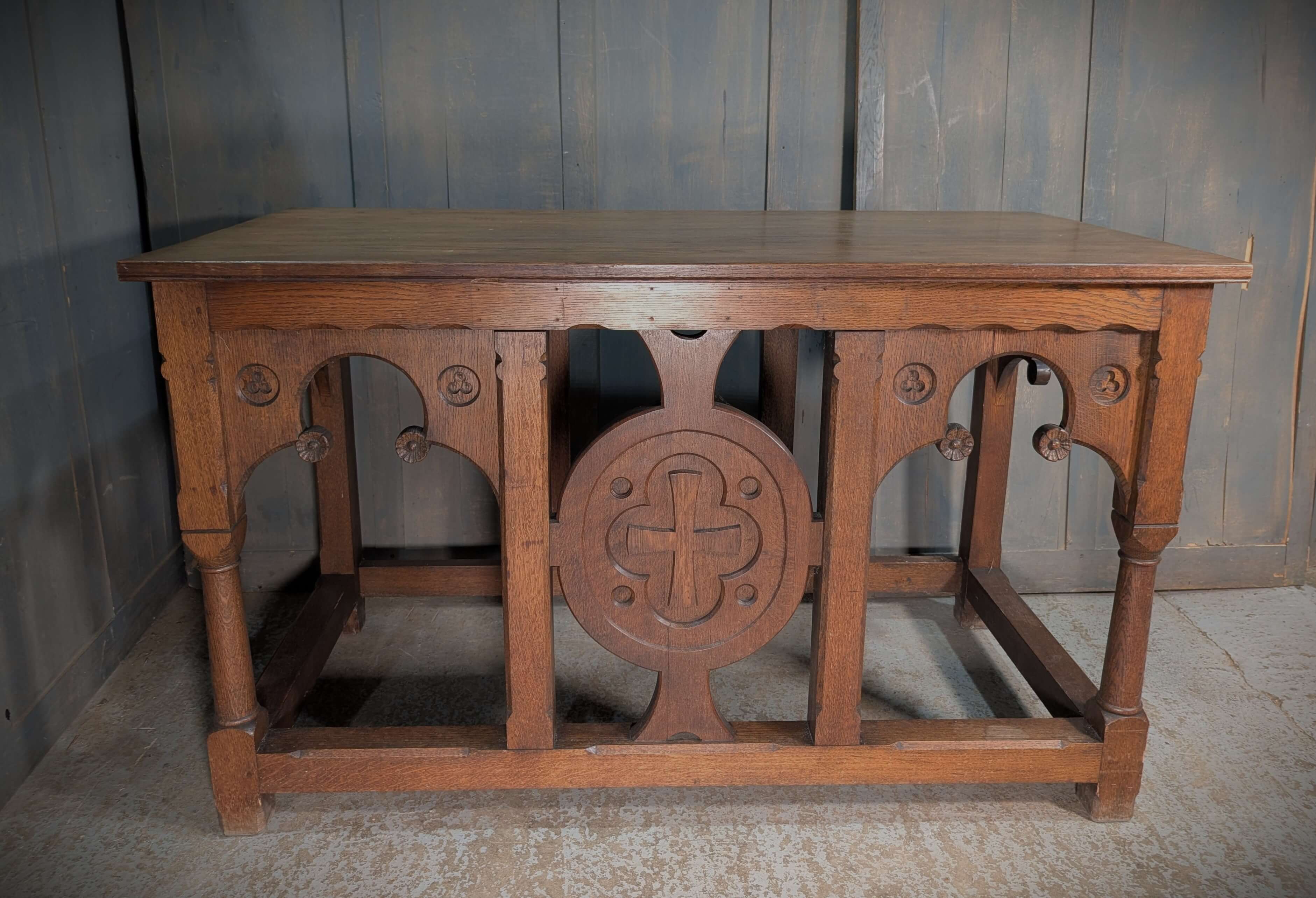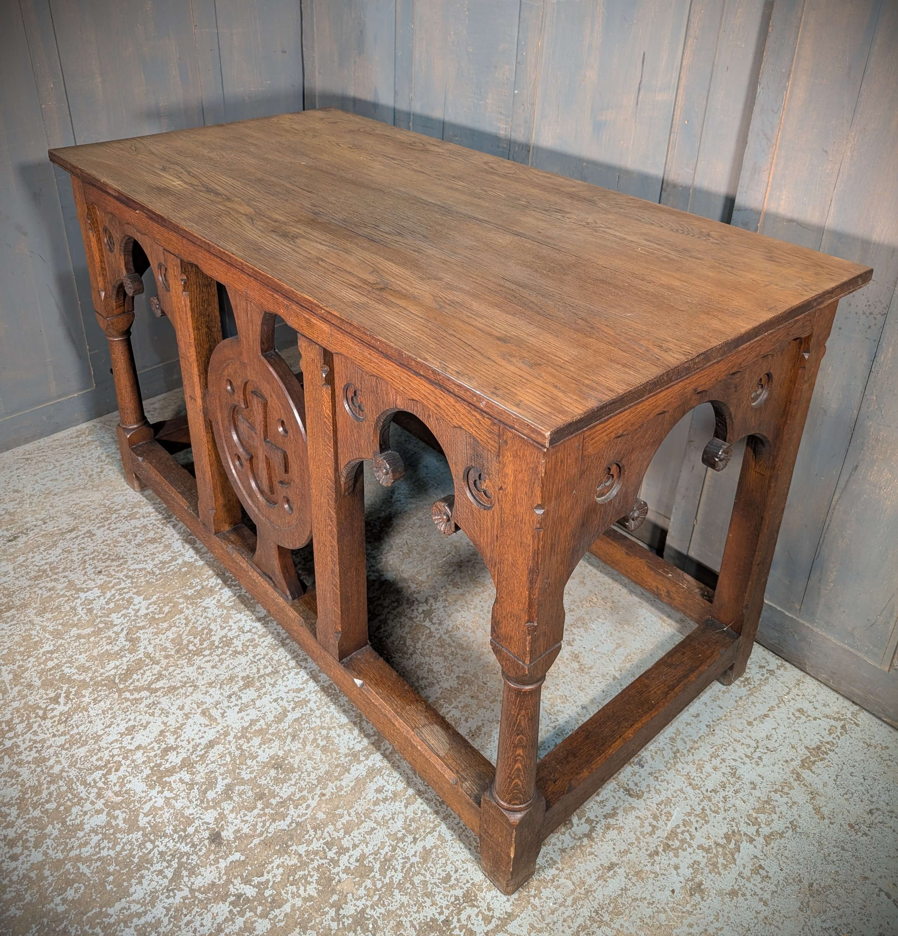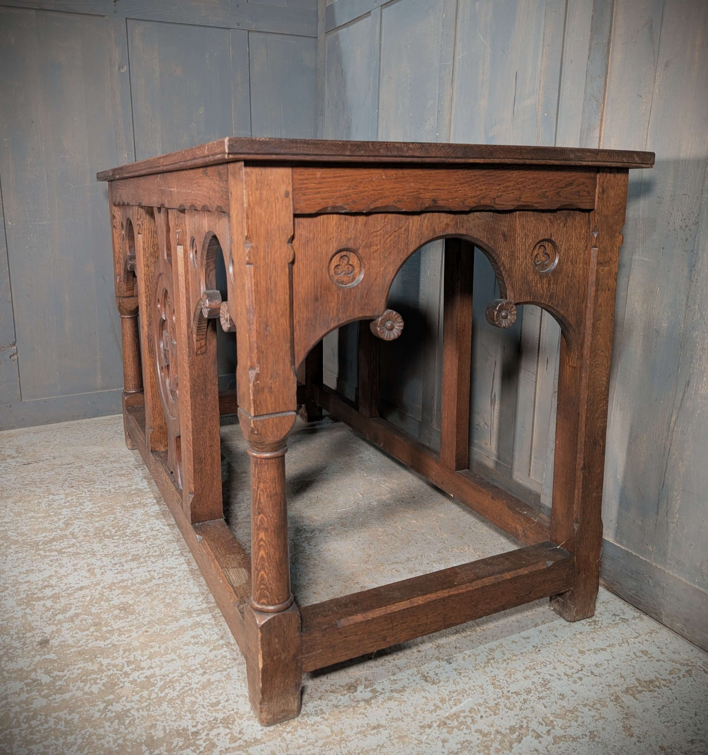 Our product shown on this page Well Made Heavy Vintage Gothic Oak Church Altar is currently available for hire.